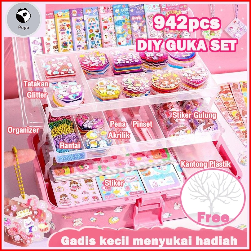 Hadiah Gratis 942pcs Diy Guka Set Diy Gantungan Kunci Set Gooka Mainan Anak Perempuan Hadiah Ulang Tahun Anak Kartu Stik