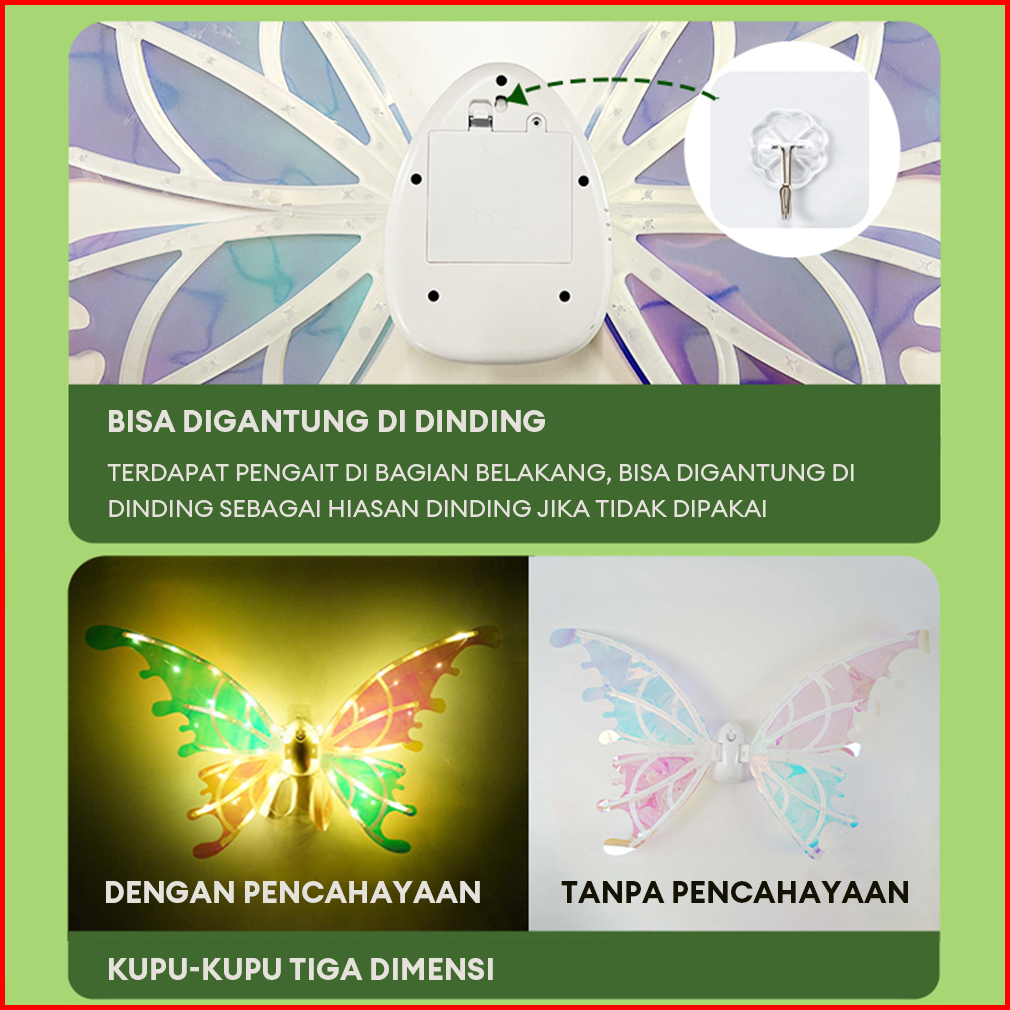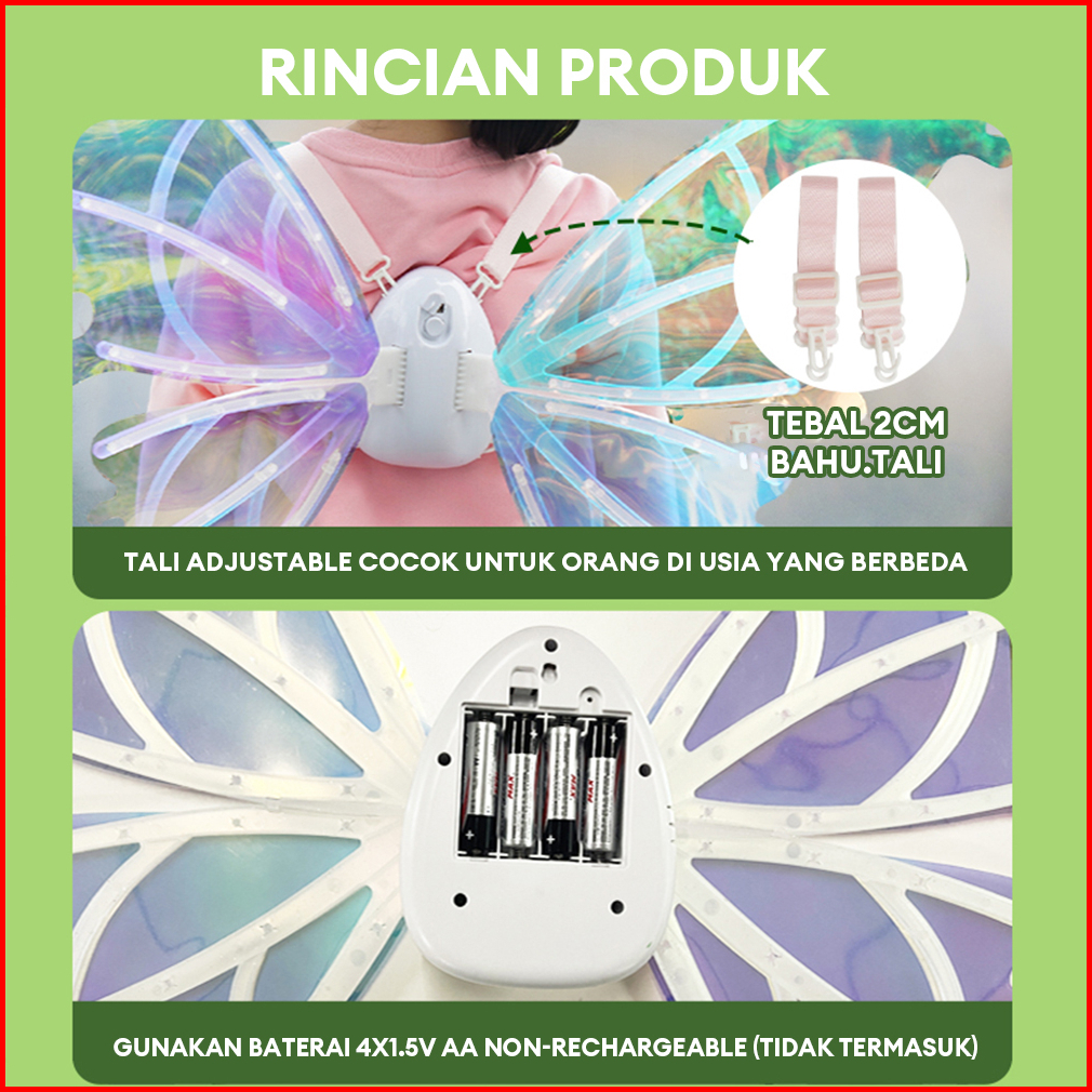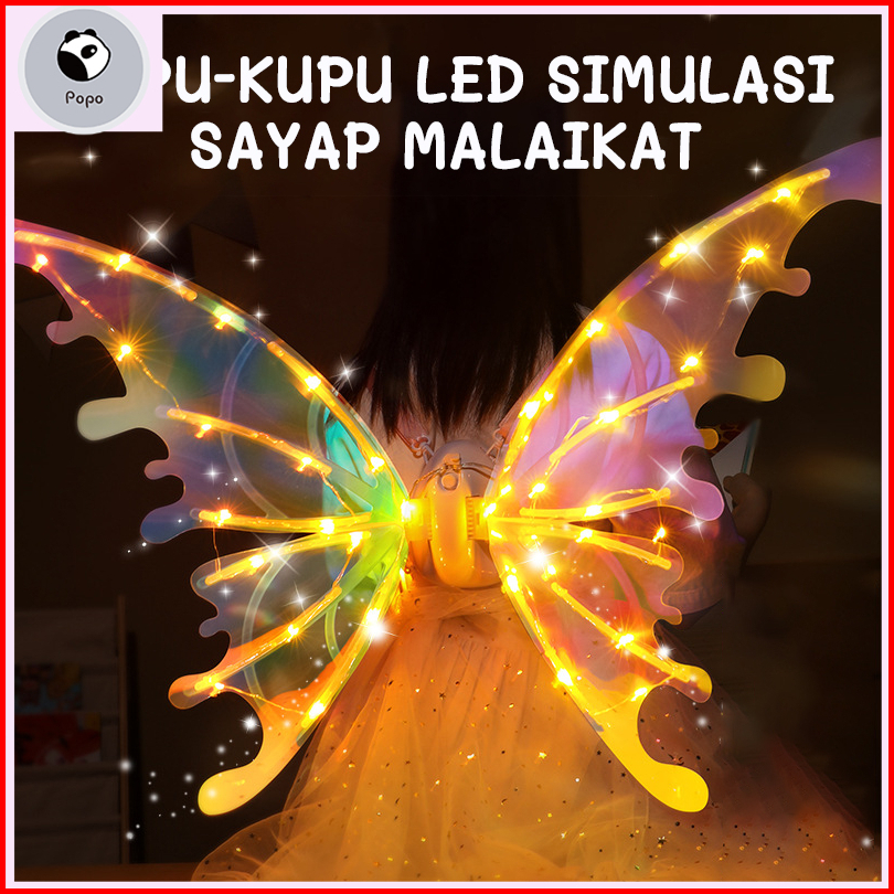 Popo Kostum Sayap Peri Kupu Kupu Anak Halloween Sayap Bulu Elf Bercahaya Mainan Bercahaya Sayap Malaikat Kecil Dengan Mu