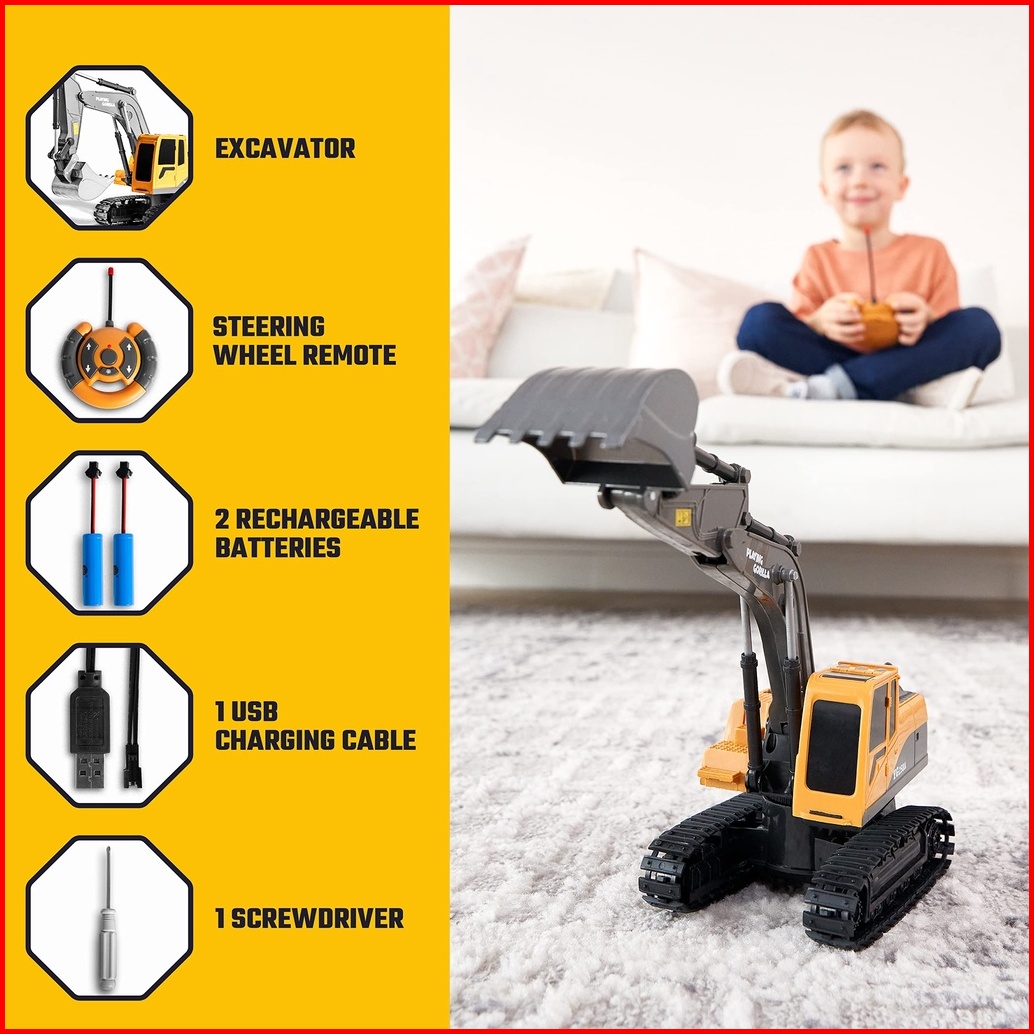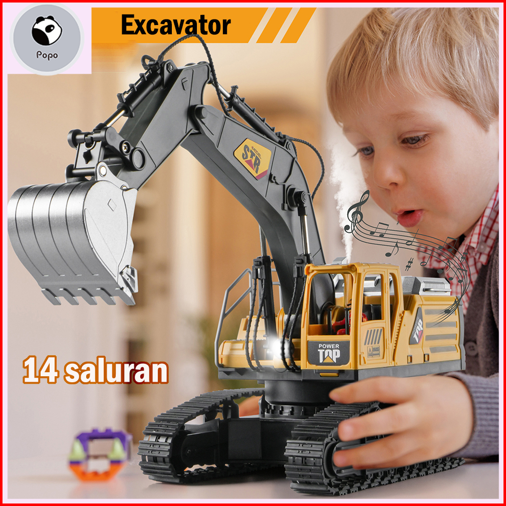 Popo Excavator Remote Control Mainan 14 Saluran Setir Mobil Rc Dump Truk Beko Digger Superior Mesin Berat 2.4ghz Remote