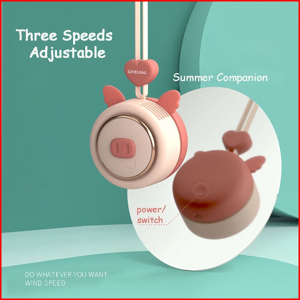 Adida Toys Kipas Angin Mini Kipas Angin Portable Kalung Leafless Tali Cute Animal Portable Fan Rechargeable