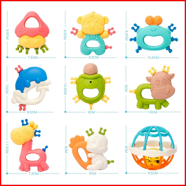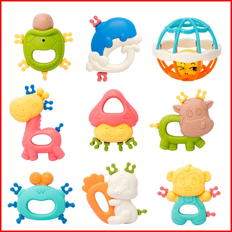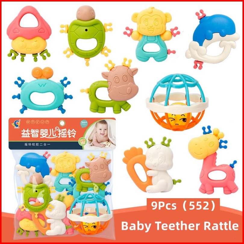 Adida Toys Mainan Bayi 9pcs Set Kerincing Gigitan Edukasi Kids Rattle Theether Silicon Bpa Free