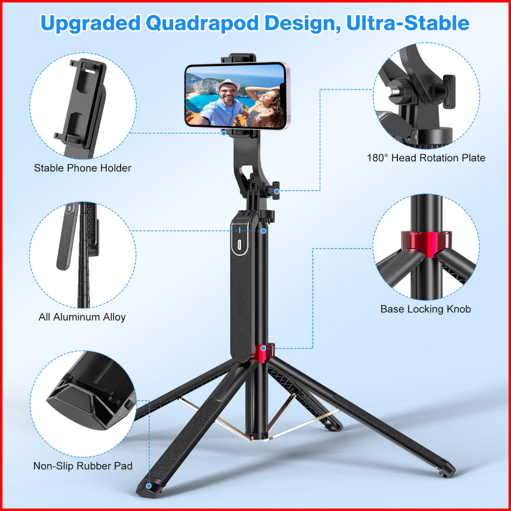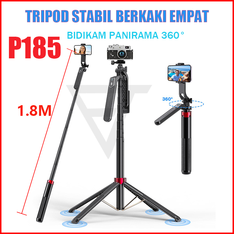 Ready Stock Ftt P185 Tongsis Tripod Bluetooth Remote Dengan Video Light 1 4 Adaptor Tripod Phone Holder Selfie Stick Tri