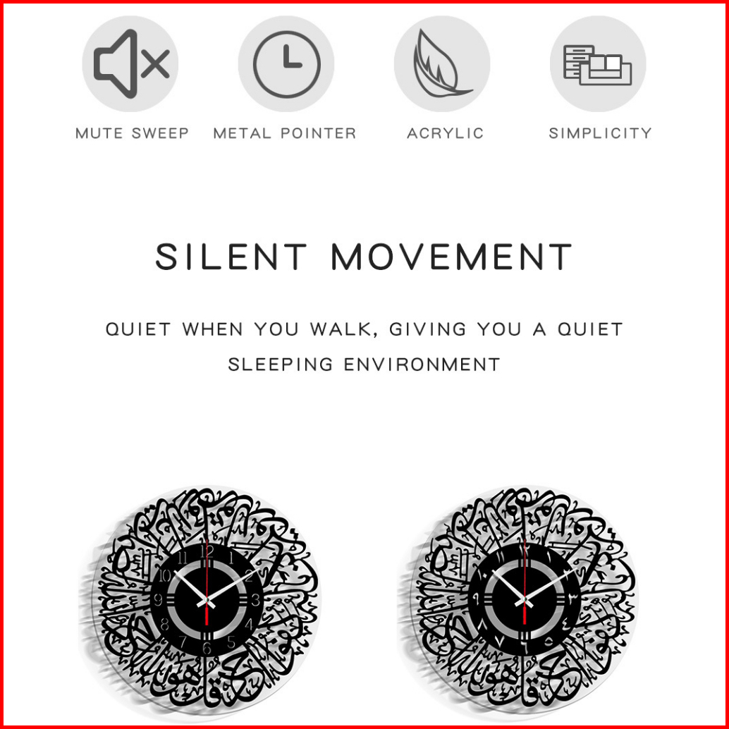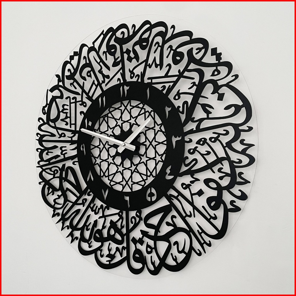 Jam Dinding Kaligrafi Quartz Calligraphy Al-ikhlas Acrylic Clock 30cm Arabic
