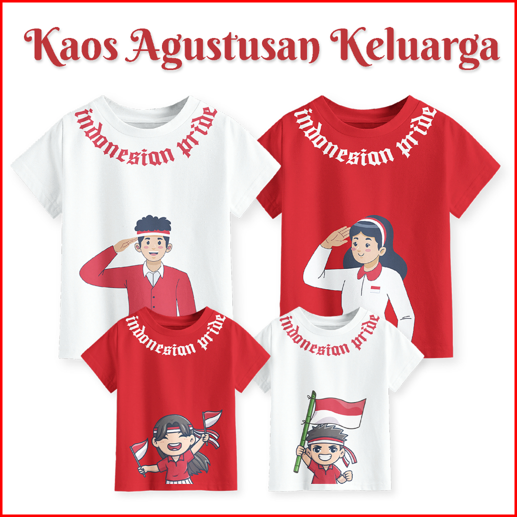 Terbaru Kaos Couple Family Anak Dan Dewasa Motif Indonesia Pride Warna Merah Putih