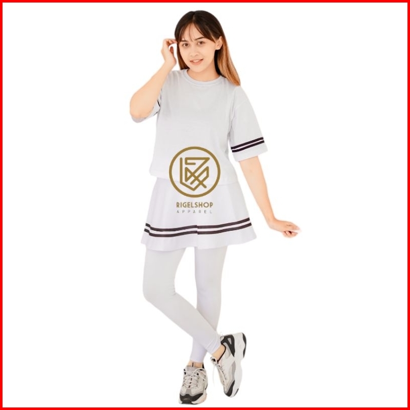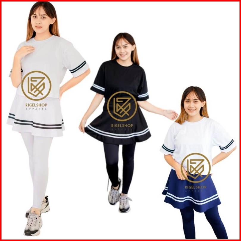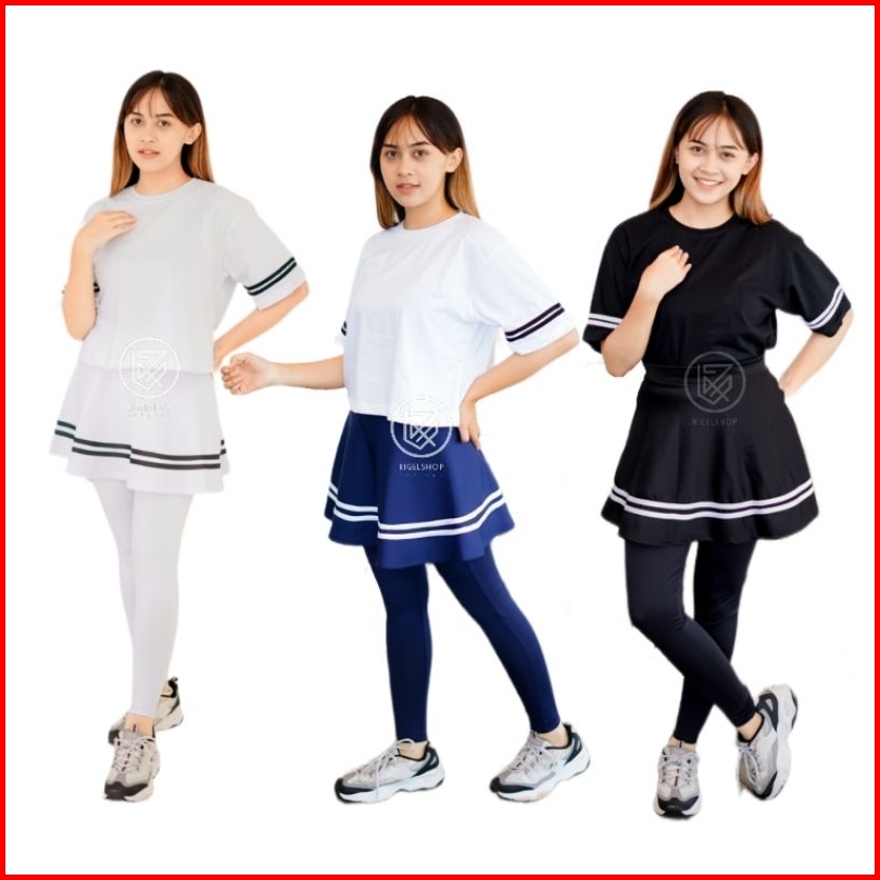 Paket Murah Setelan Olahraga Wanita Kaos Crop Top Rok Dan Legging Set Olahraga Aktivitas Outdoor