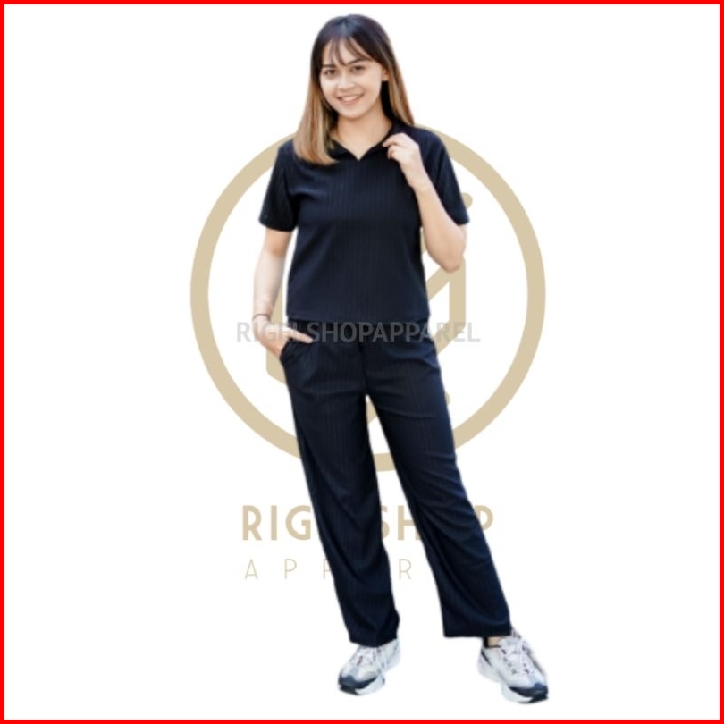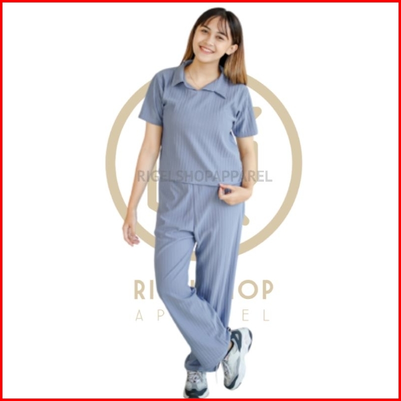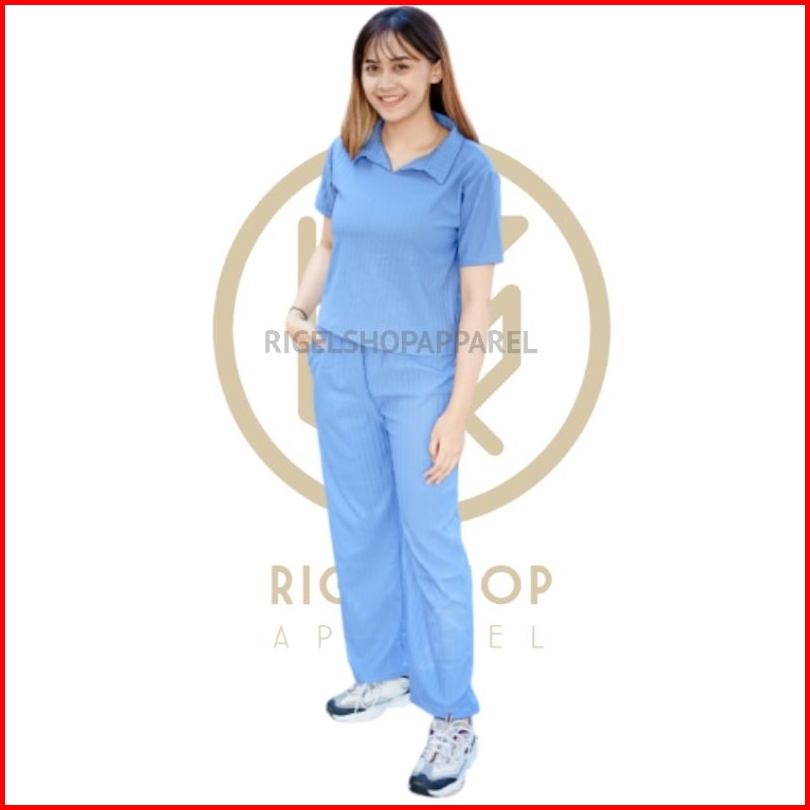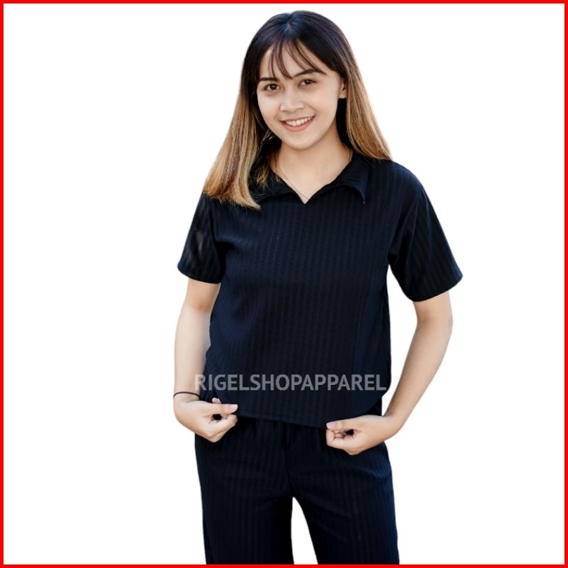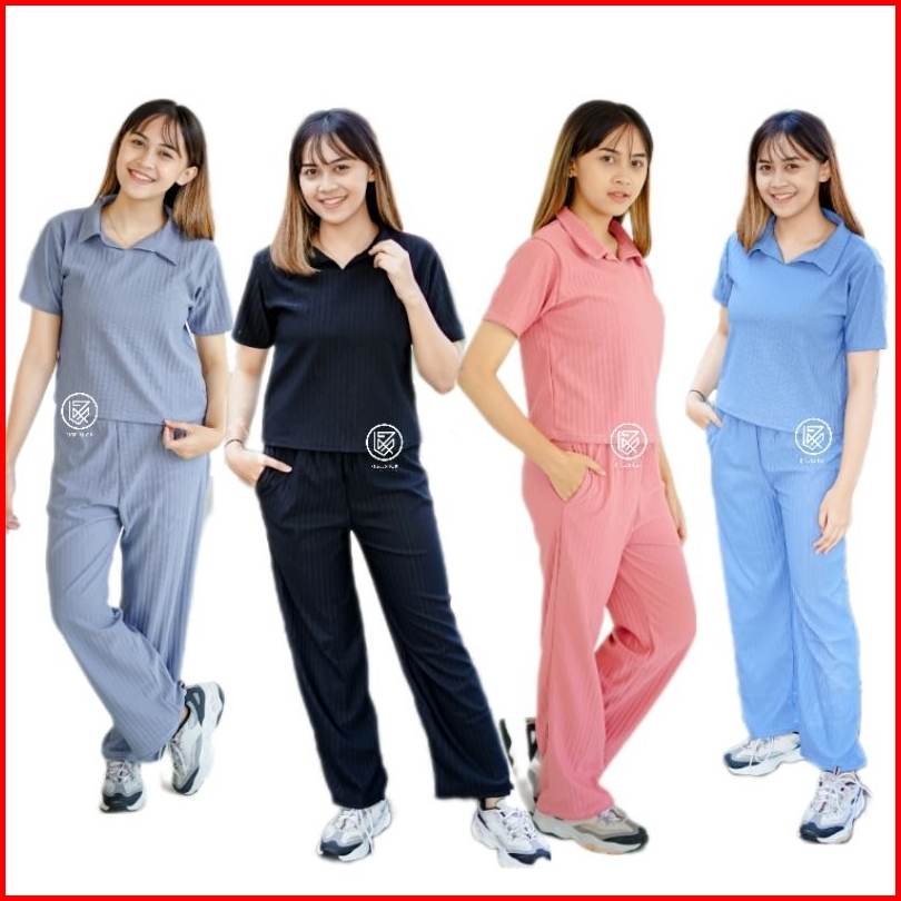 Set Wanita One Set Crop Top Kerah Celana Panjang Wanita Kasual