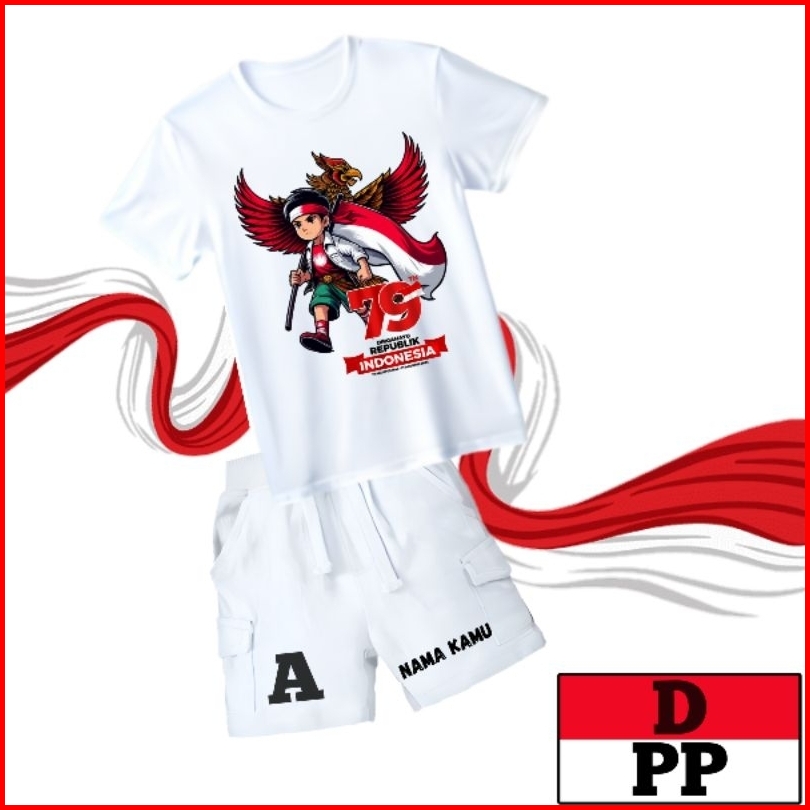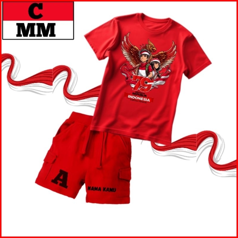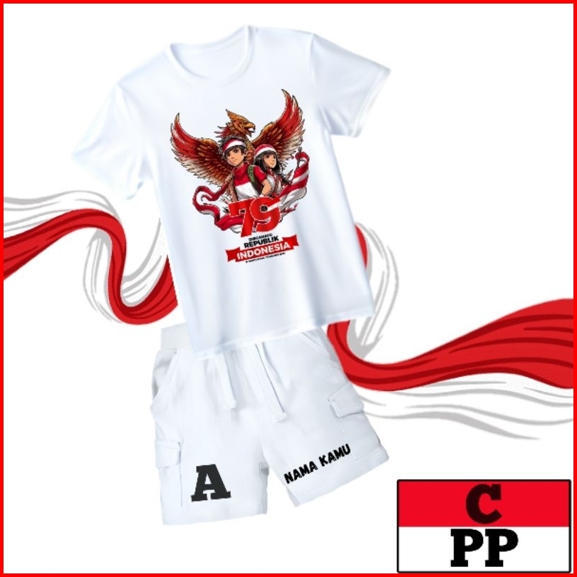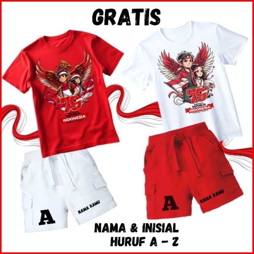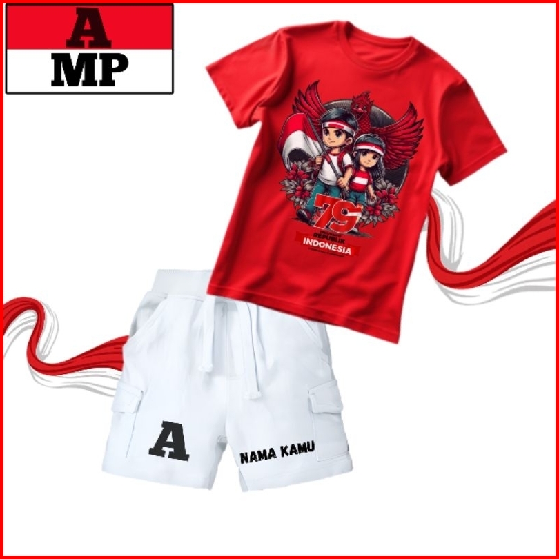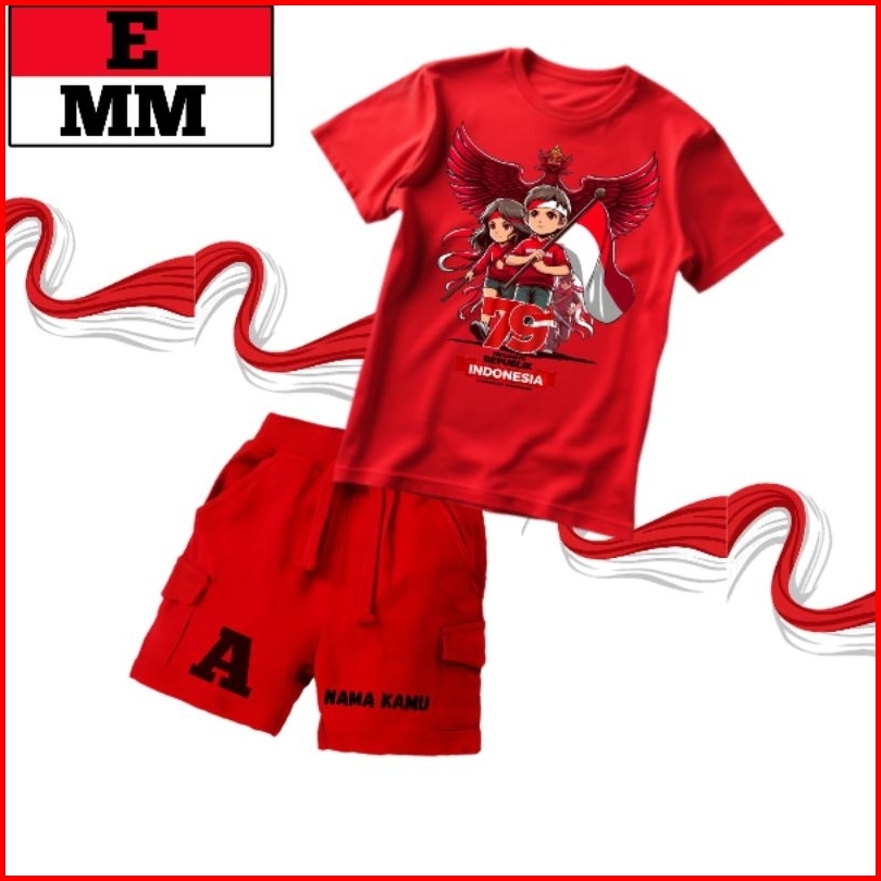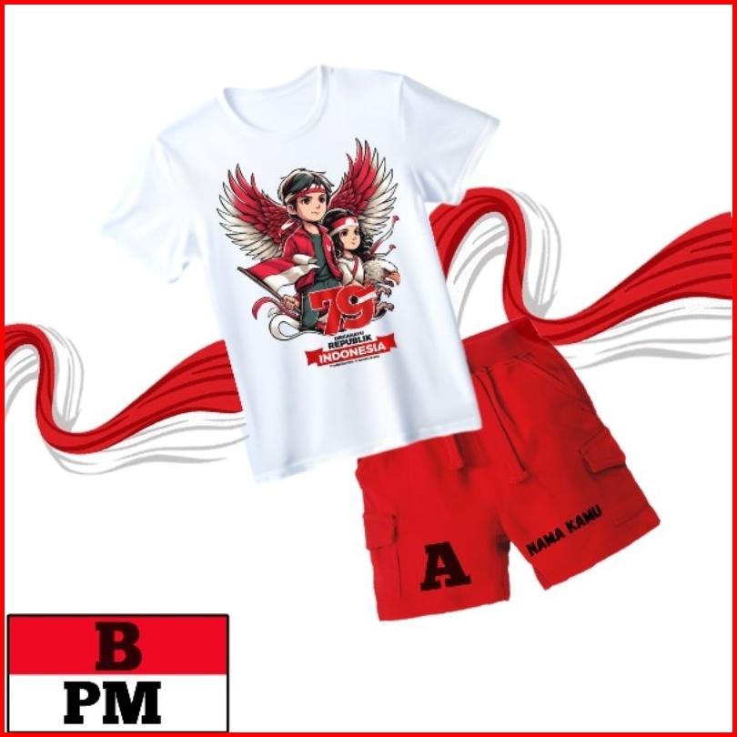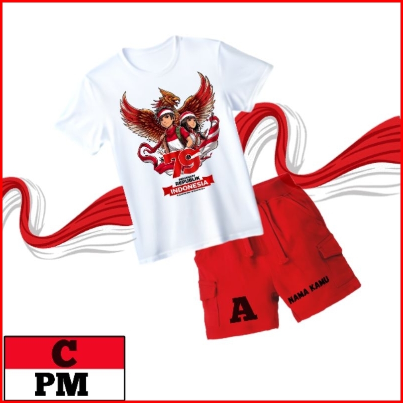 Setelan Anak Kemerdekaan Kaos Set Cargo Pendek T-shirt Usia 1-12 Tahun