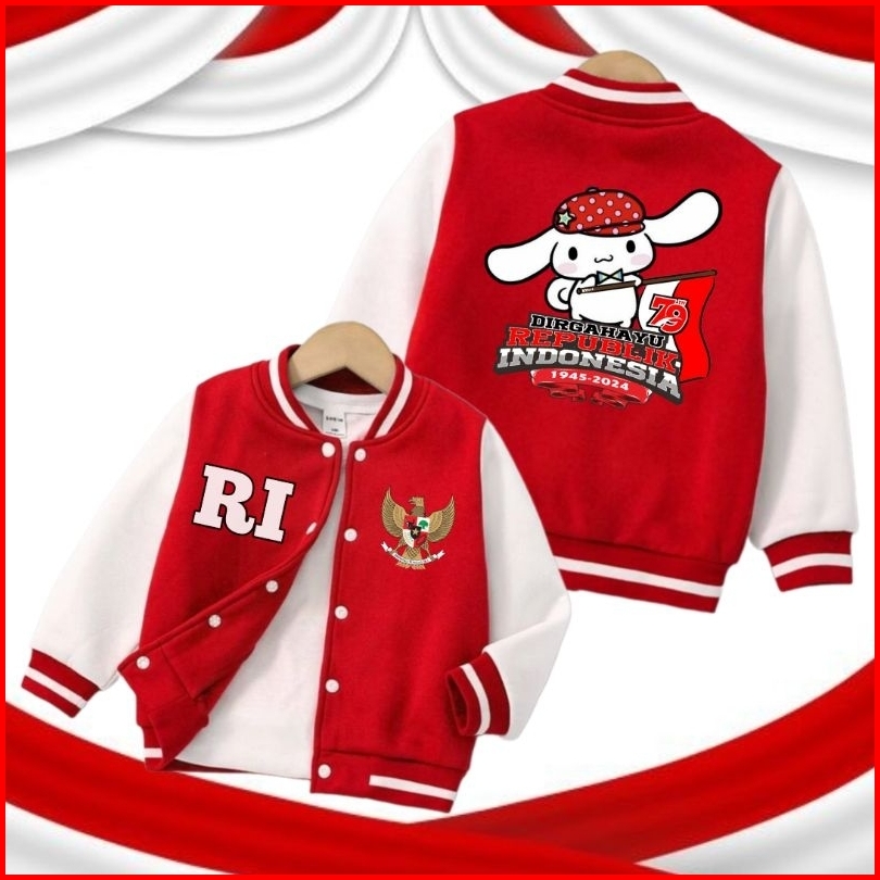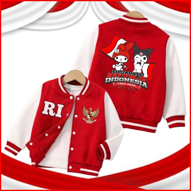 Jaket Varsity Anak Perempuan Baseball Kemerdekaan Kuromi My Melody Cinnamorol Usia 3-13 Tahun