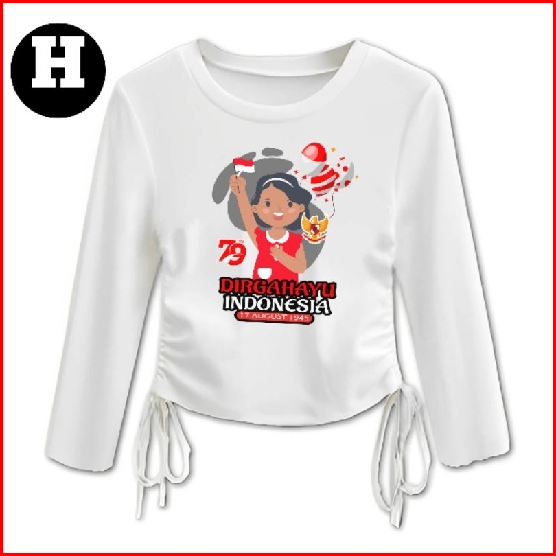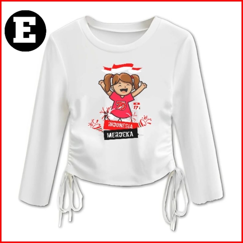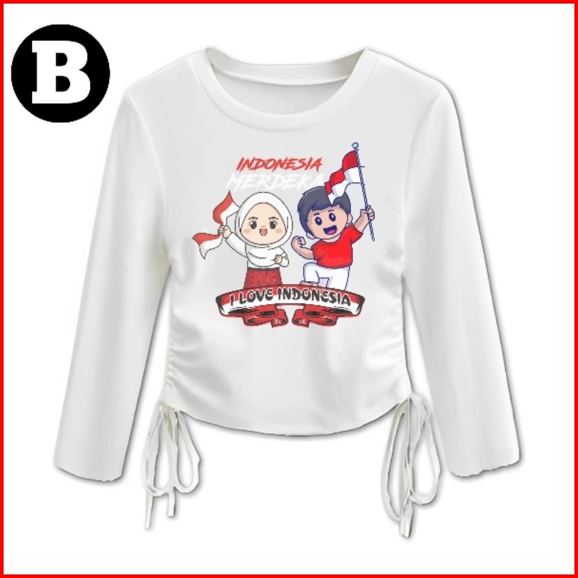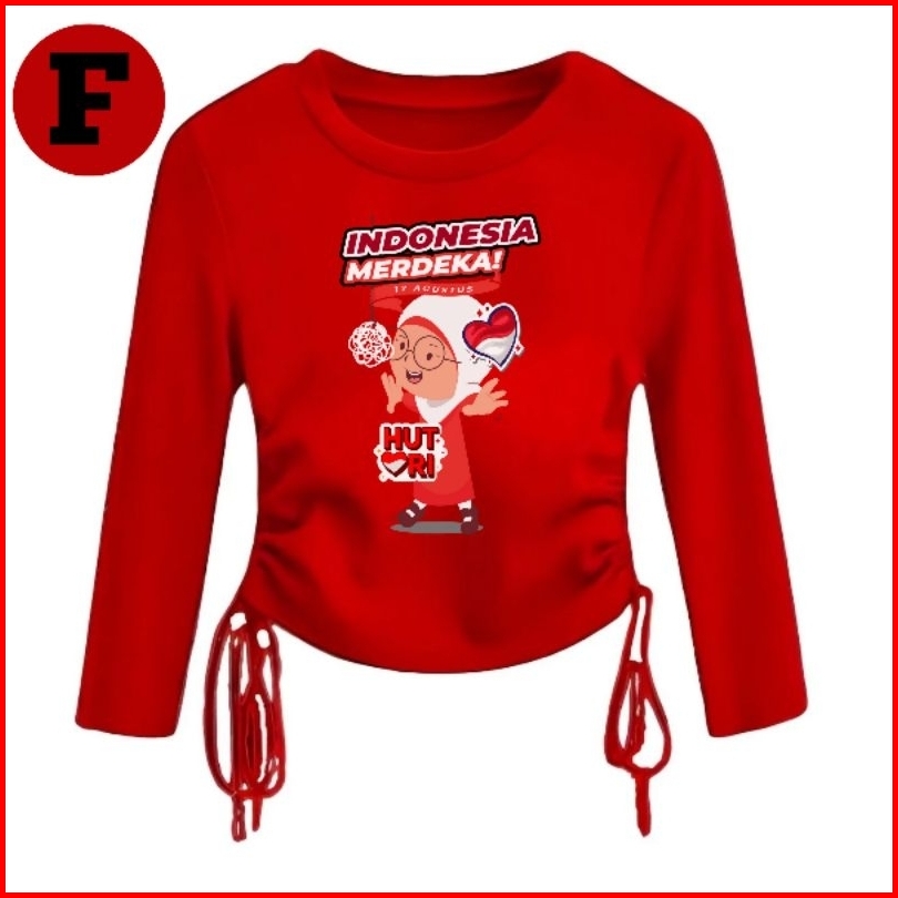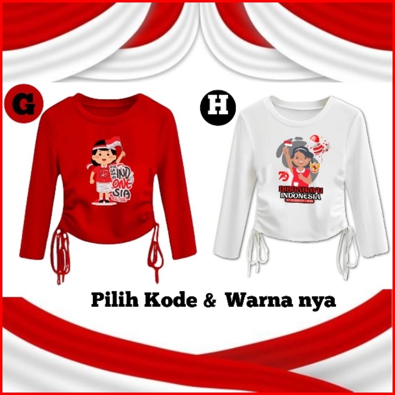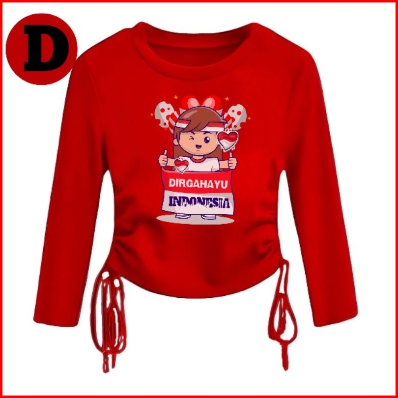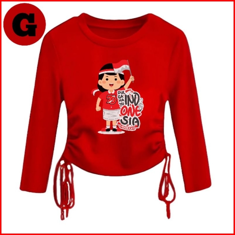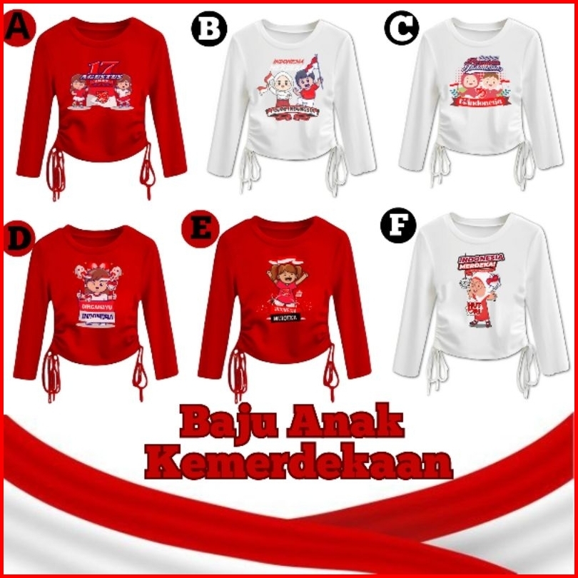 Korean Style T-shirt Anak Perempuan Merah Putih Kemerdekaan Usia 2-13 Tahun