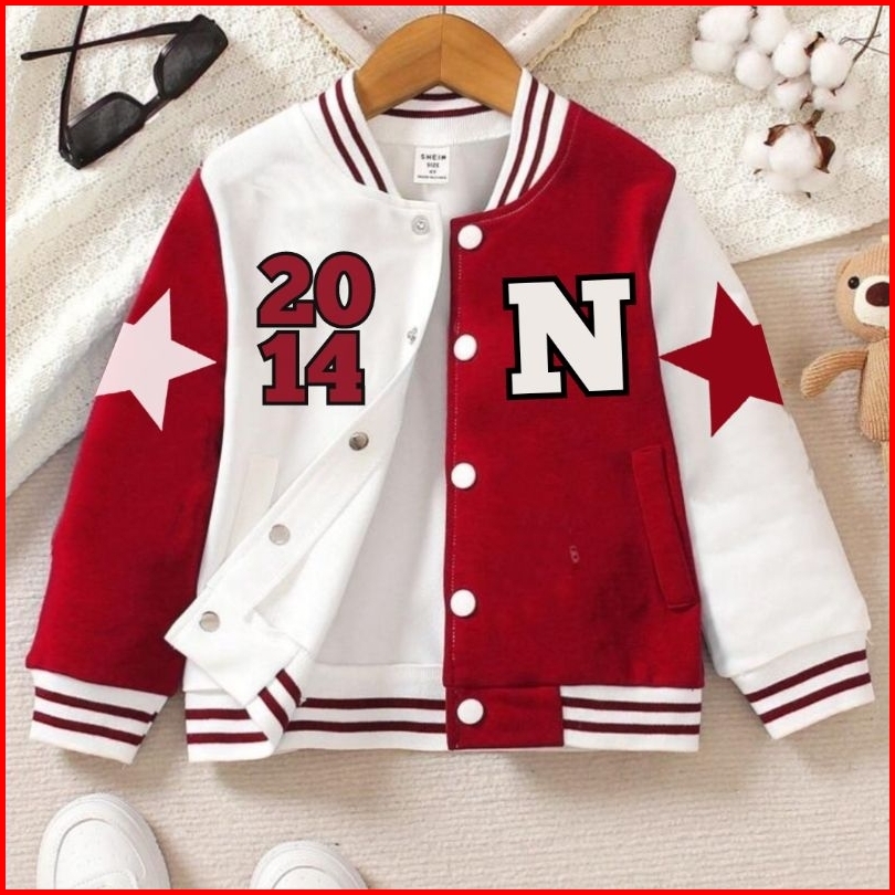 Jaket Varsity Anak Gratis Inisial Nama Dan Tanggal Lahir Umur 3 4 5 6 7 8 9 10 11 12 Tahun