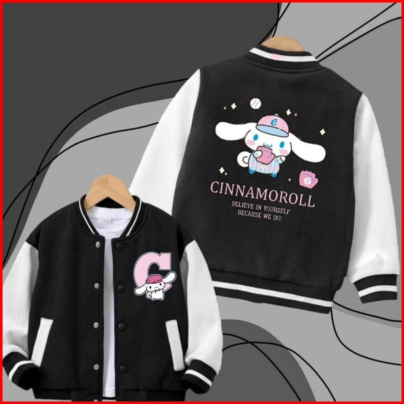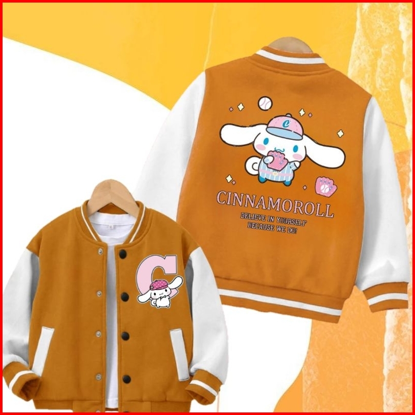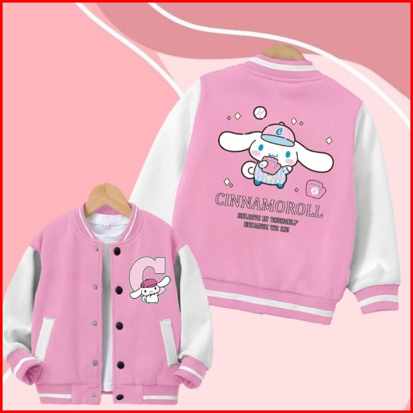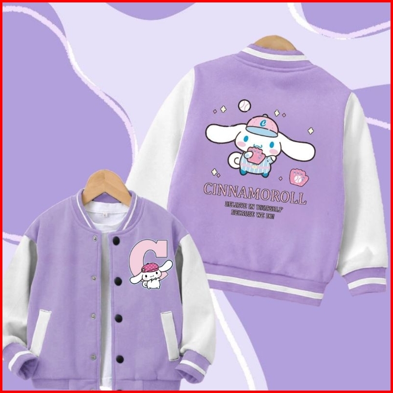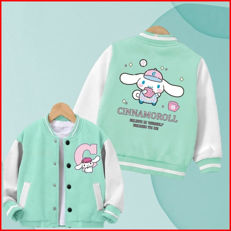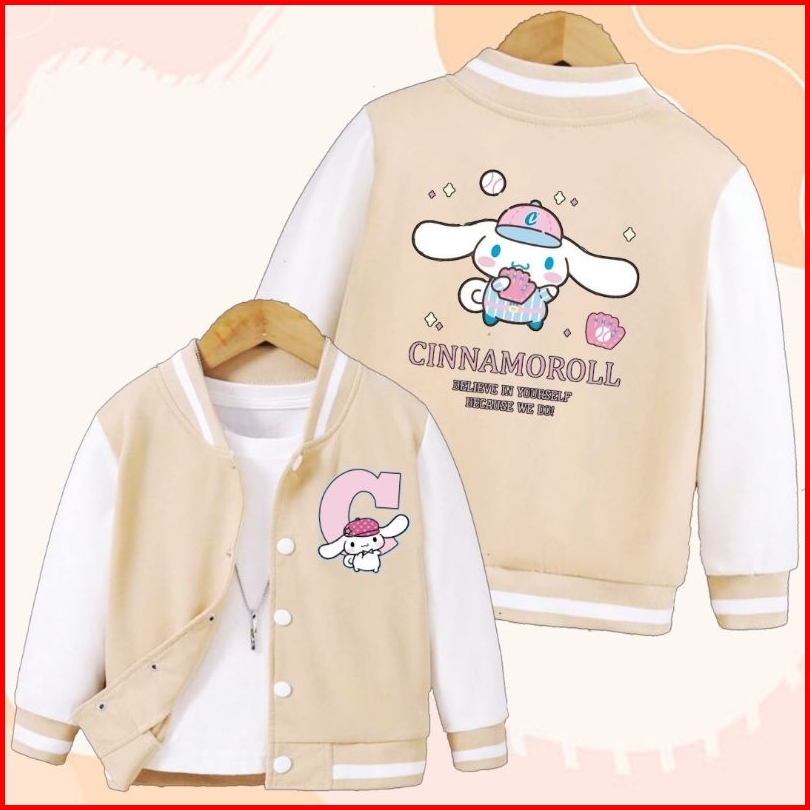 Jaket Varsity Anak Perempuan Cinnamoroll Baseball Inisial C
