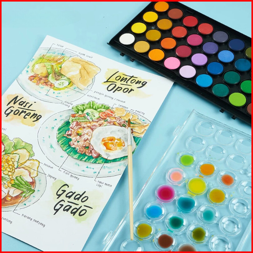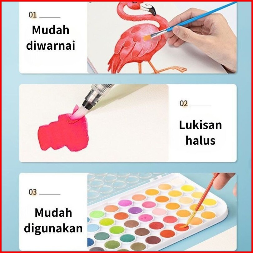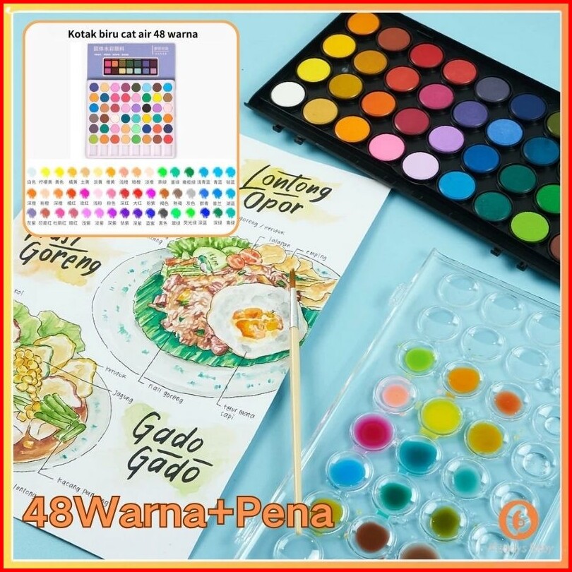 Penjual Lokal 48 Warna Watercolor Set Cat Air Melukis Alat Lukis Solid