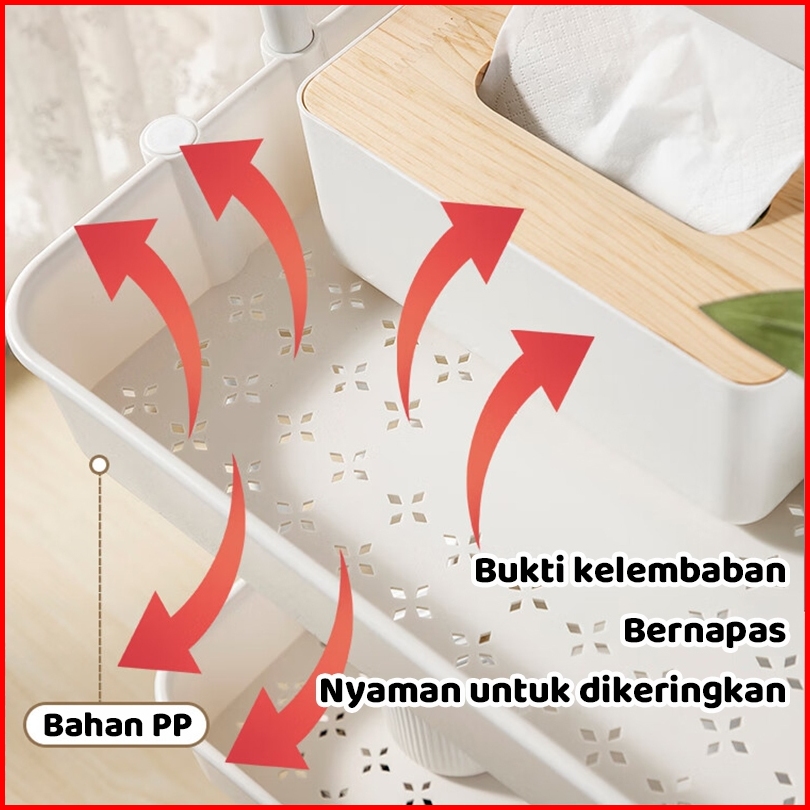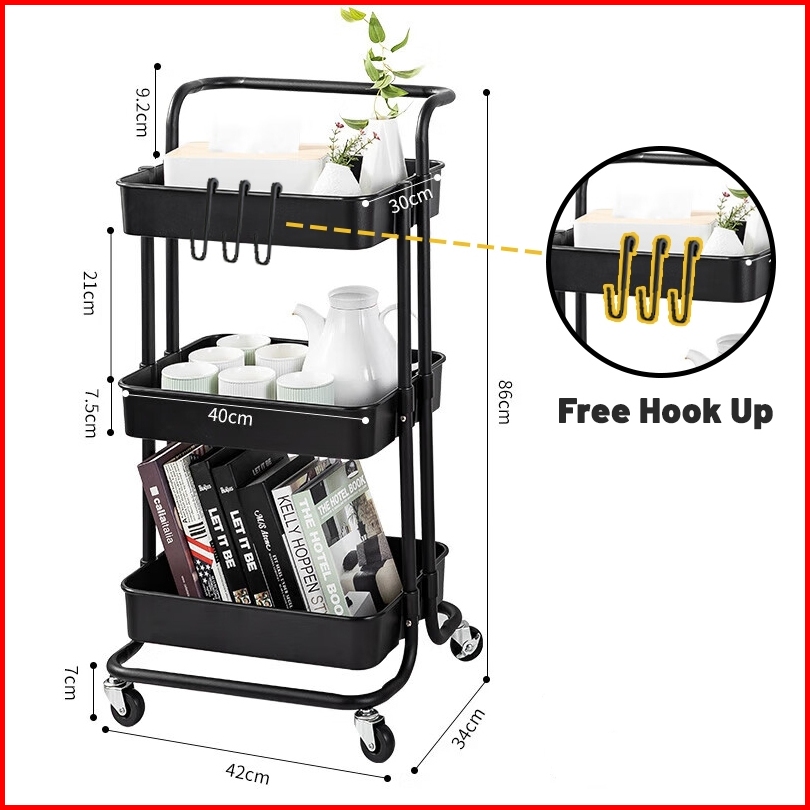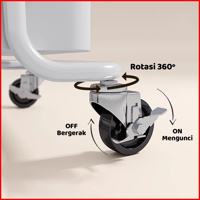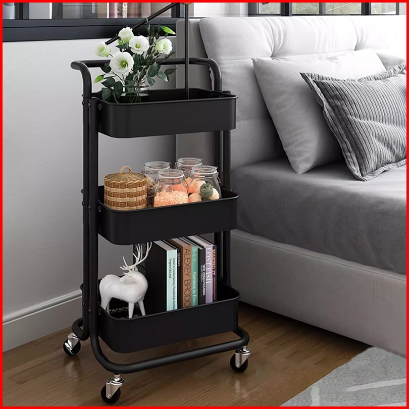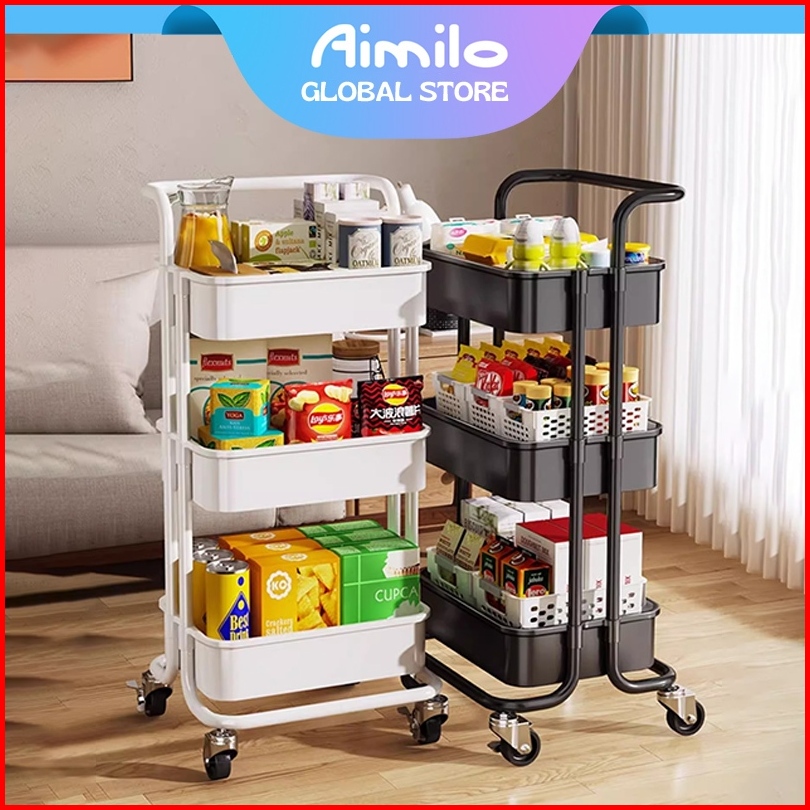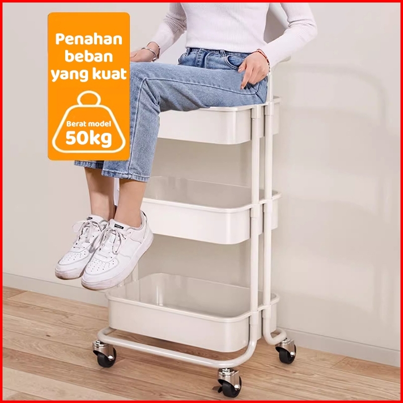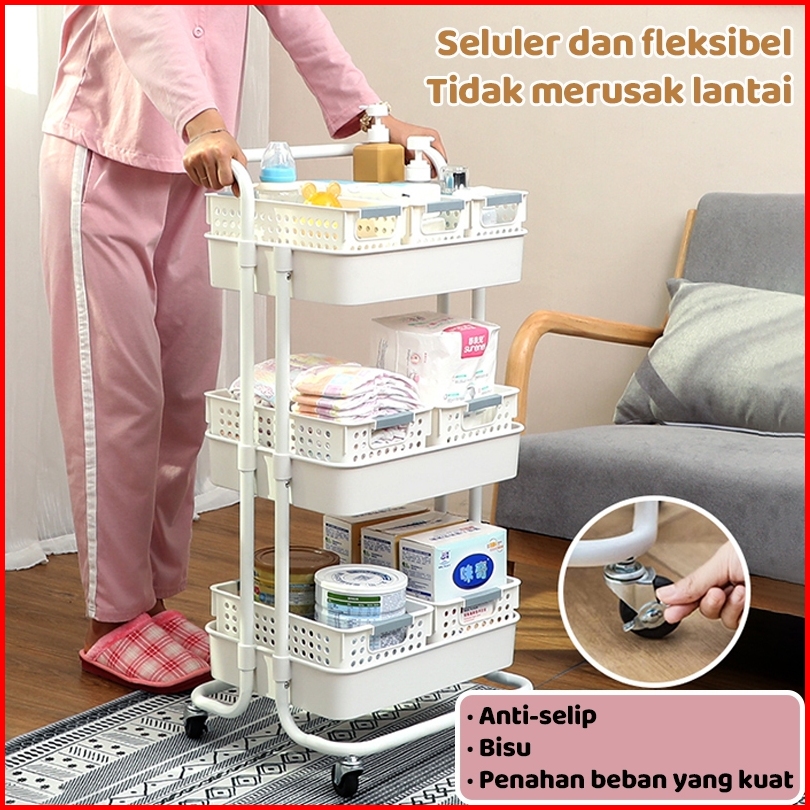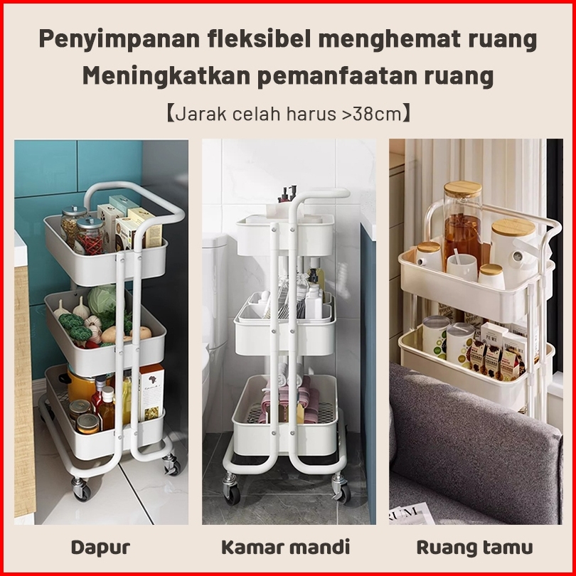 Ready Aimilo Rak Troli Susun Serbaguna Rak Dapur Dorong Besi Stainless Steel Rak Penyimpanan Barang 3 Susun Roda Dan Peg
