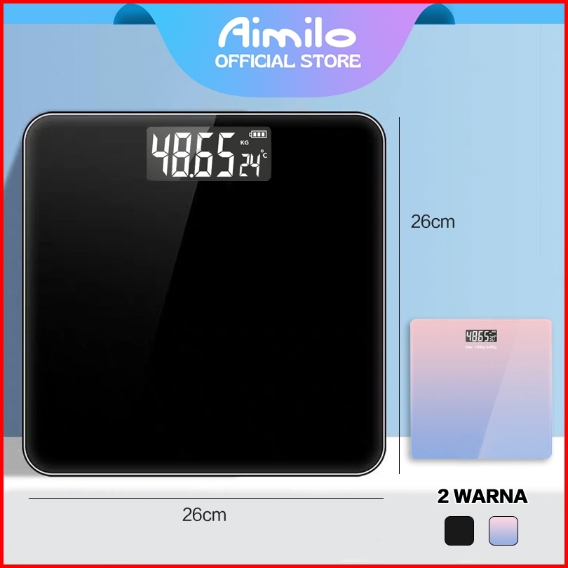 Ready Aimilo Timbangan Badan Digital Max 180kg Pengukuran Akurat Timbangan Layar Lcd Berat 26x26cm
