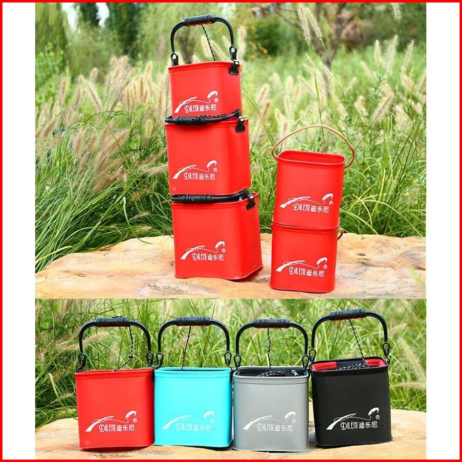 Ember Lipat Mancing Ikan Tempat Wadah Ikan Udang Umpan Hidup Folding Bucket Portable