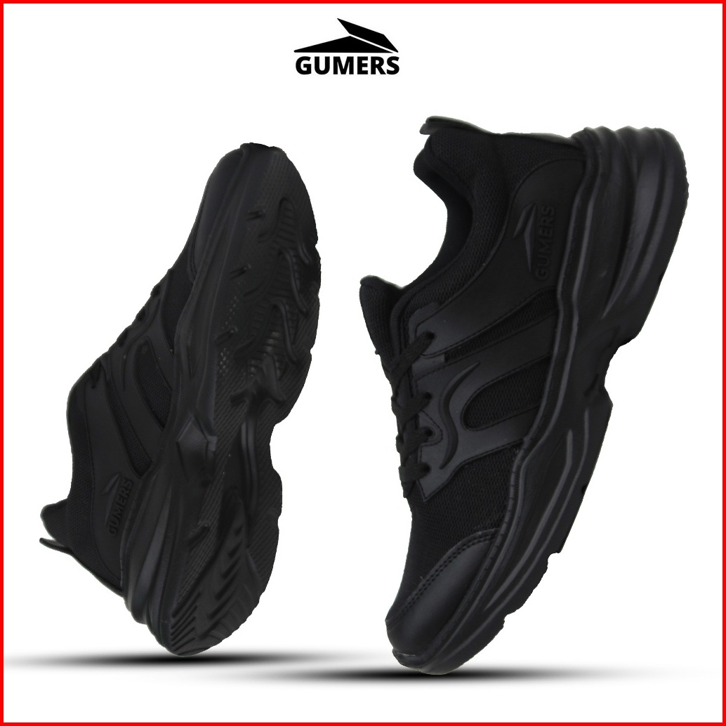 Sneakers Gumers Full Black Sepatu Pria Dan Wanita Sport Olahraga Kerja Sekolah Lari Senam Jogging
