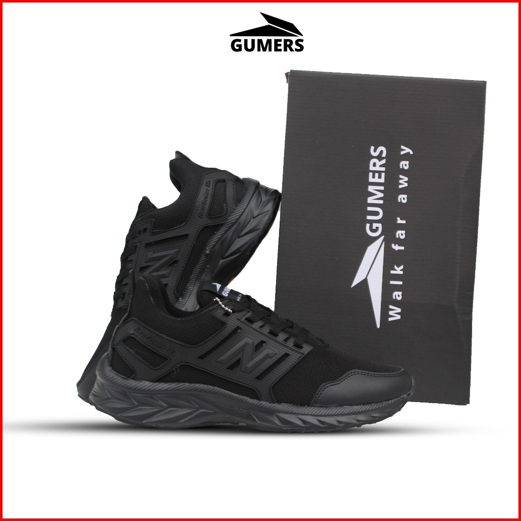 Sepatu Hitam Polos Pria Dan Wanita Sneakers Full Black Sepatu Sekolah Sepatu Olahraga Kerja Ringan