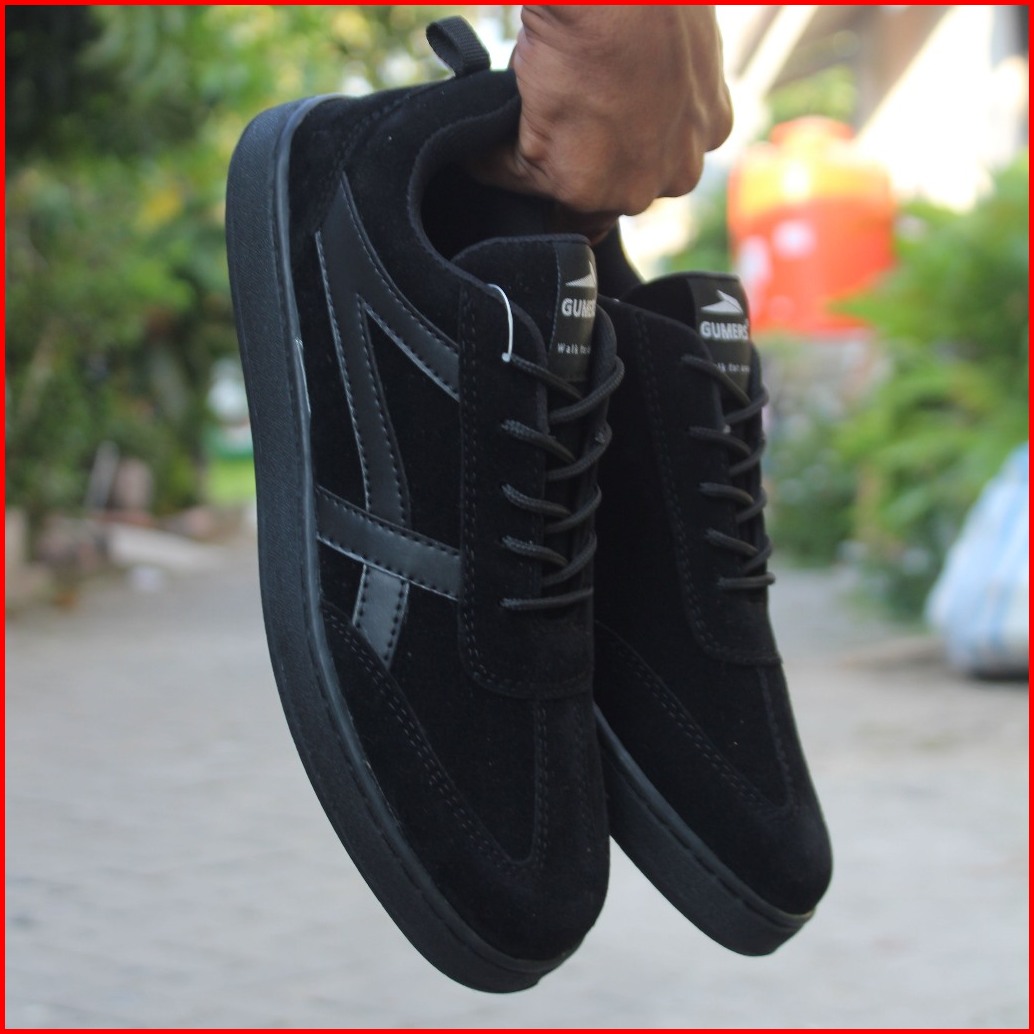 Sneakers Casual Gumers Sol Sudah Di Jahit Sepatu Pria Dan Wanita Hitam Polos Full Black Sepatu Sekolah Sepatu Kerja Sepa