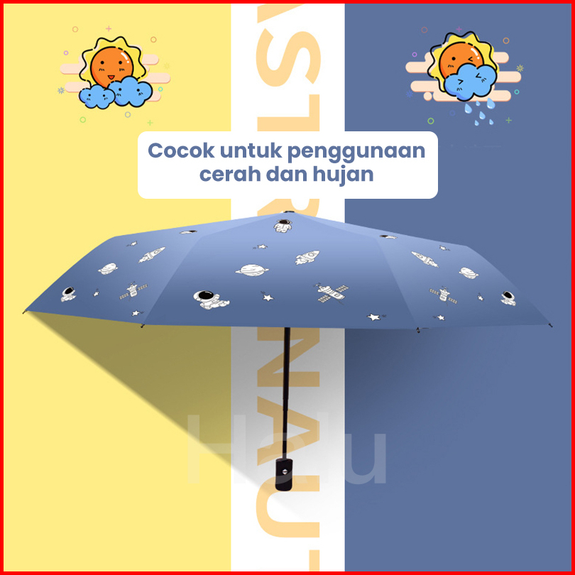 Halu Payung Lipat Otomatis Anti Uv Hujan Atau Panas Payung Lipat Mini Karakter Lucu Payung Lipat Buka Tutup Otomatis Hpy