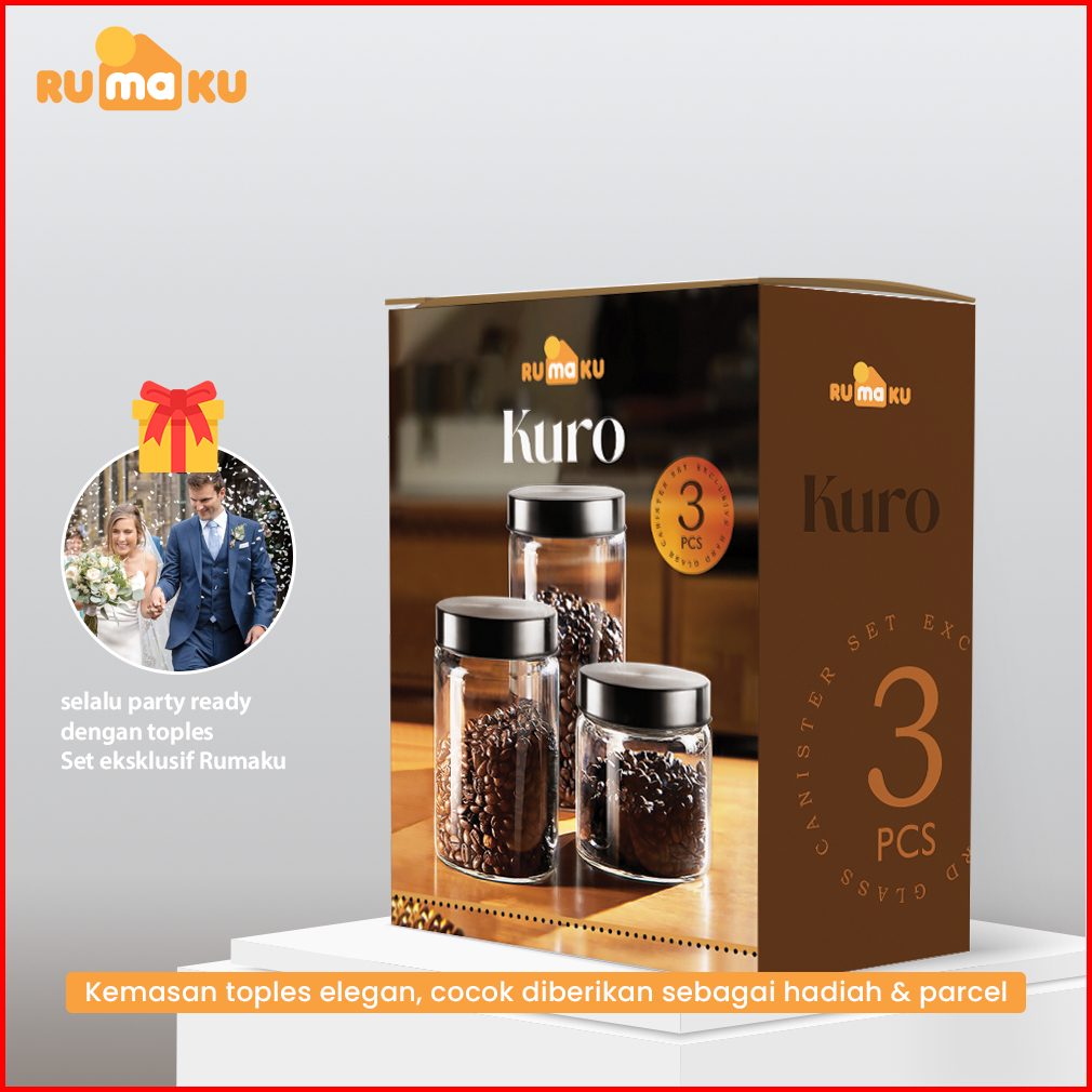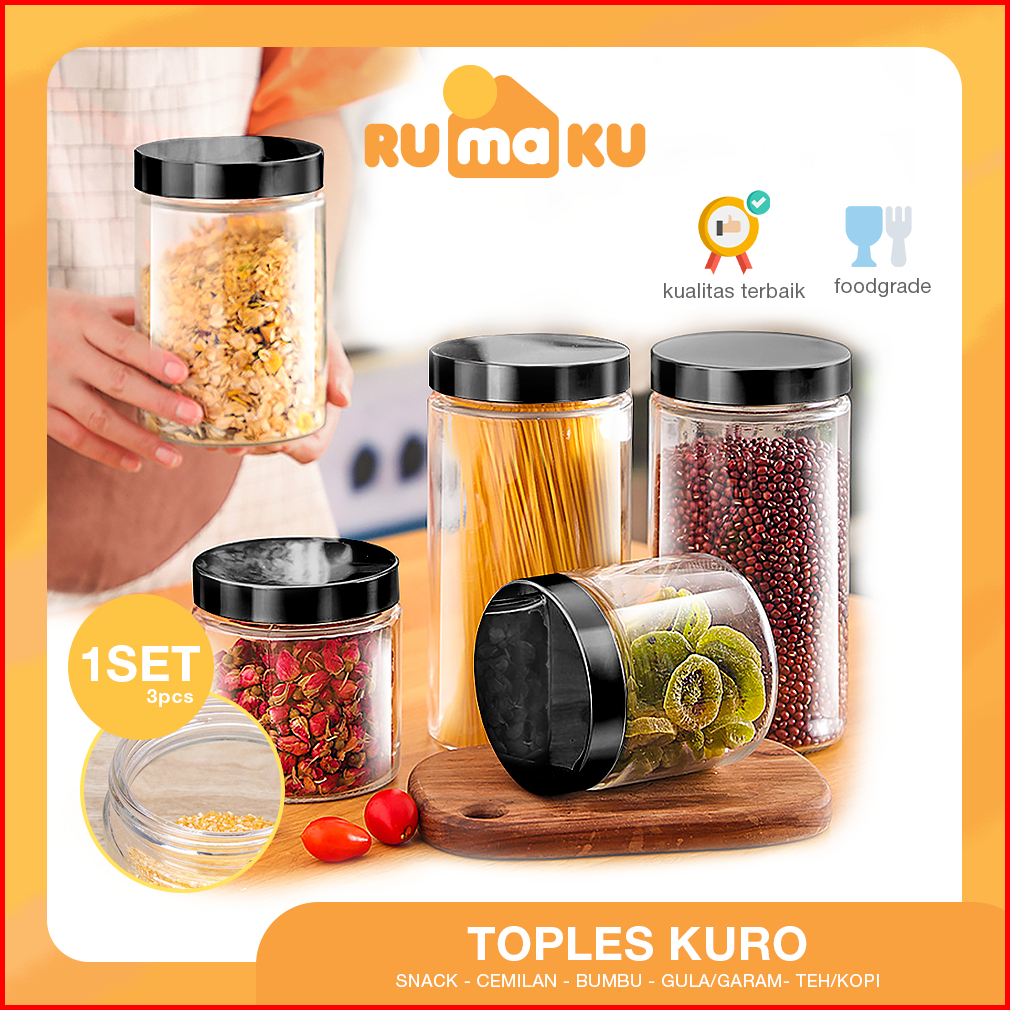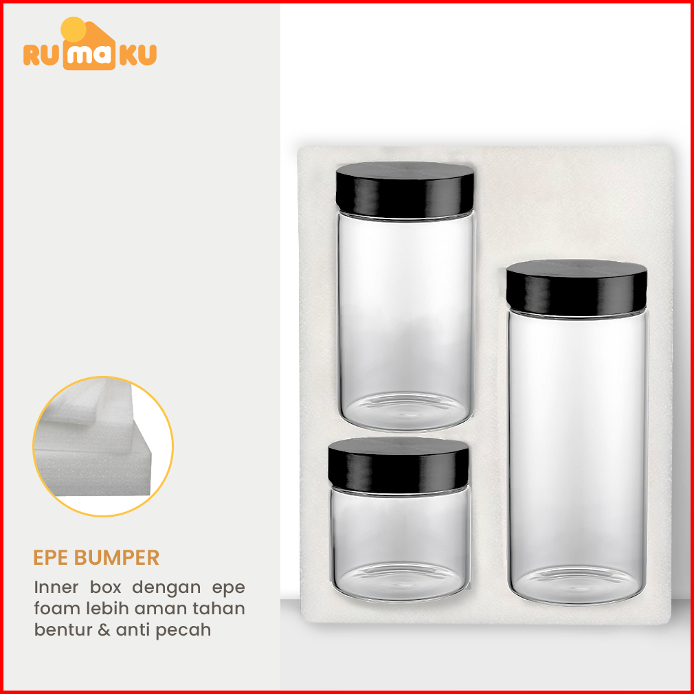 Rumaku Toples Kaca Lebaran Kedap Udara Set 3 Pcs Toples Kue Snack Kerupuk Tutup Ulir Premium Quality