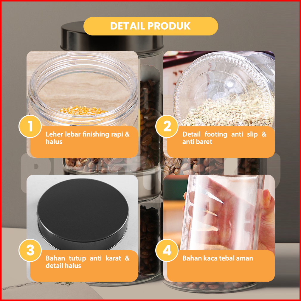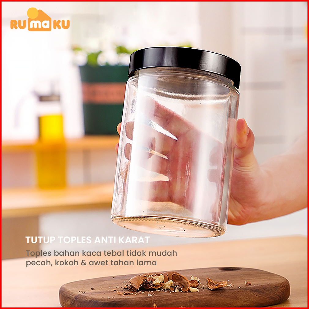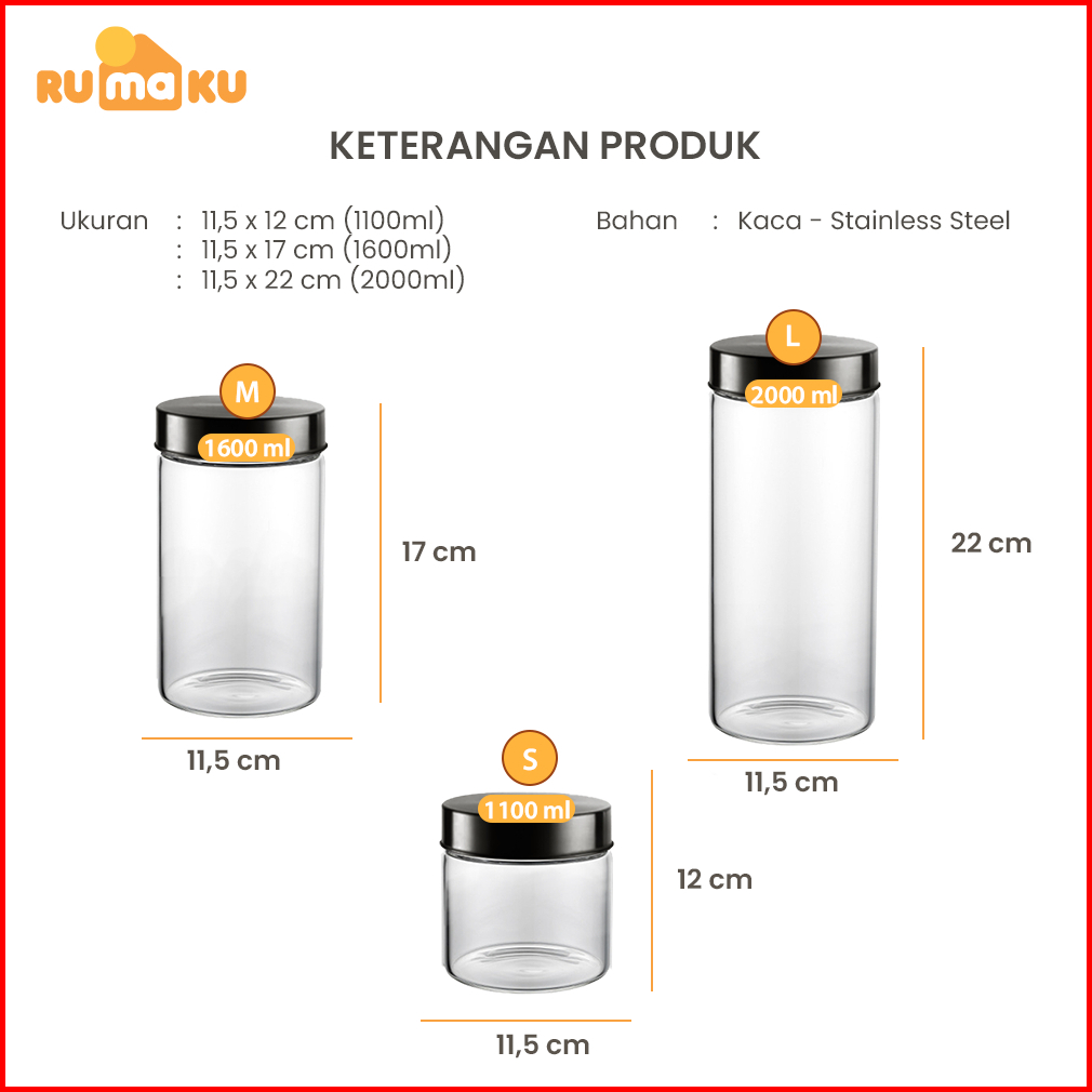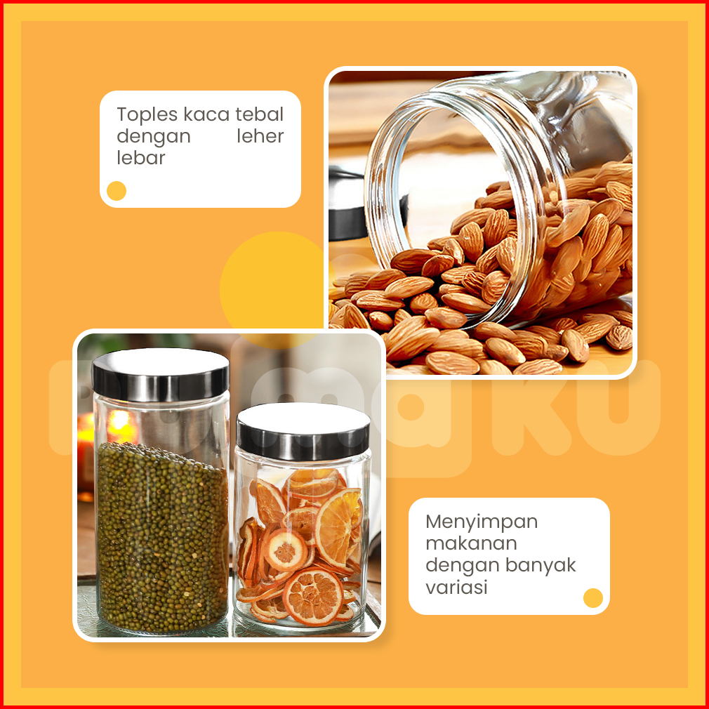 Rumaku Toples Kaca Lebaran Kedap Udara Set 3 Pcs Toples Kue Snack Kerupuk Tutup Ulir Premium Quality