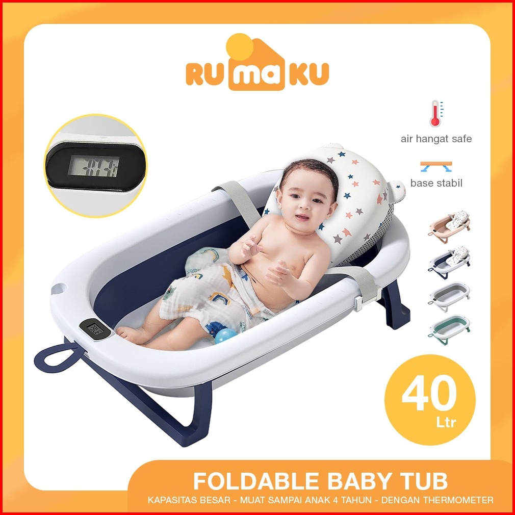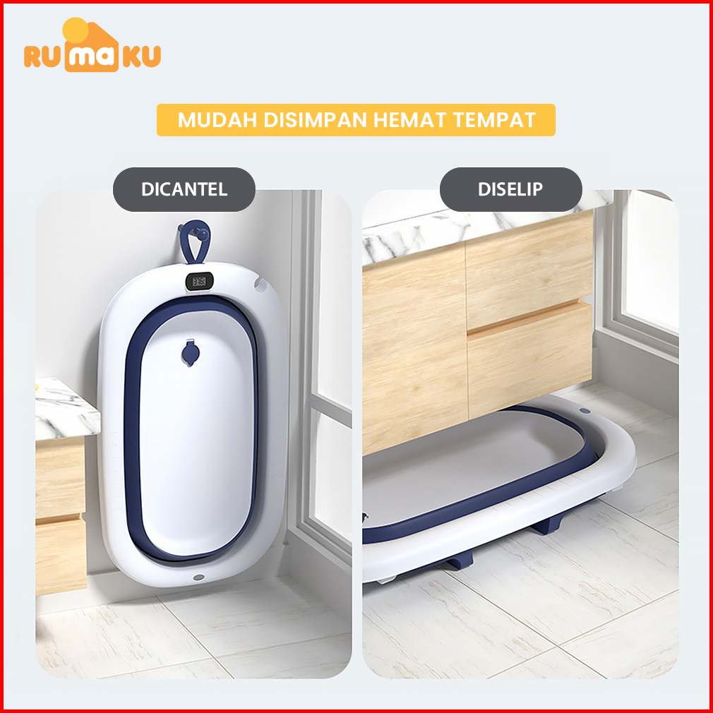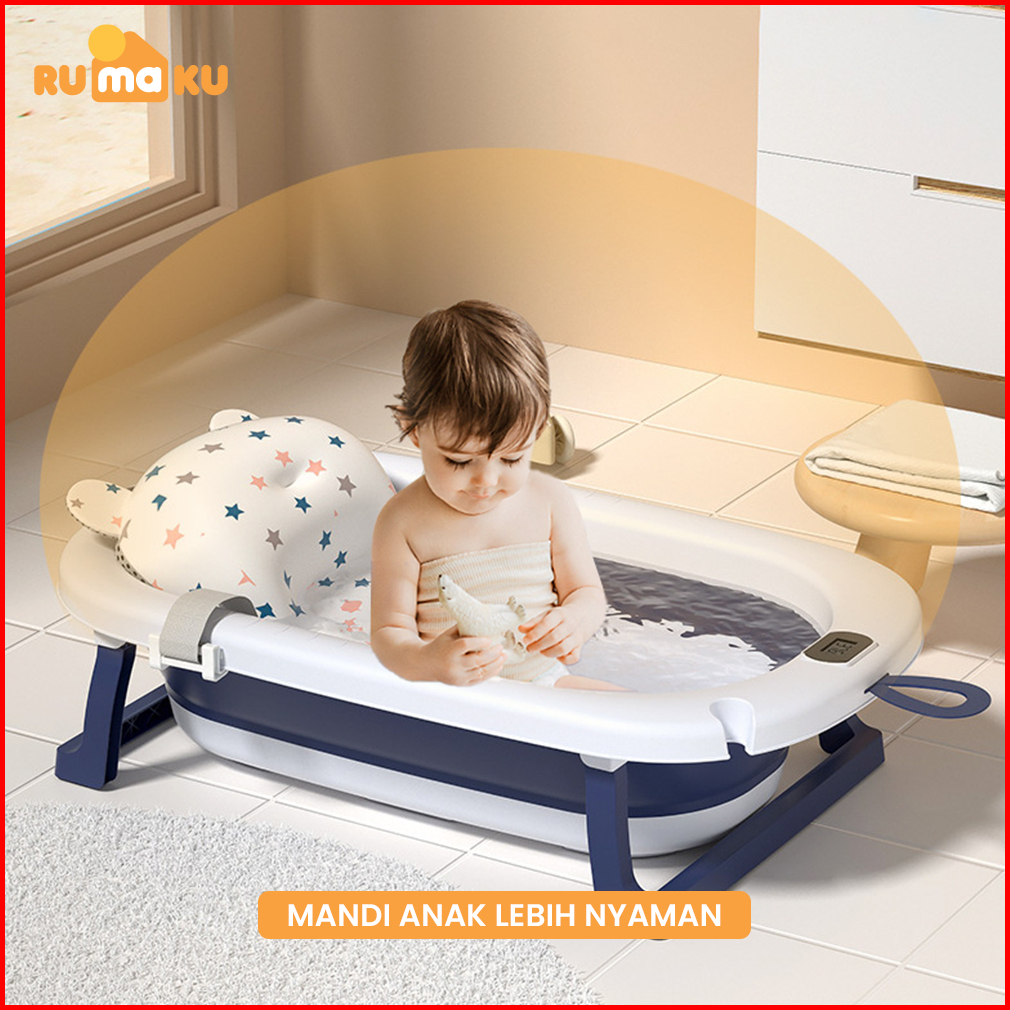 Rumaku Foldable Baby Bath Tub Bak Mandi Bayi Lipat Dengan Pengukur Suhu Dan Bantal Mandi Tempat Mandi Bayi Portable