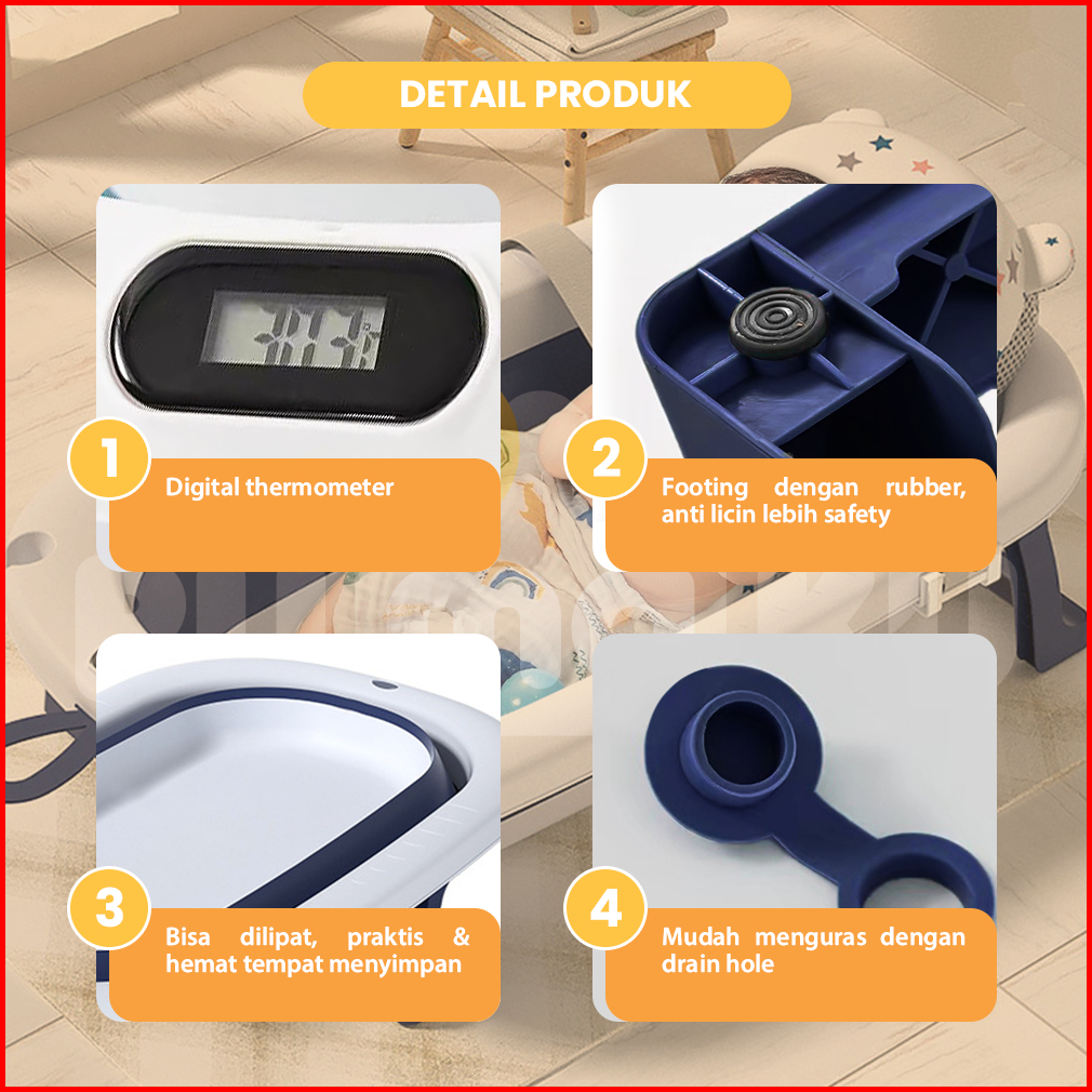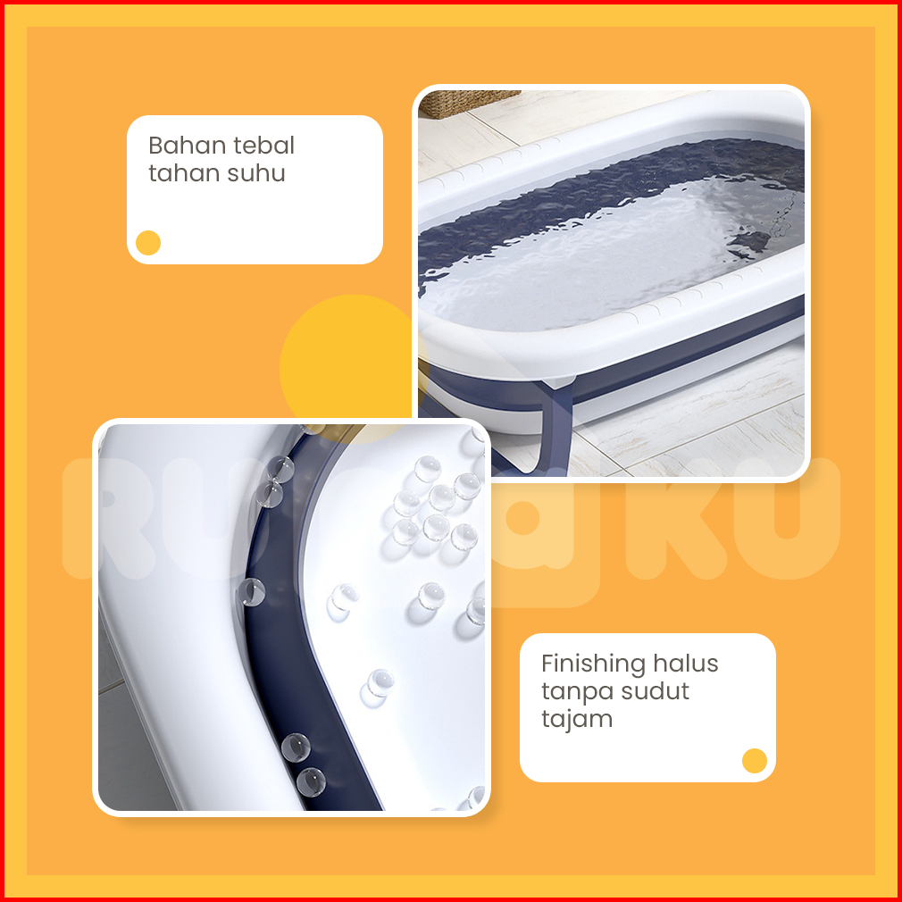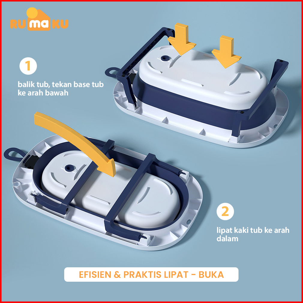 Rumaku Foldable Baby Bath Tub Bak Mandi Bayi Lipat Dengan Pengukur Suhu Dan Bantal Mandi Tempat Mandi Bayi Portable