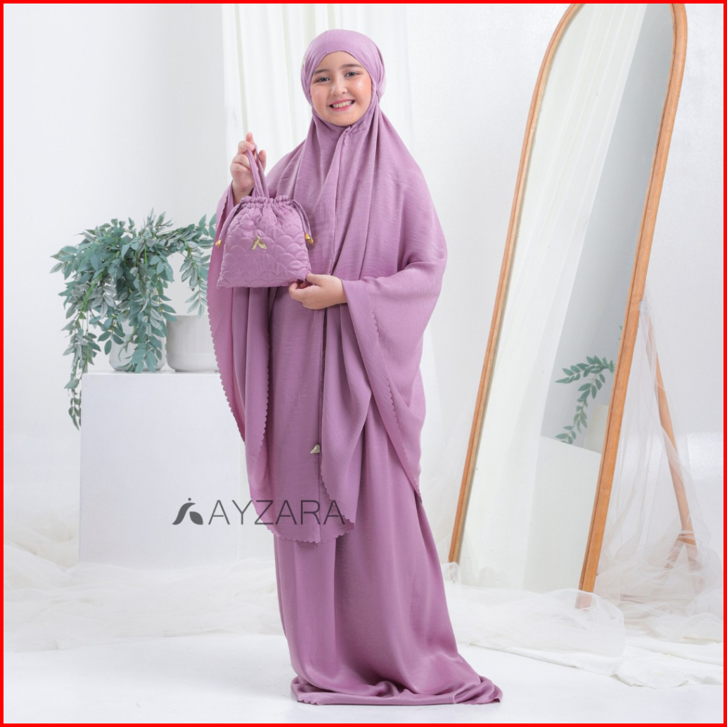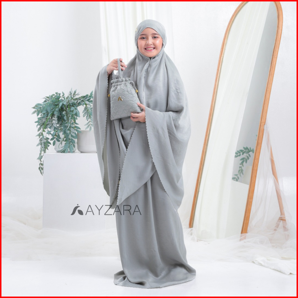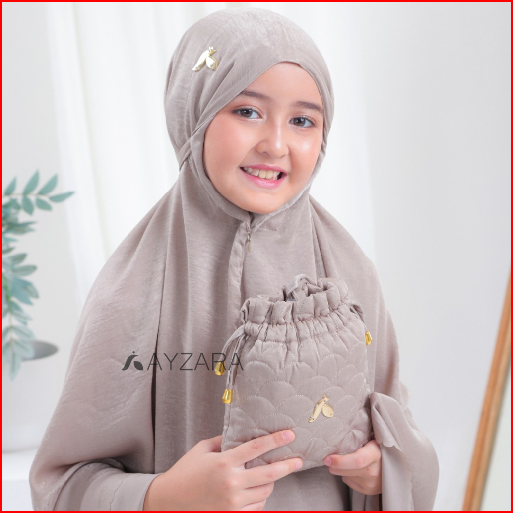 Mukena Traveling Anak Perempuan Umur 6-13 Tahun Santorini Silk Premium Tas Ayzara Terbaru