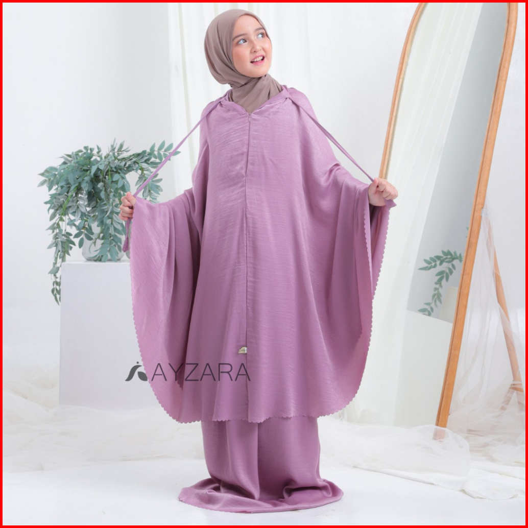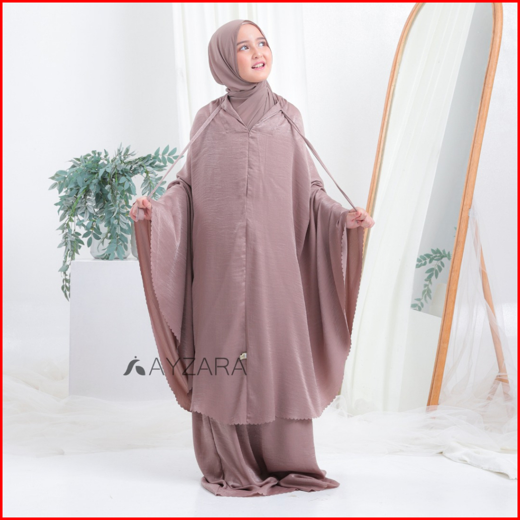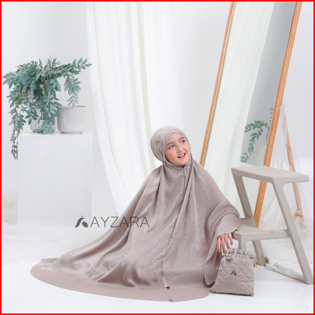 Mukena Traveling Anak Perempuan Umur 6-13 Tahun Santorini Silk Premium Tas Ayzara Terbaru