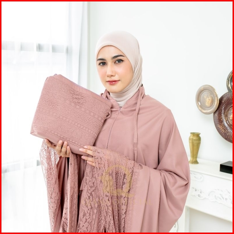 Qmw - Mukena Dewasa Katun Apollen Premium 2 In 1 Daily Qiana Series Renda Mewah Jumbo