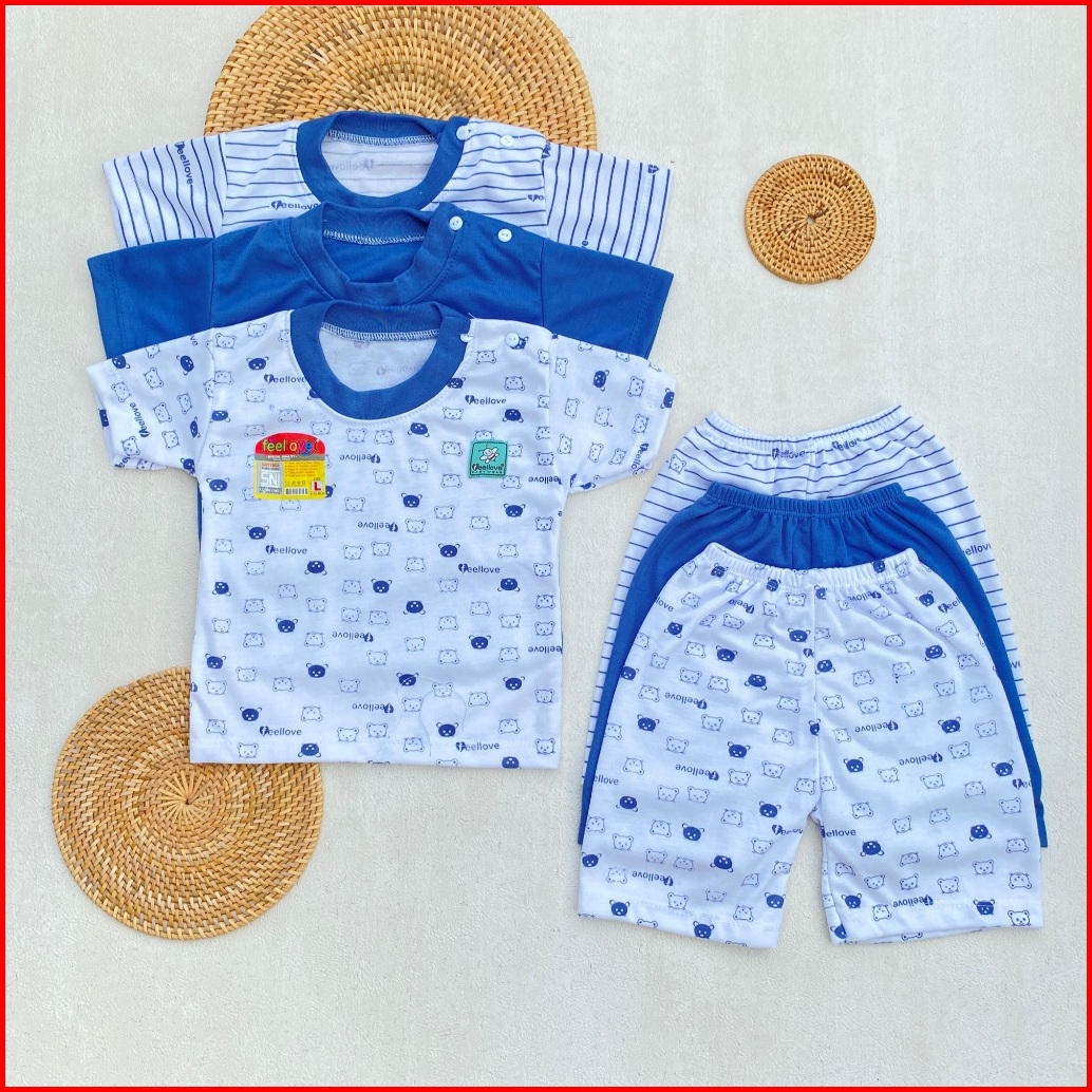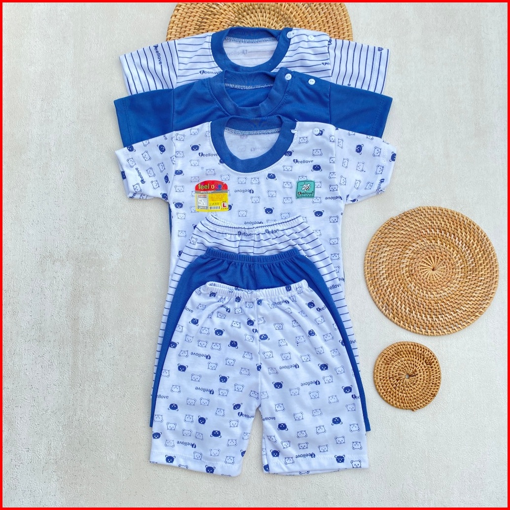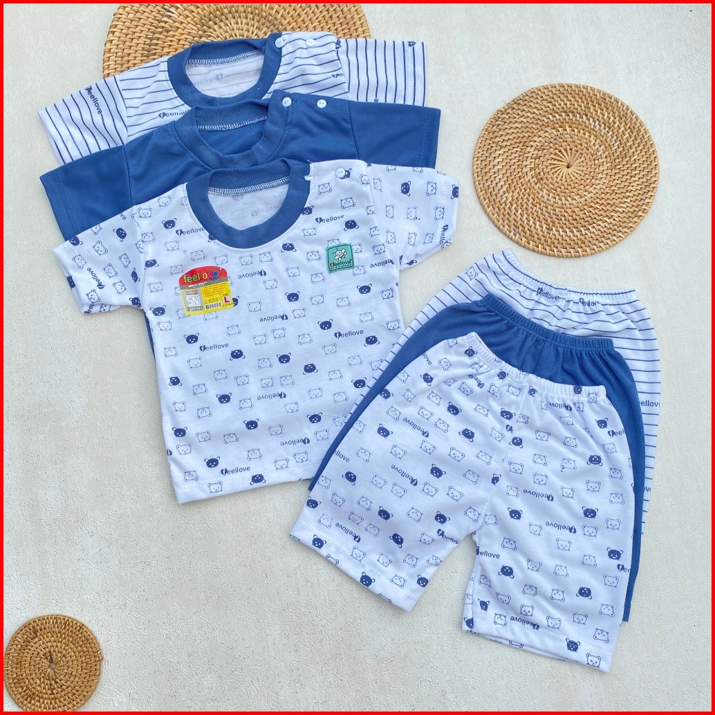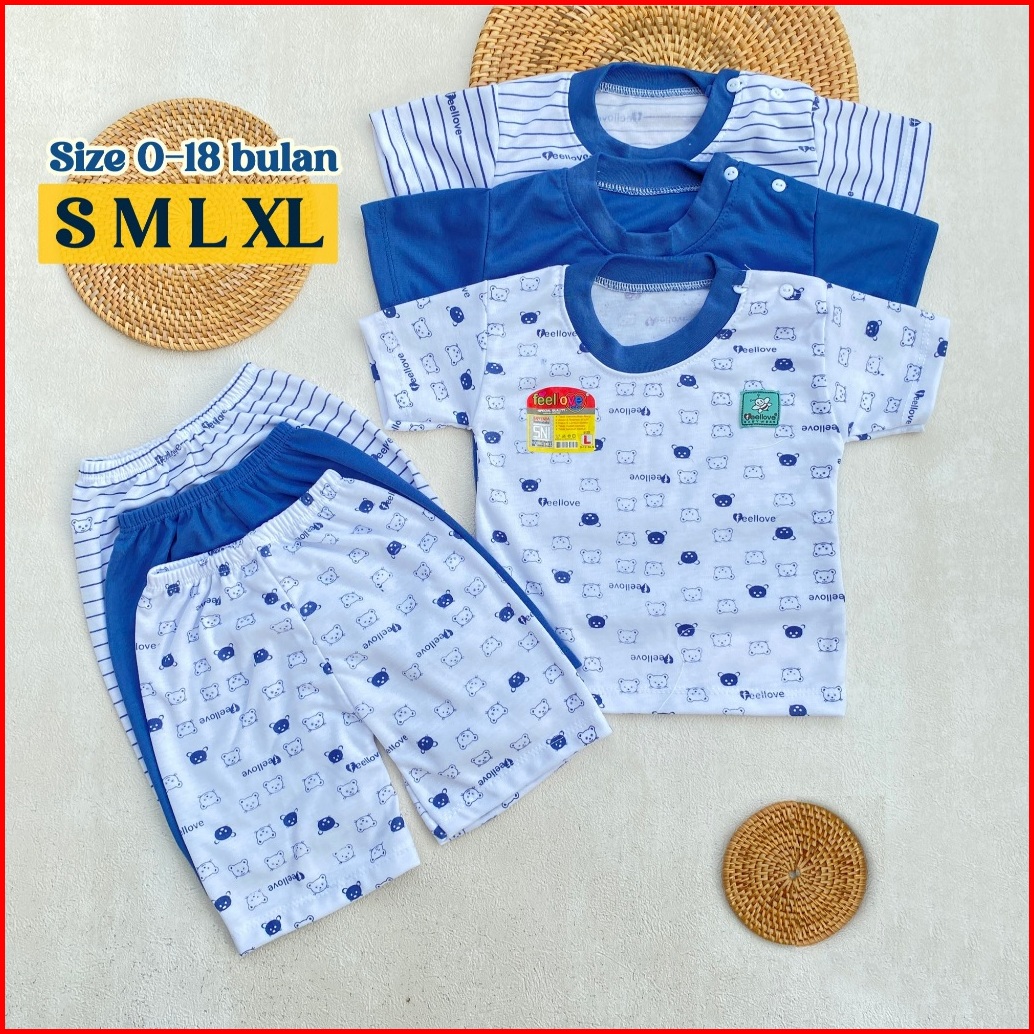 Feellove - 3 Setelan Bayi 3-18 Bulan S M L Xl Piyama Bayi Lengan Pendek Warna Biru Motif Bear Denim