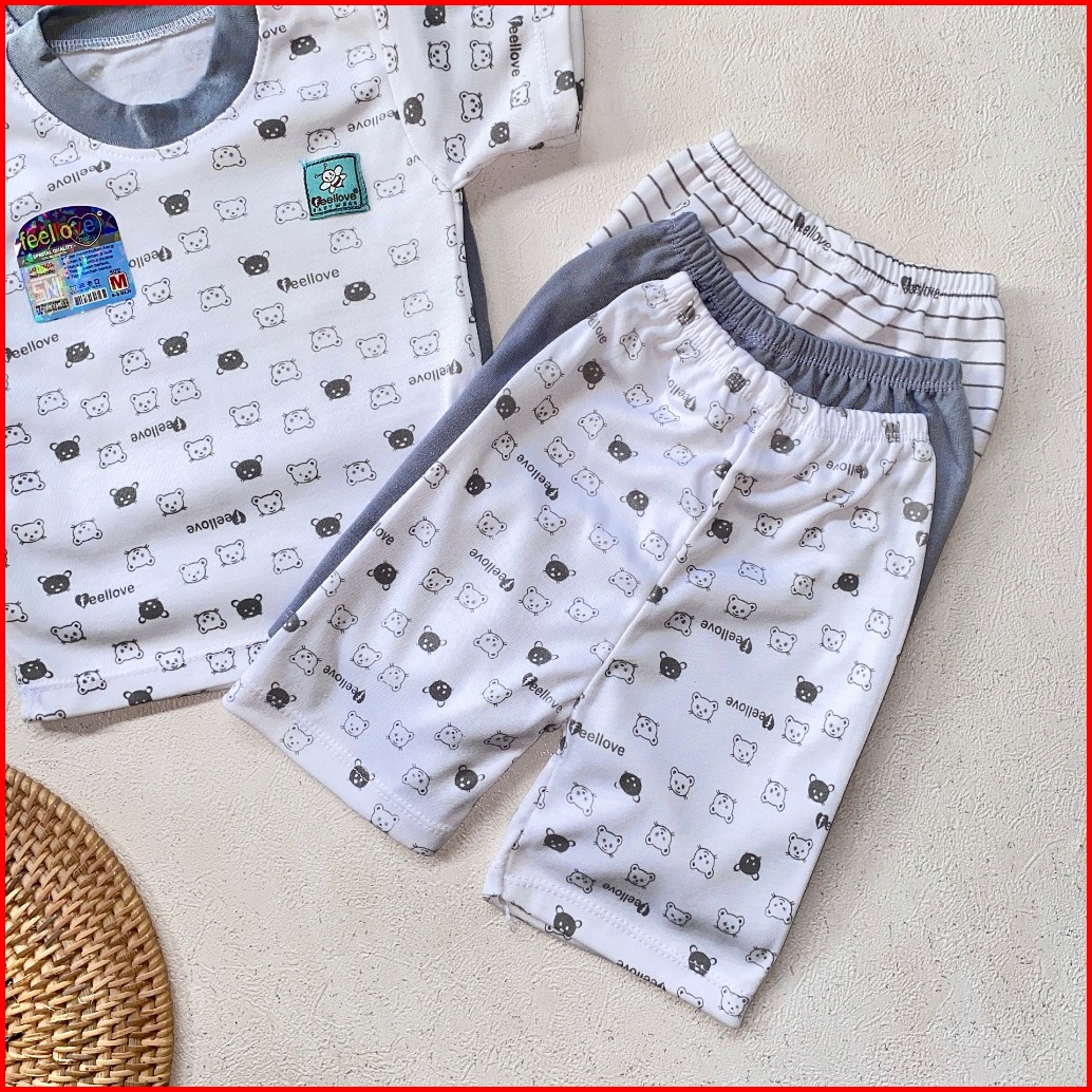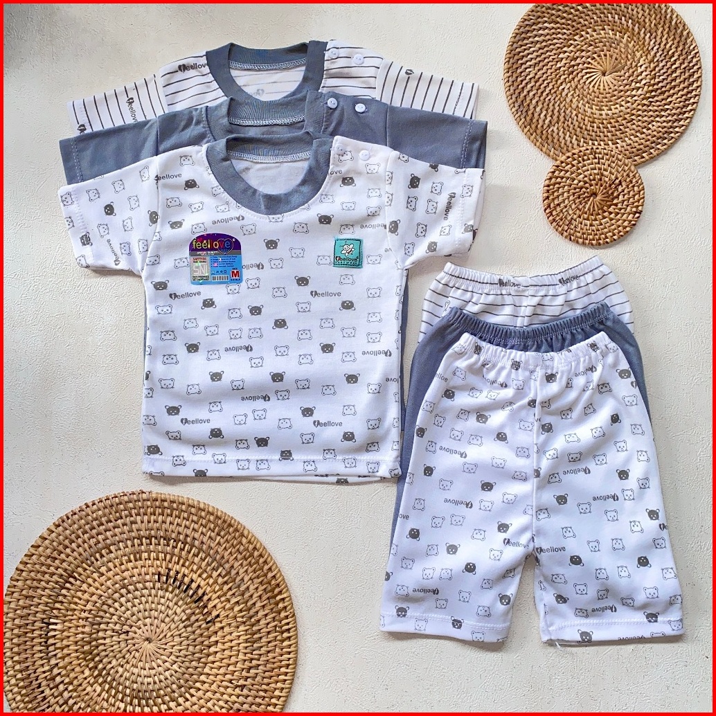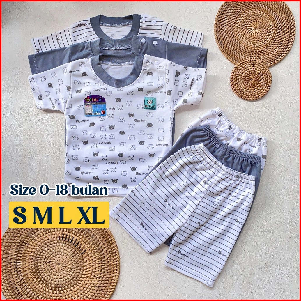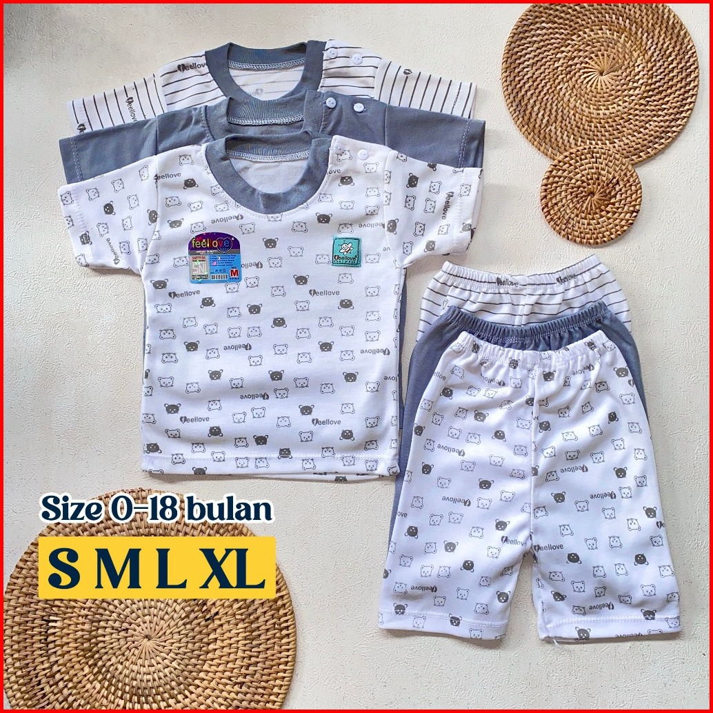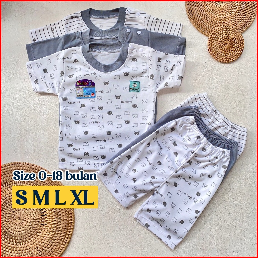 Feellove - 3 Setelan Bayi 3-18 Bulan S M L Xl Piyama Bayi Lengan Pendek Warna Abu Motif Bear