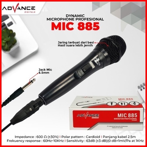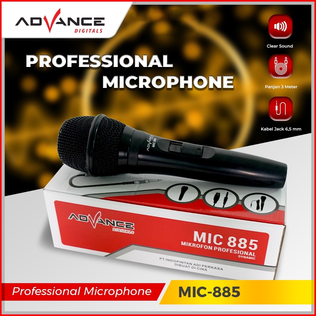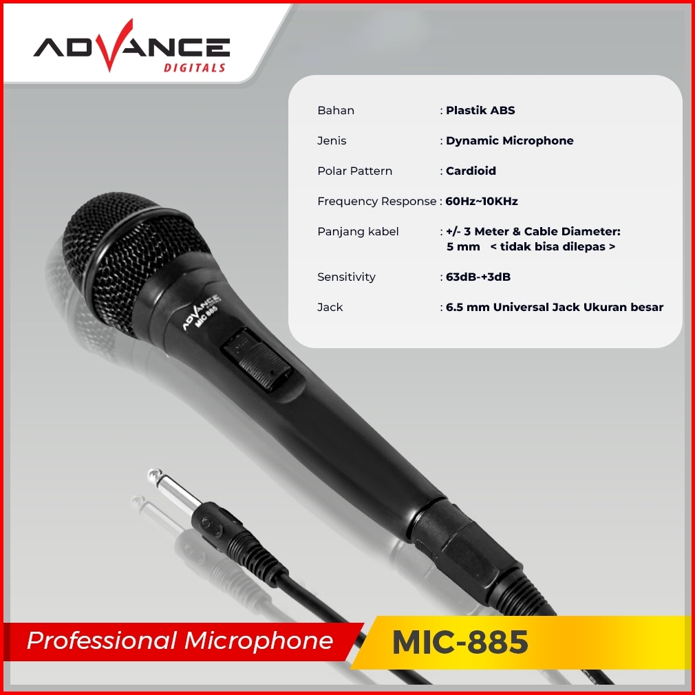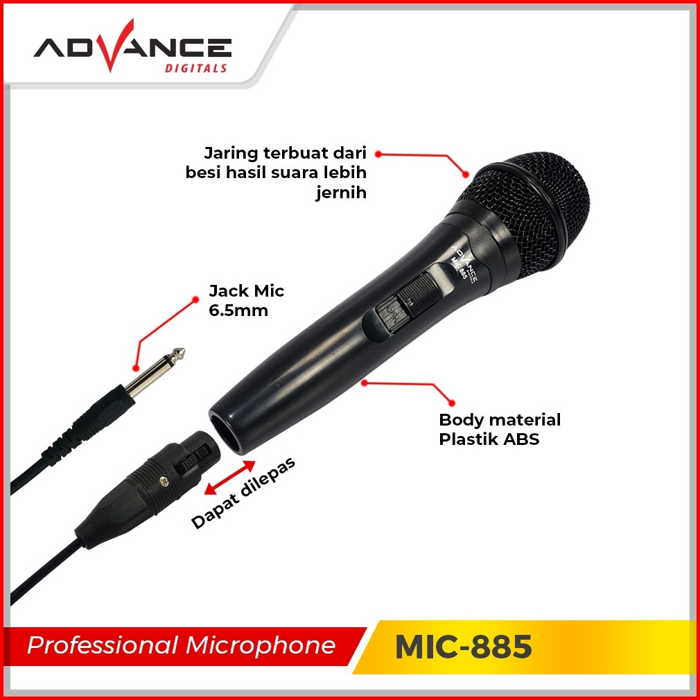 Microphone Mic Kabel Advance Mic-885 Microphone Premium Single Profesional Dynamic Jack Besar 6.5mm