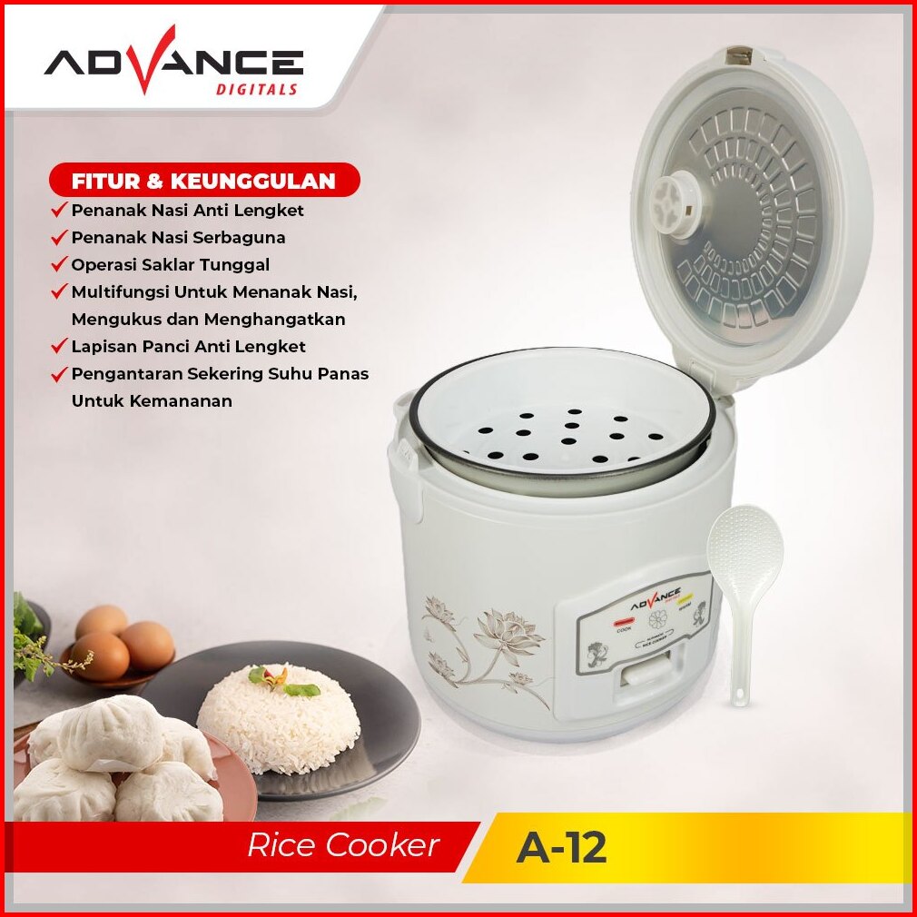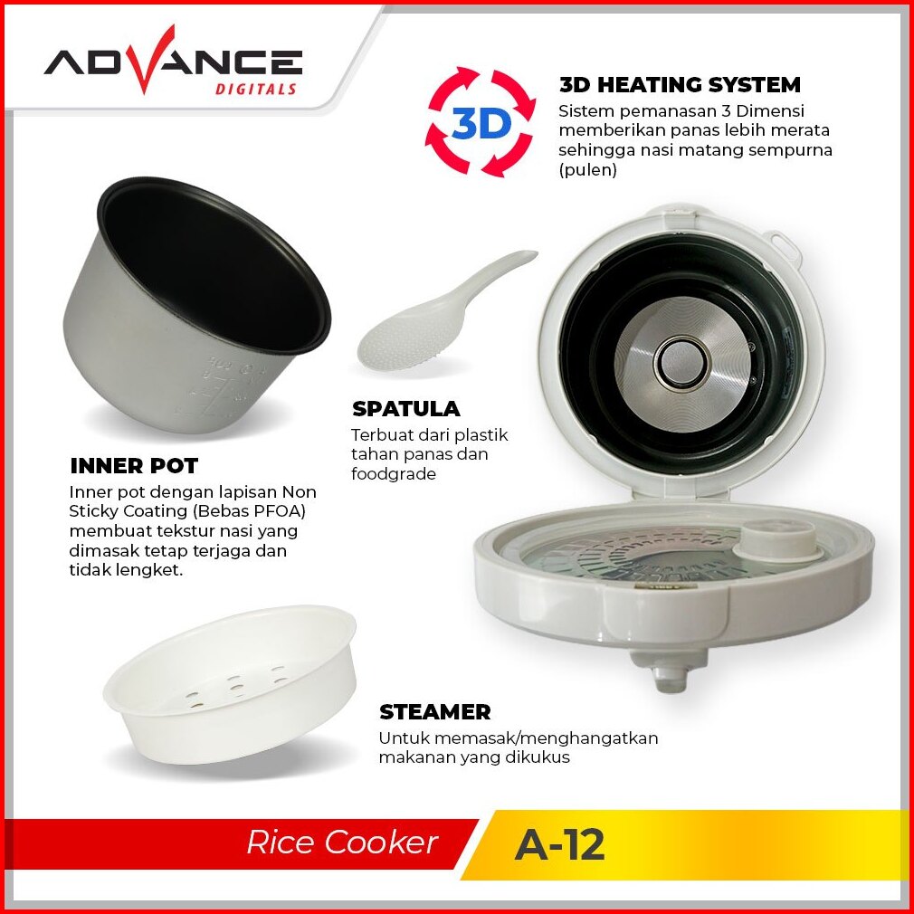 Rice Cooker Mini Advance A12 1.2 Liter Penanak Nasi Serbaguna 3 In 1 Anti Lengket Magic Com Garansi 1 Tahun