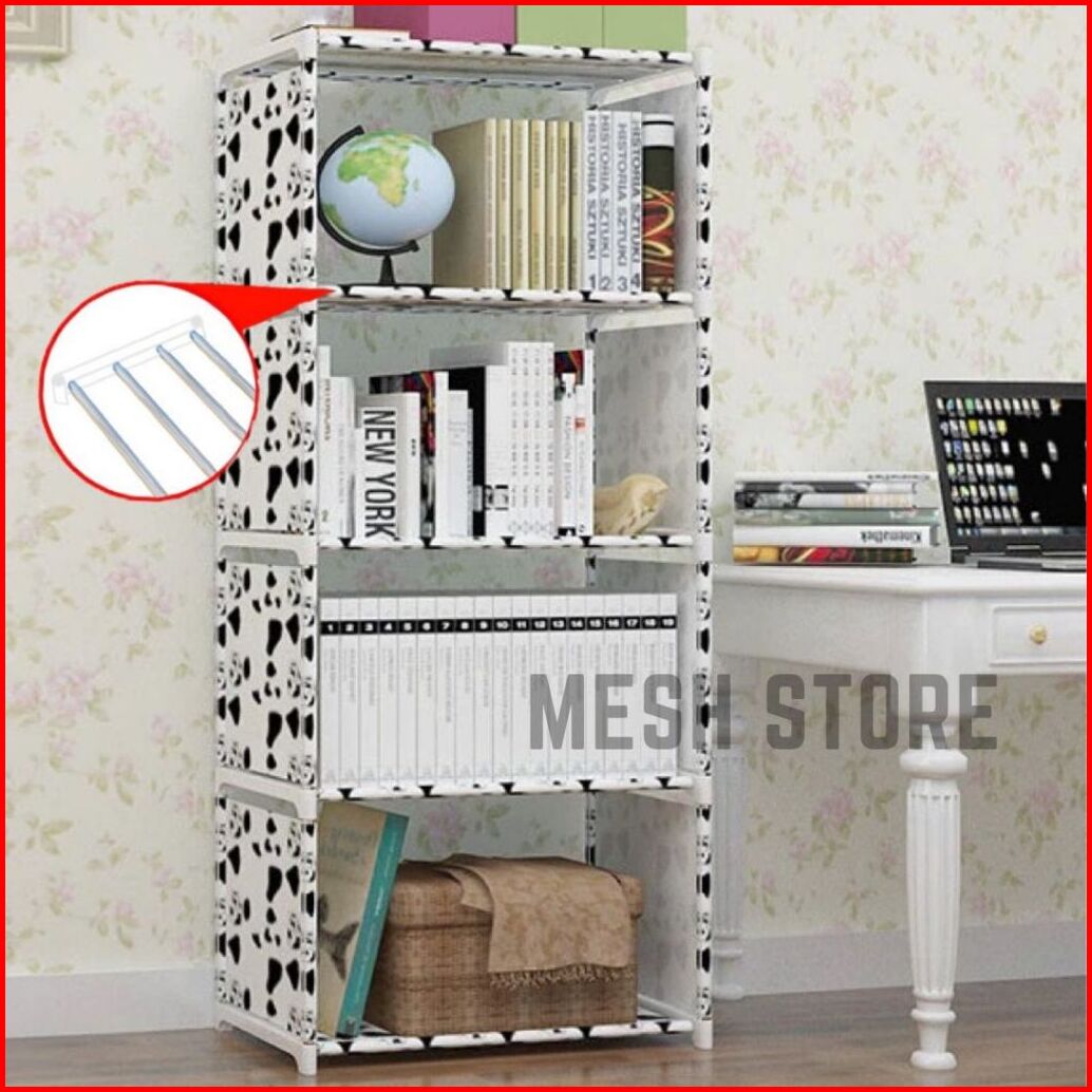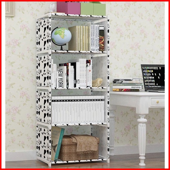 Rak Buku Portable Serbaguna 5 Susun 4 Ruang Rak Buku Multifungsi - Warna Black White