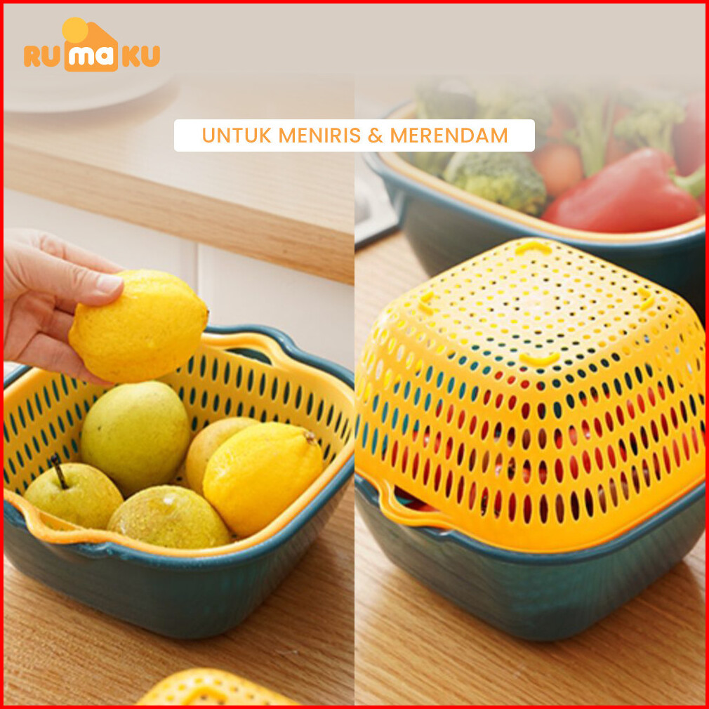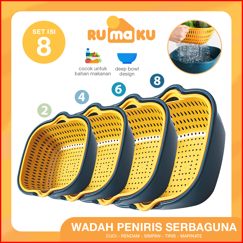 Rumaku Keranjang Baskom Peniris Cuci Sayur Buah Saringan Serbaguna Keranjang Pengering Sayuran Buah Serbaguna 8 In 1
