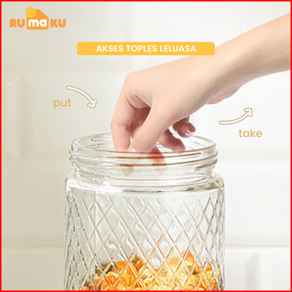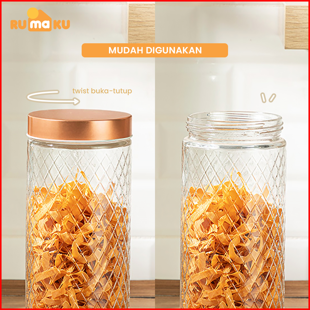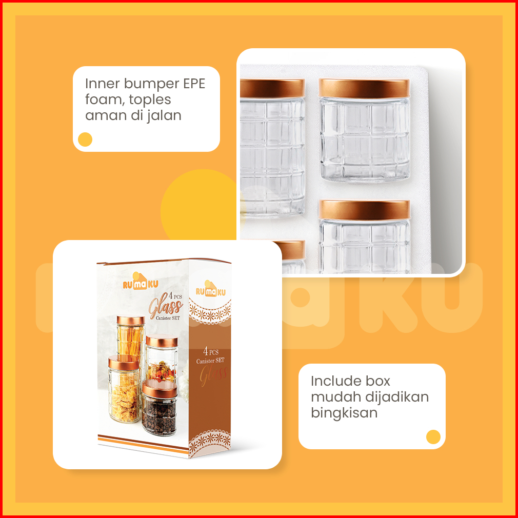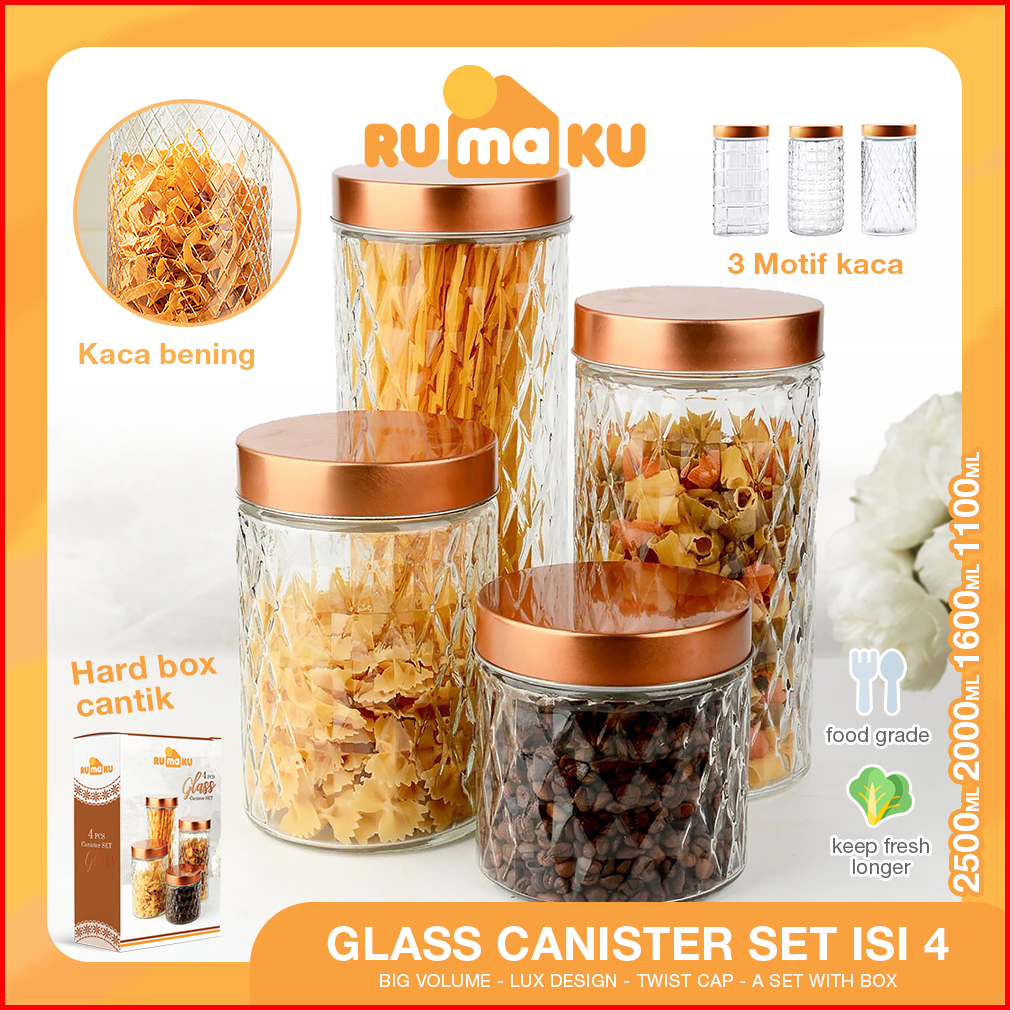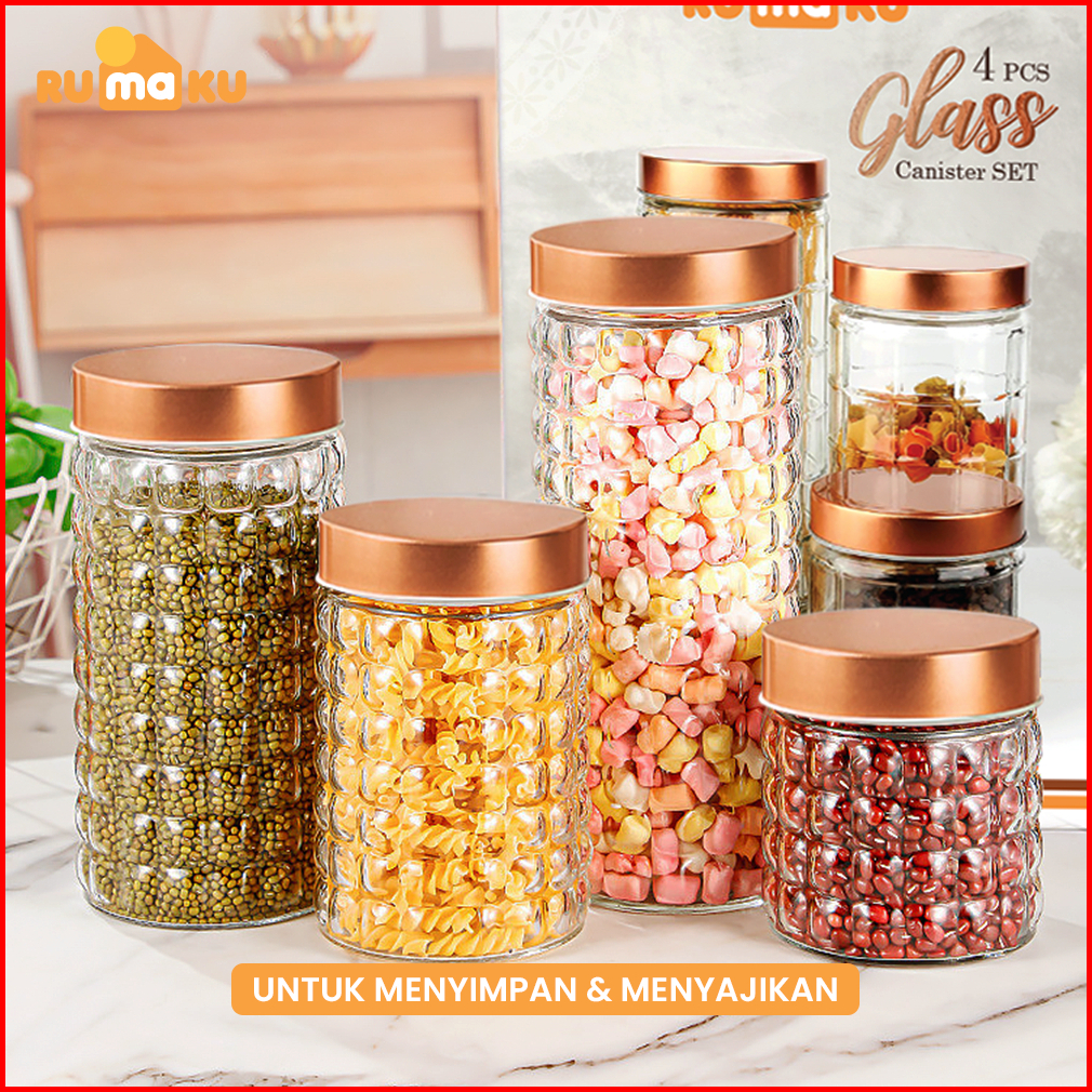 Rumaku Toples Kue Lebaran Premium Toples Kaca Set 4 Pcs Tutup Rose Toples Kue Kering Kerupuk Kedap Udara