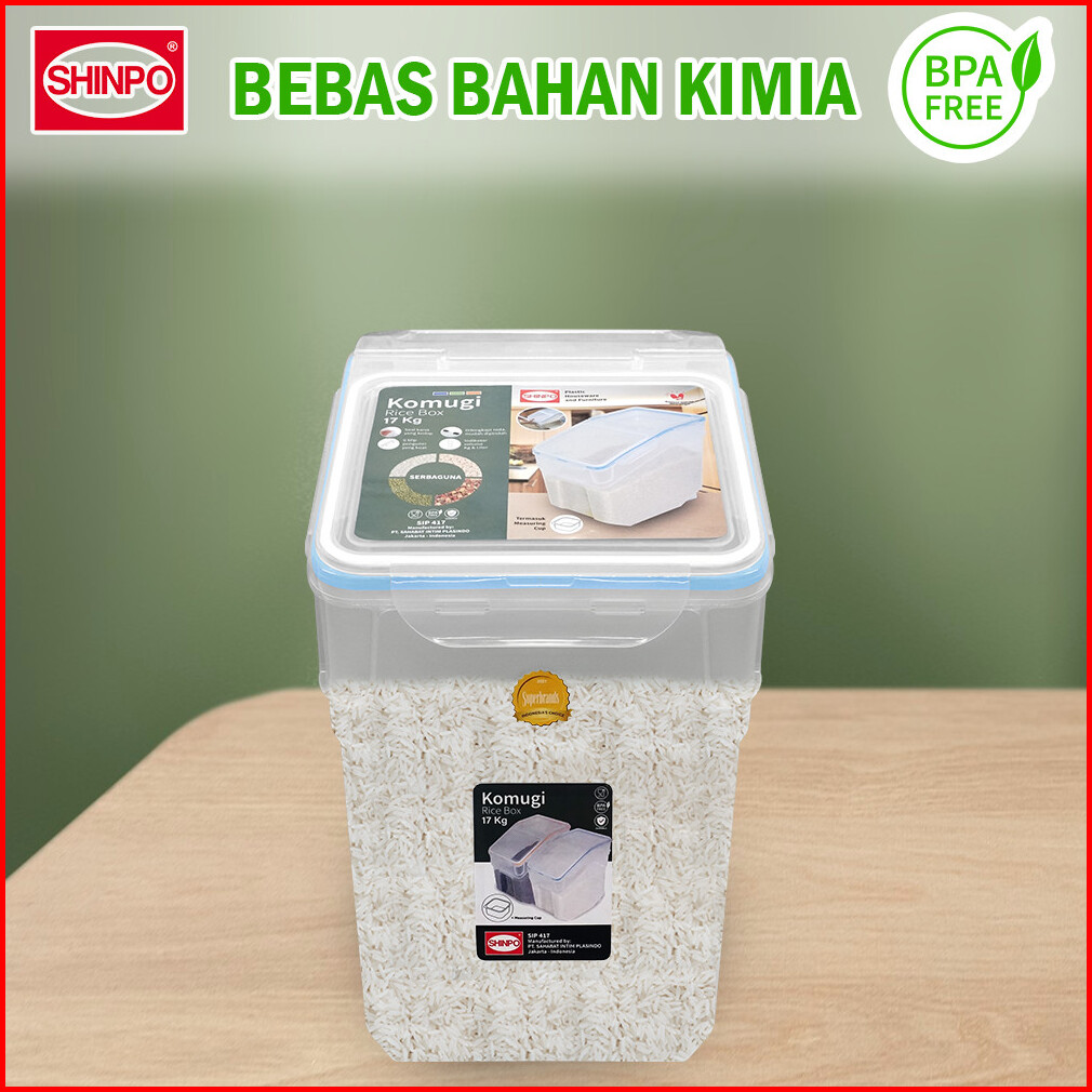 Shinpo Komugi Tempat Penyimpanan Beras 17 Kg Dengan Roda Rice Box Bpa Free Spo-sip-417