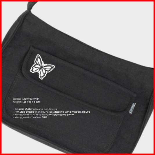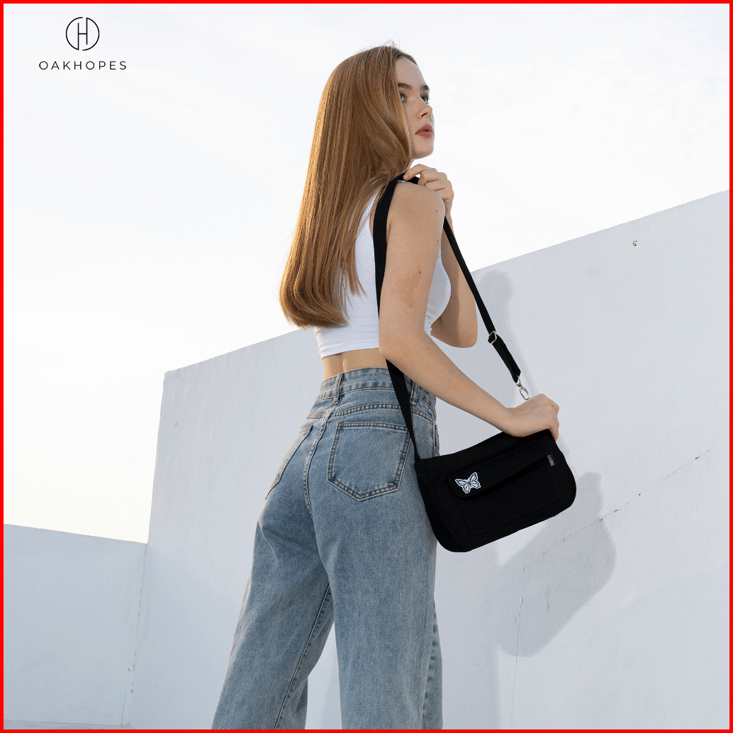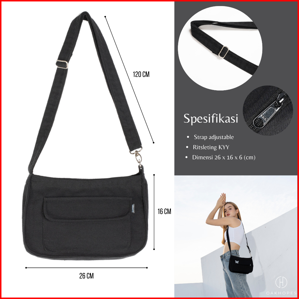 Oakhopes - Tas Selempang Kanvas - Shoulder Bag Sling Bag Wanita - Aiko Bag Hitam