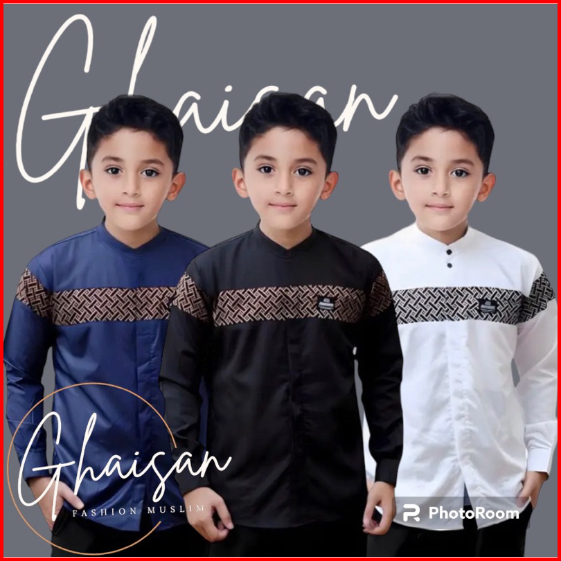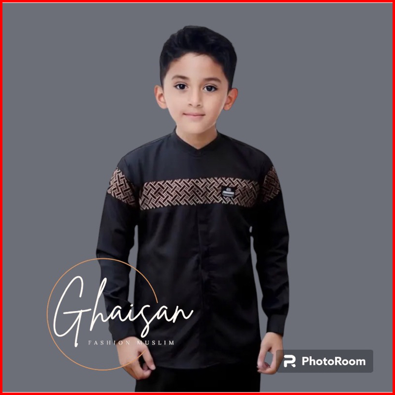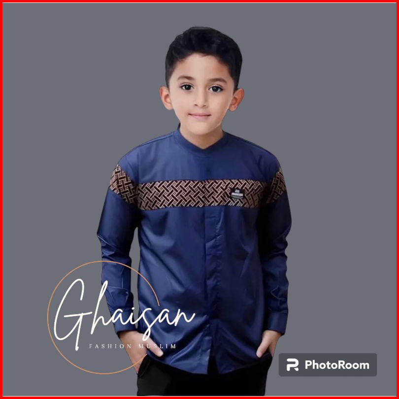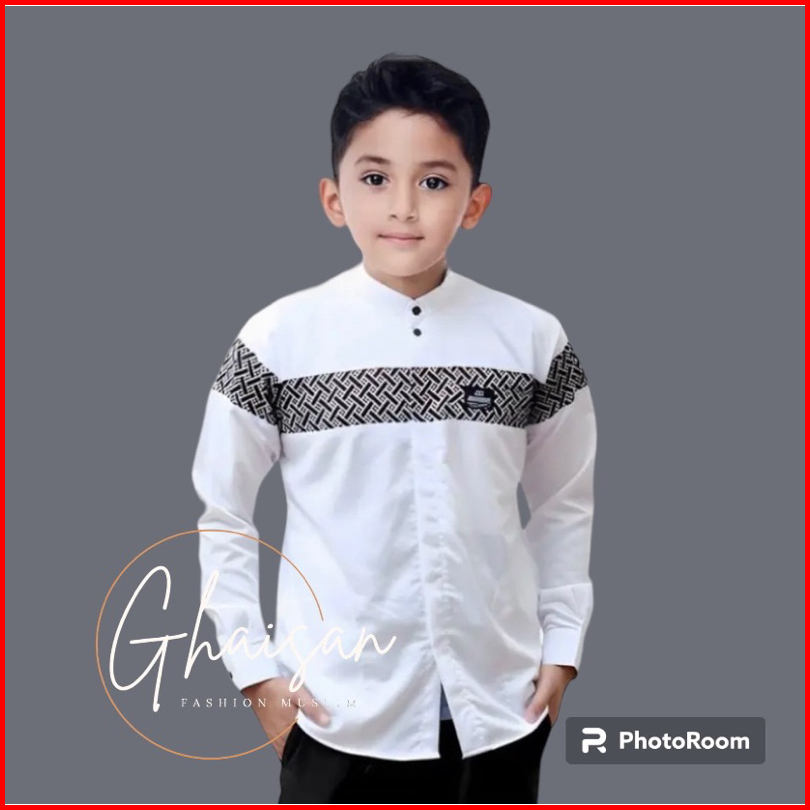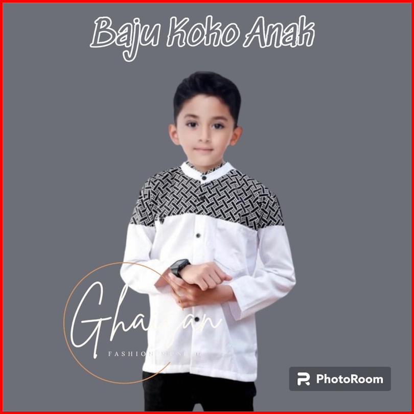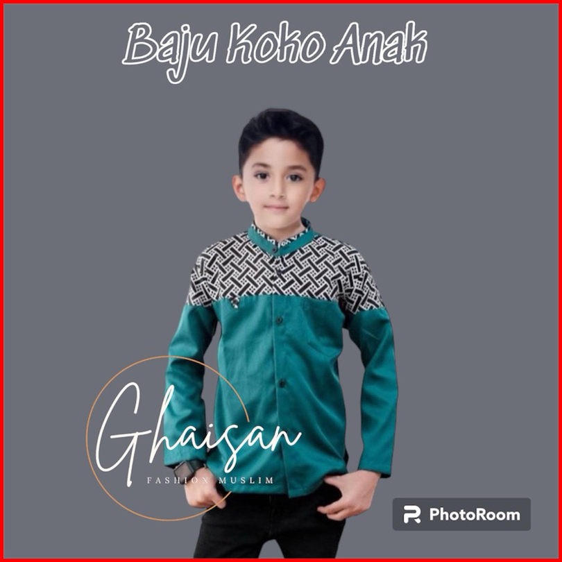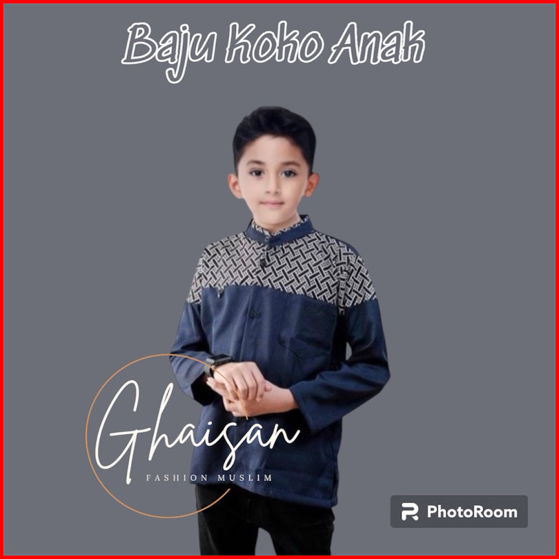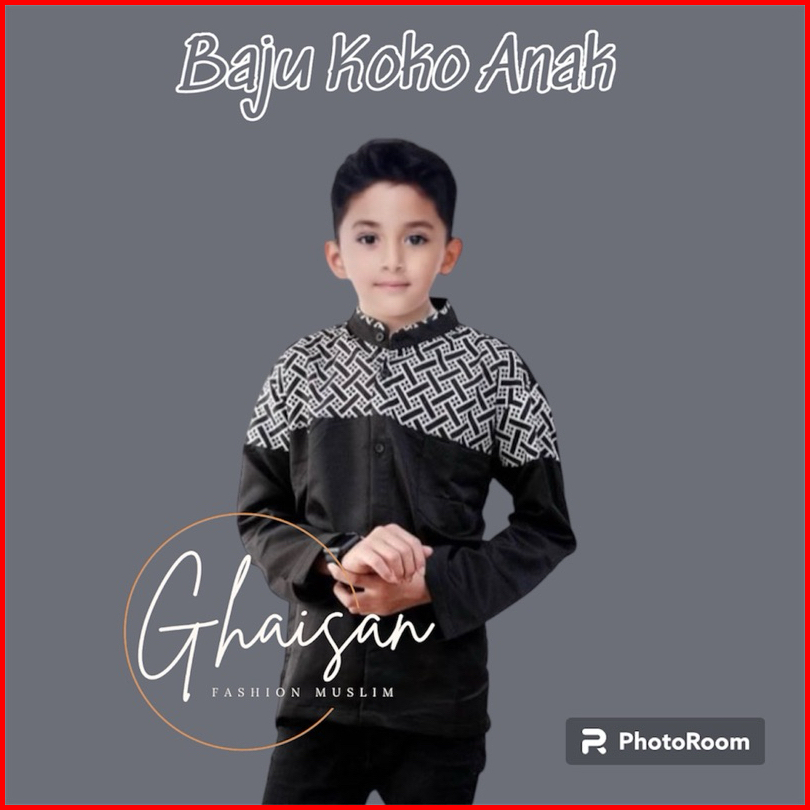 Baju Koko Anak Lengan Panjang Umur 9-15th Motif Kobata