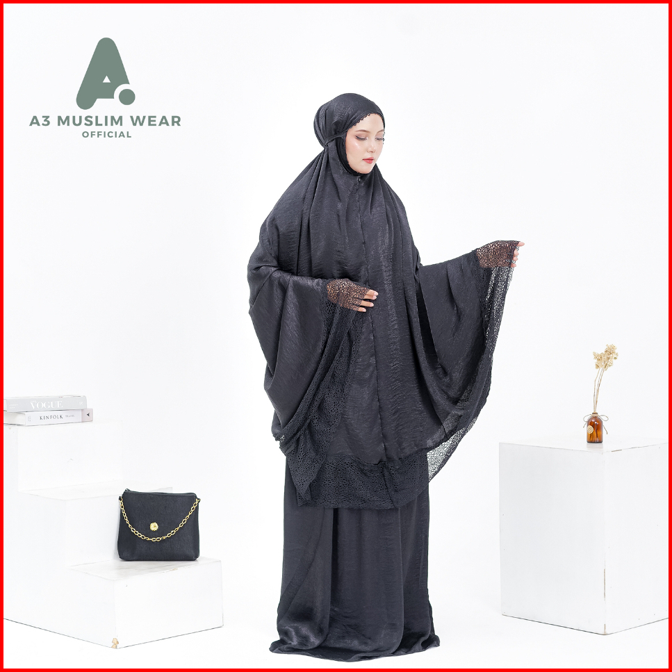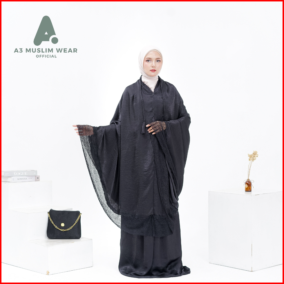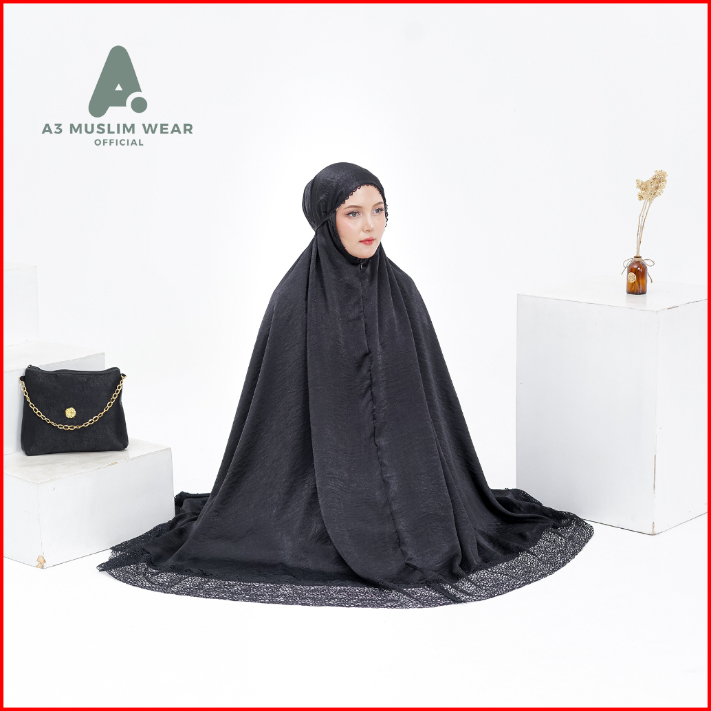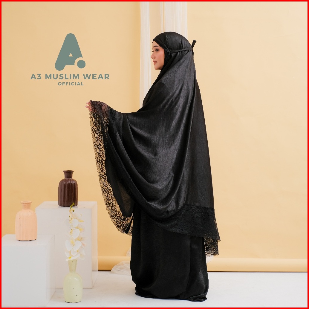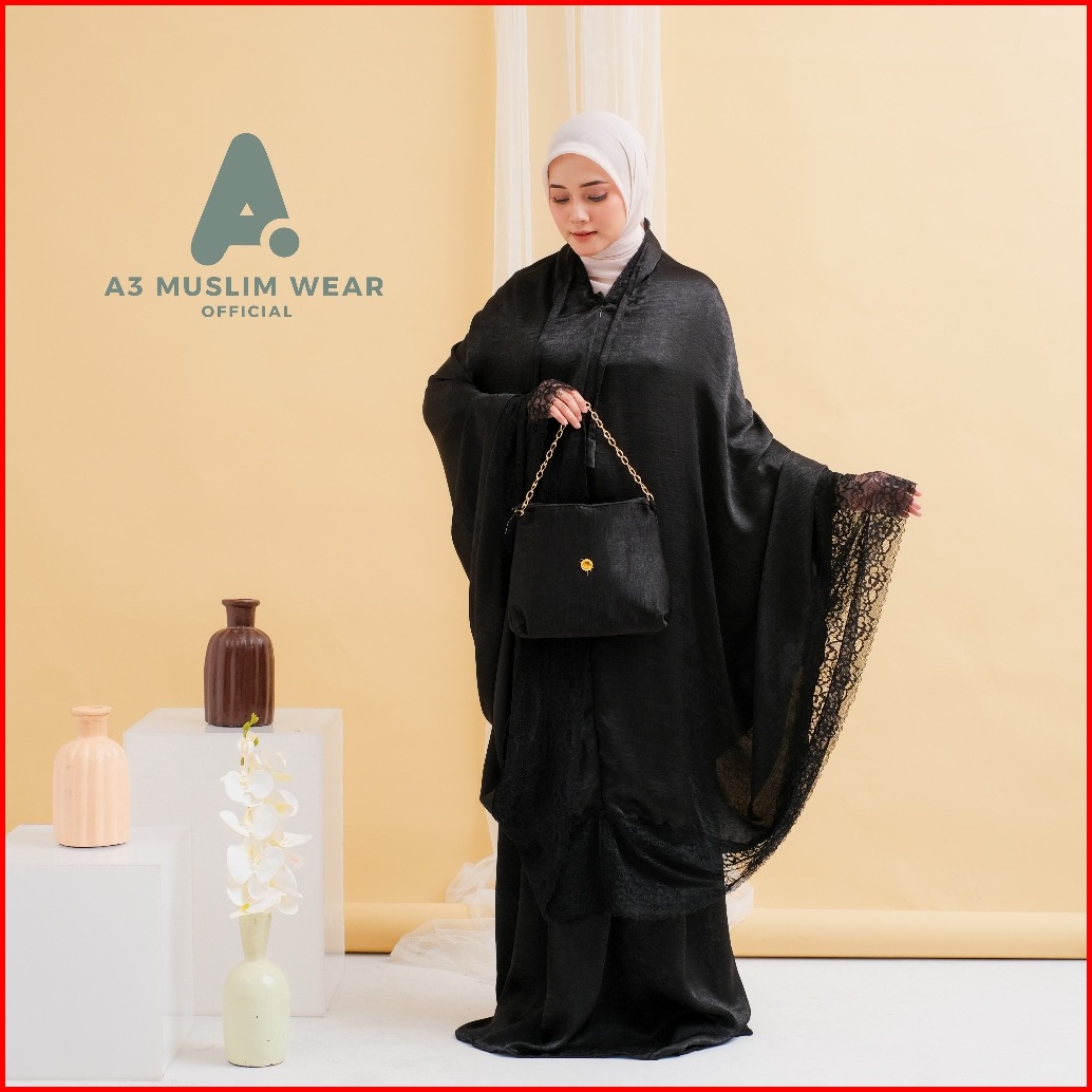 A3 Muslimwear - Mukena Dewasa Santorini Silk Premium 2in1 Renda Jumbo Mewah Terbaru Free Tasbih