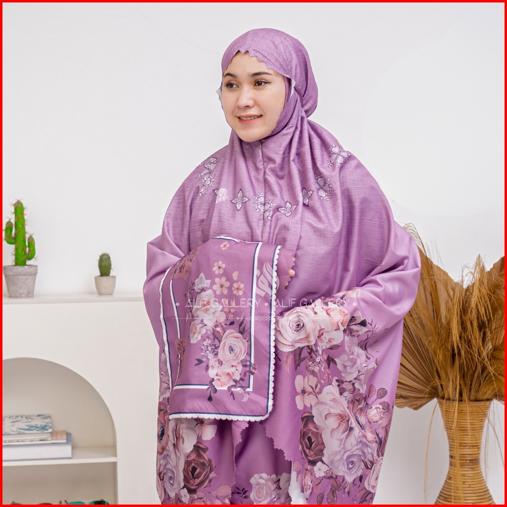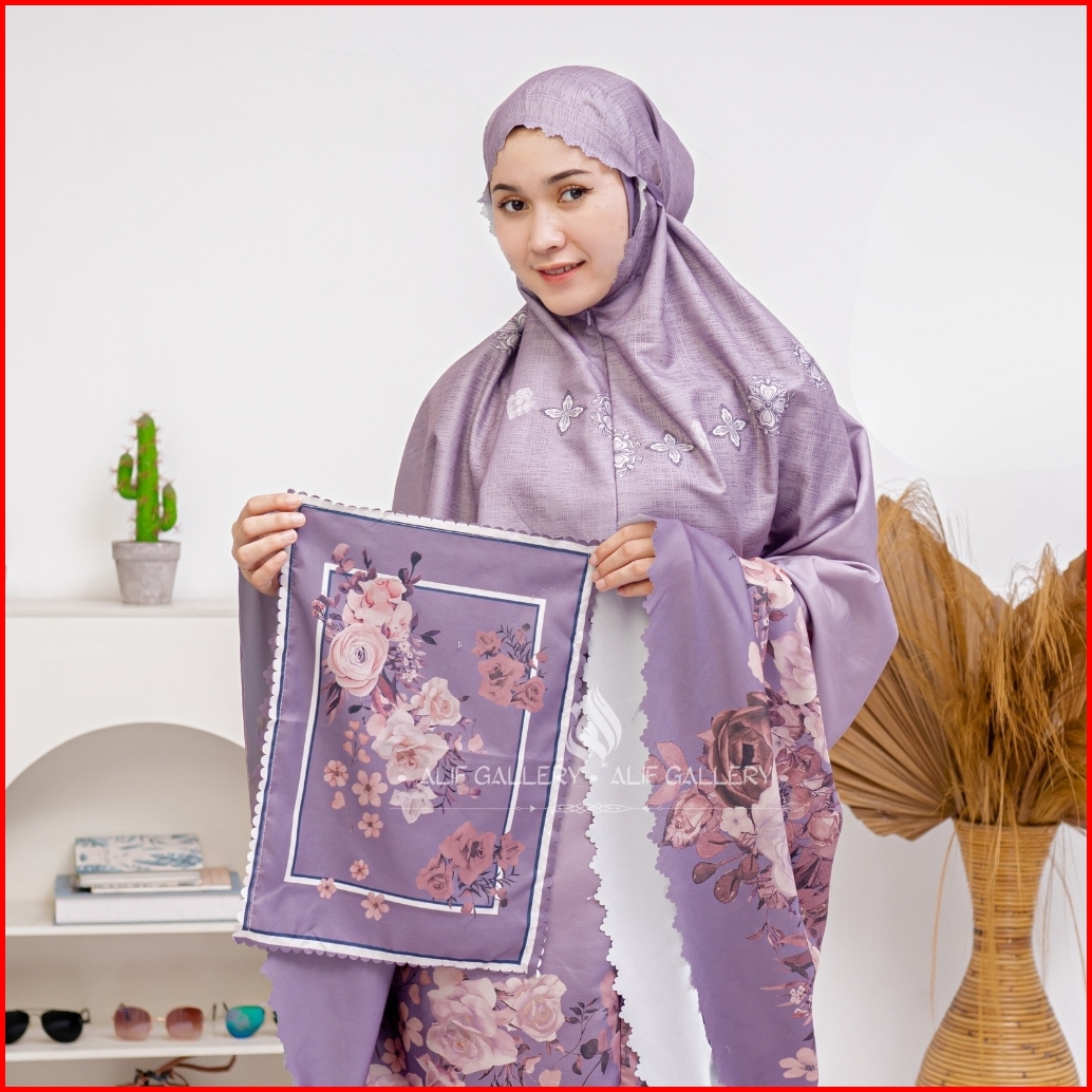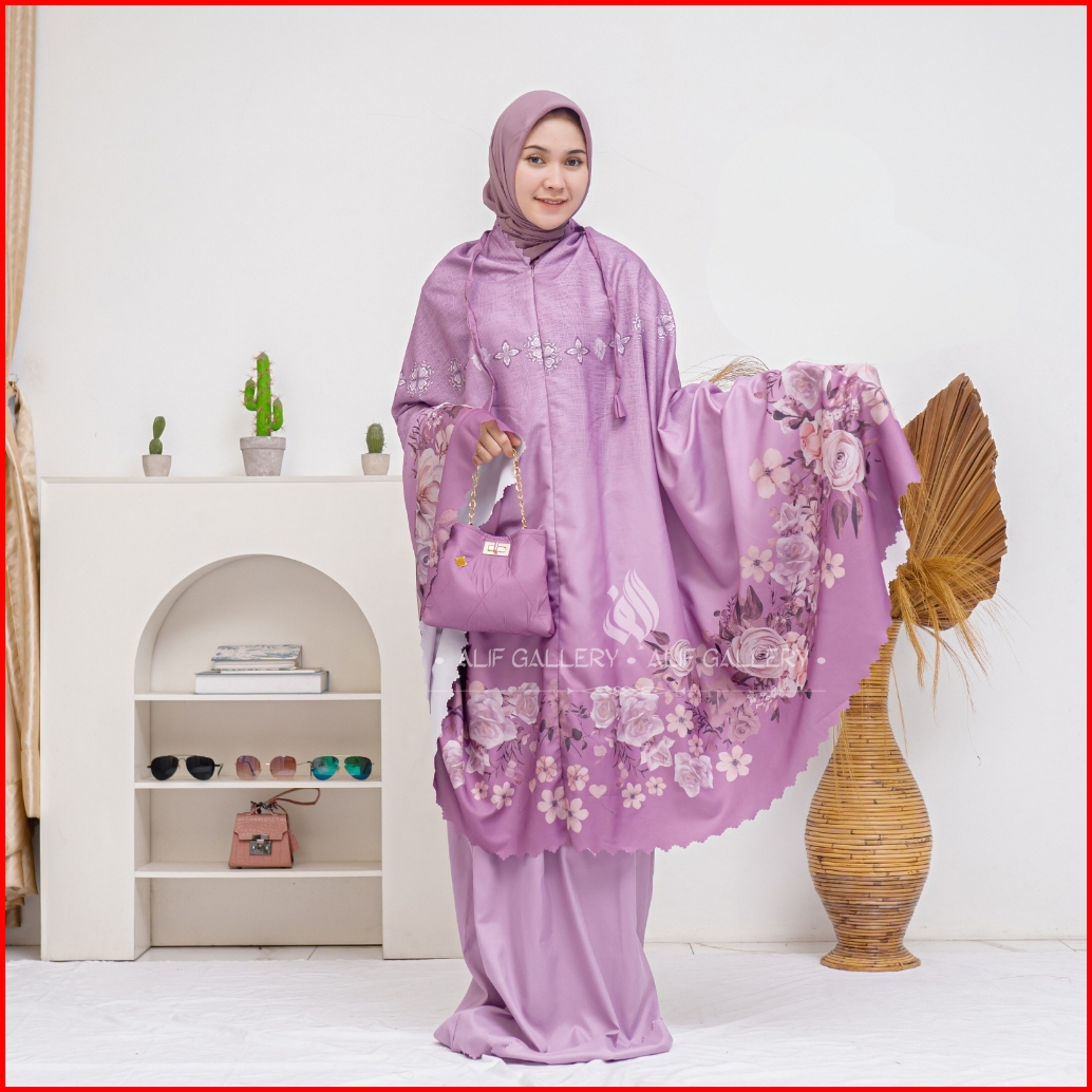 Alif Gallery - Mukena Dewasa Jumbo Premium 2in1 Motif Print Mewah Terbaru Free Sejadah Medina Series