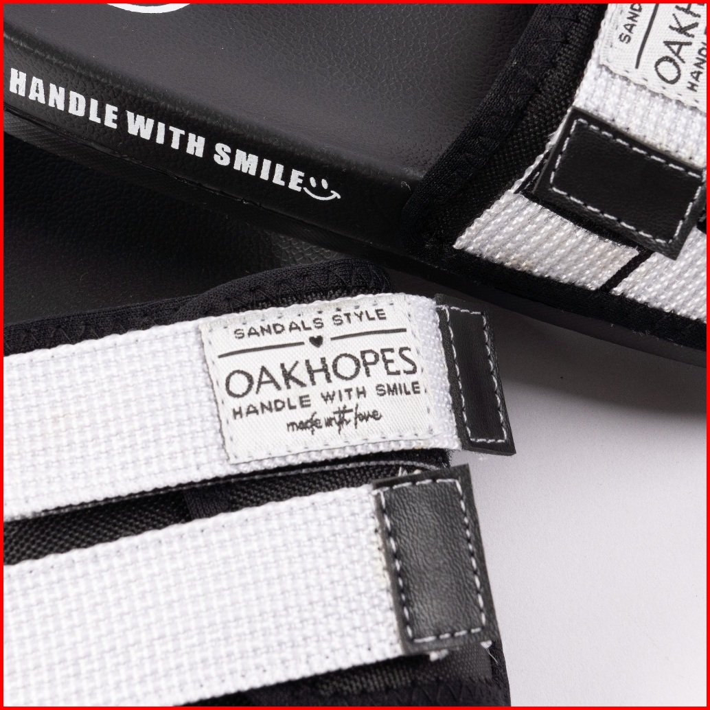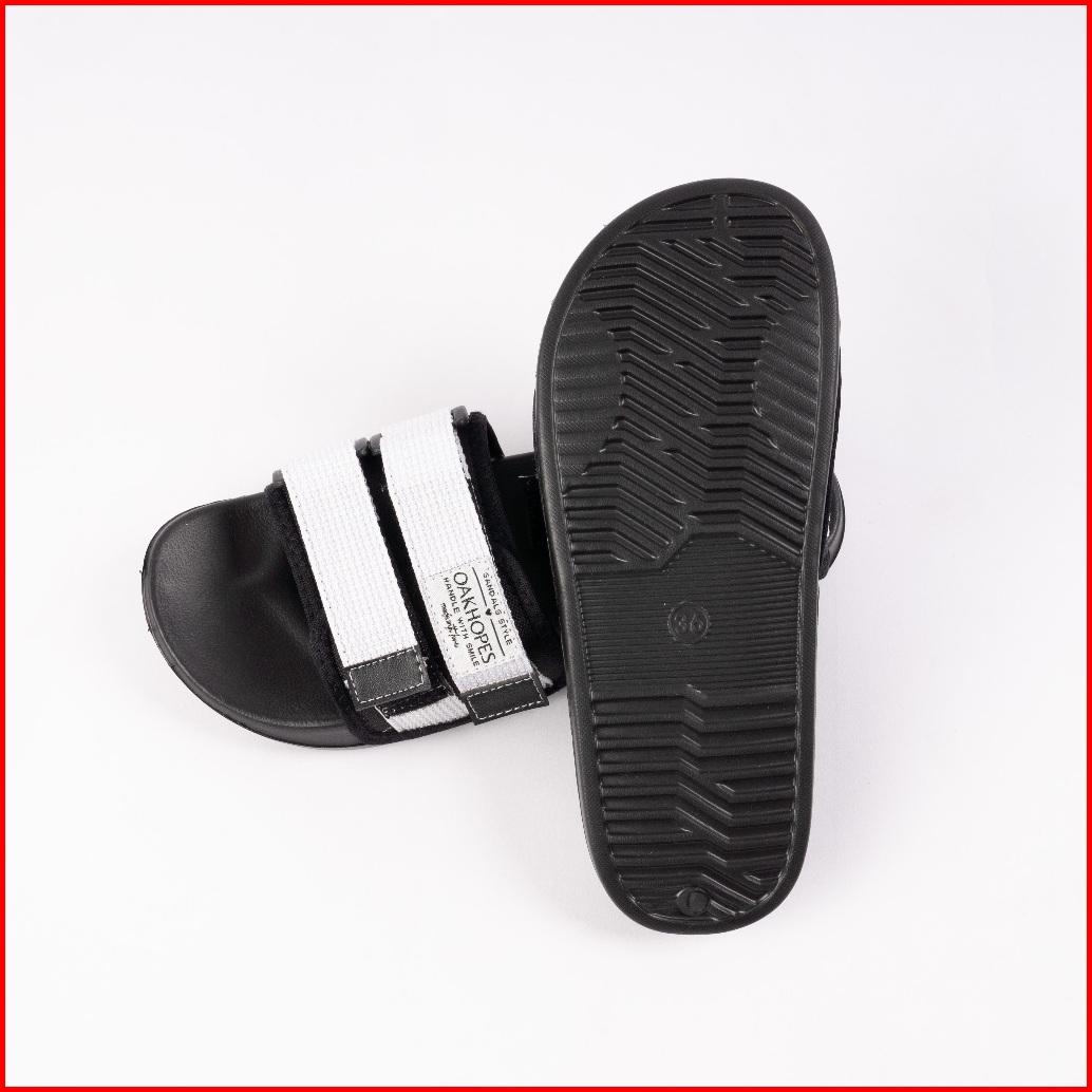 Oakhopes - Yuka Black White Sandal Pria Wanita Sendal Slop Slipper Anti Licin