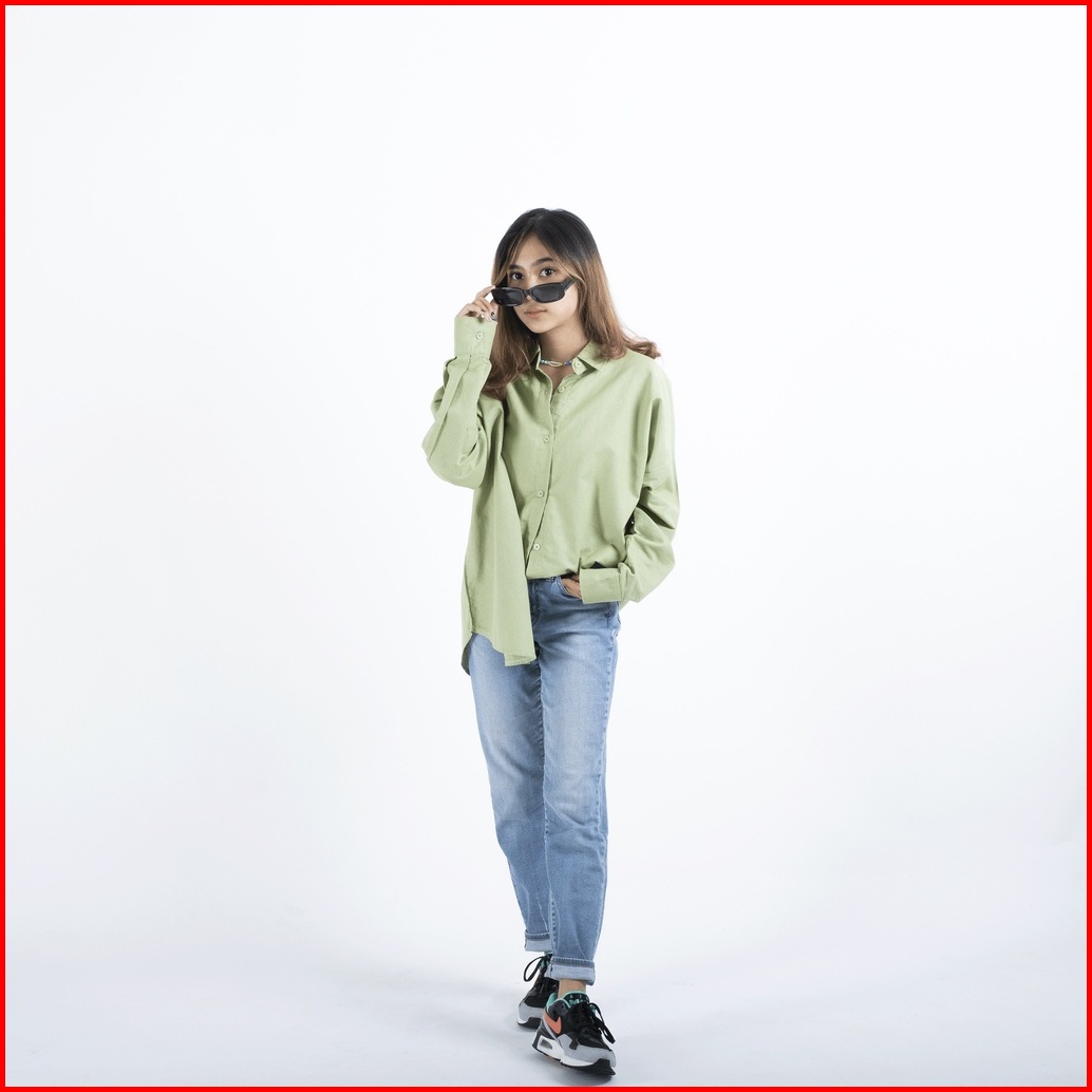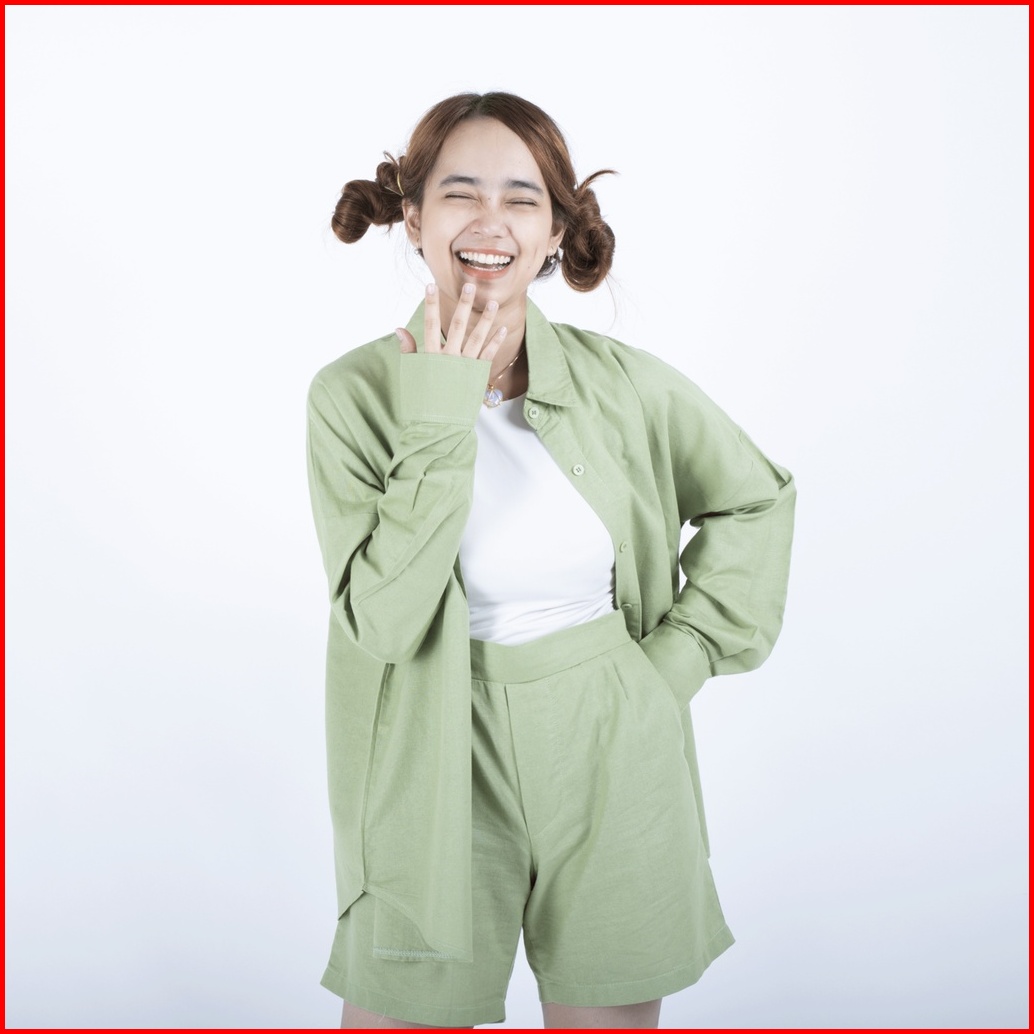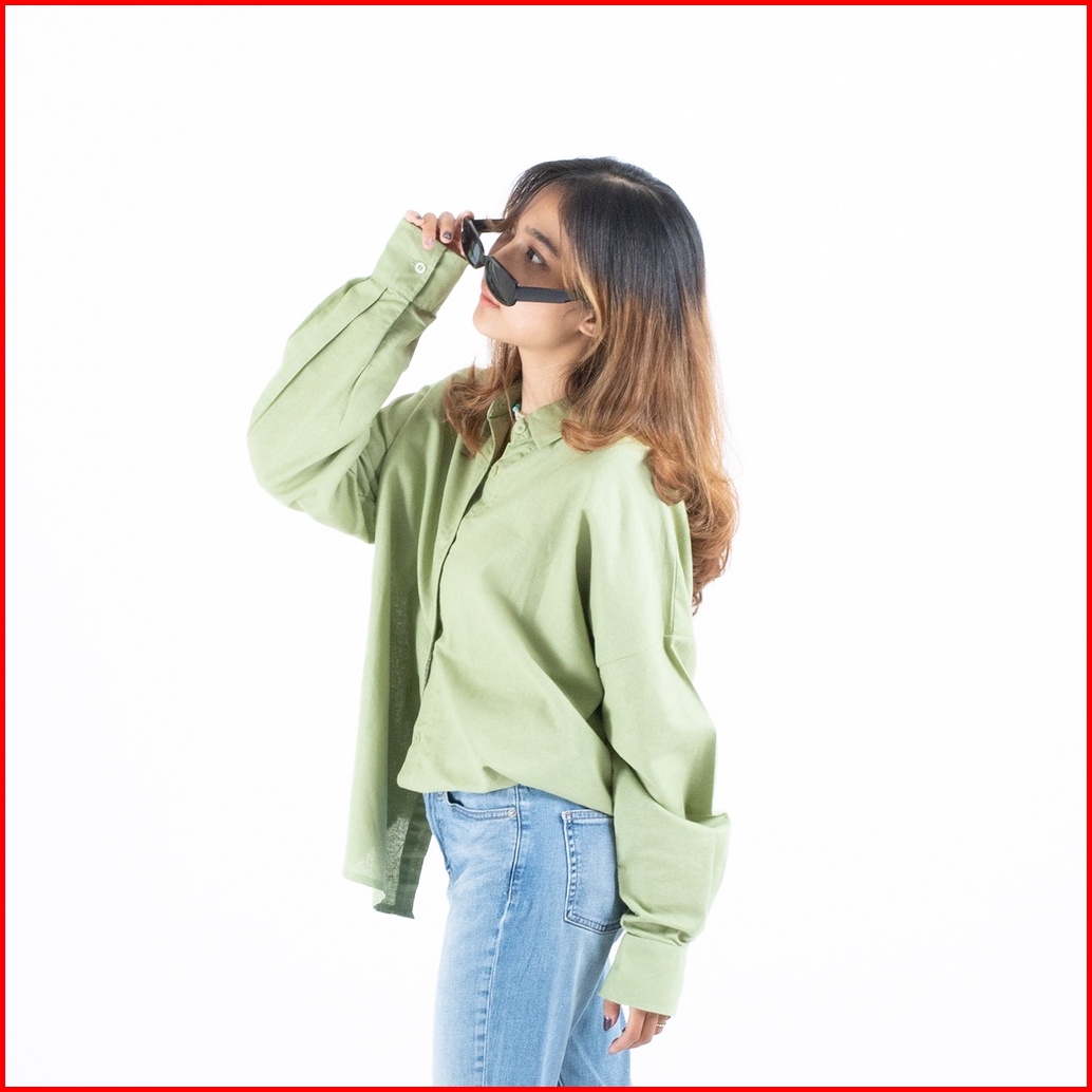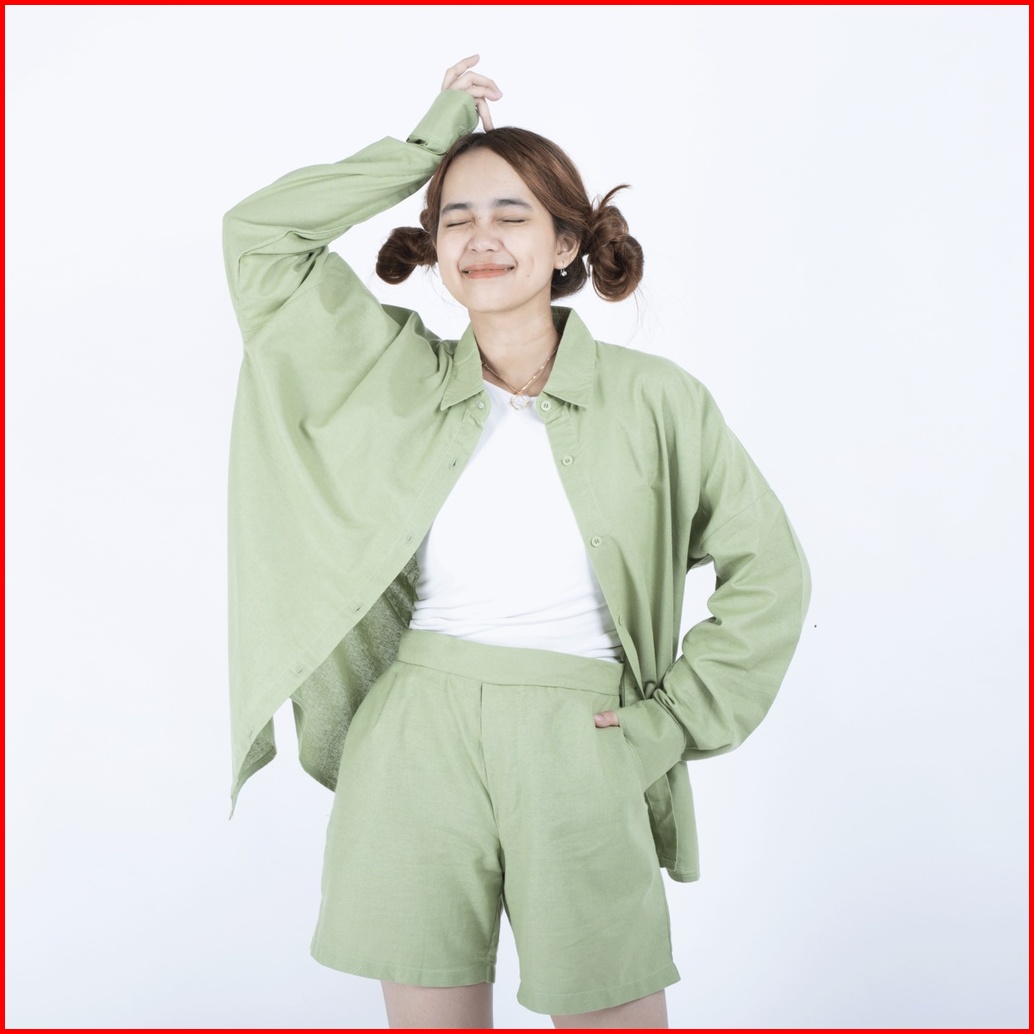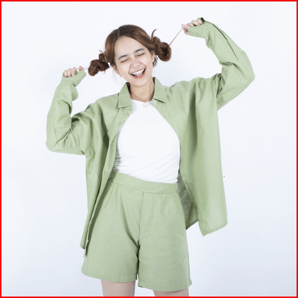 Oakhopes - Kemeja Oversize Linen Wanita - Green