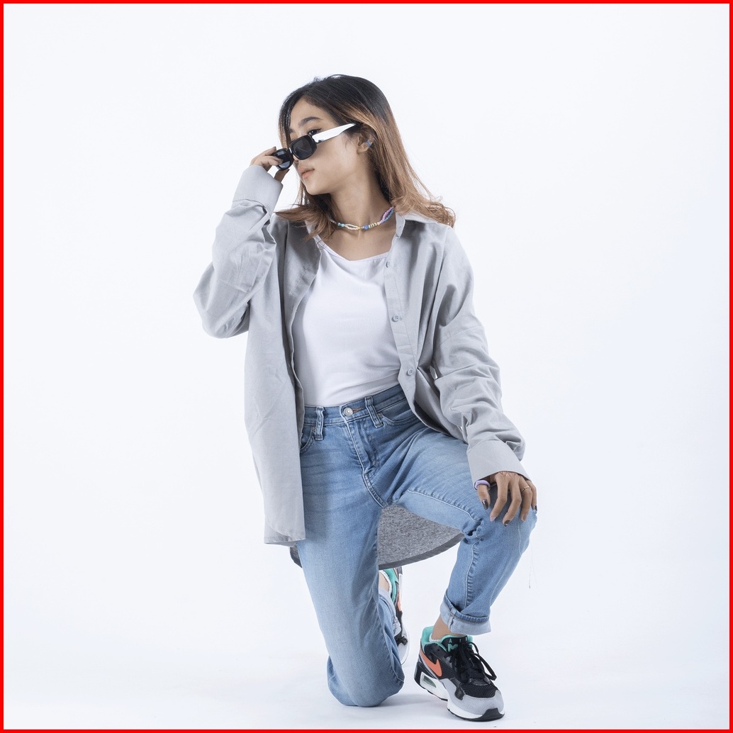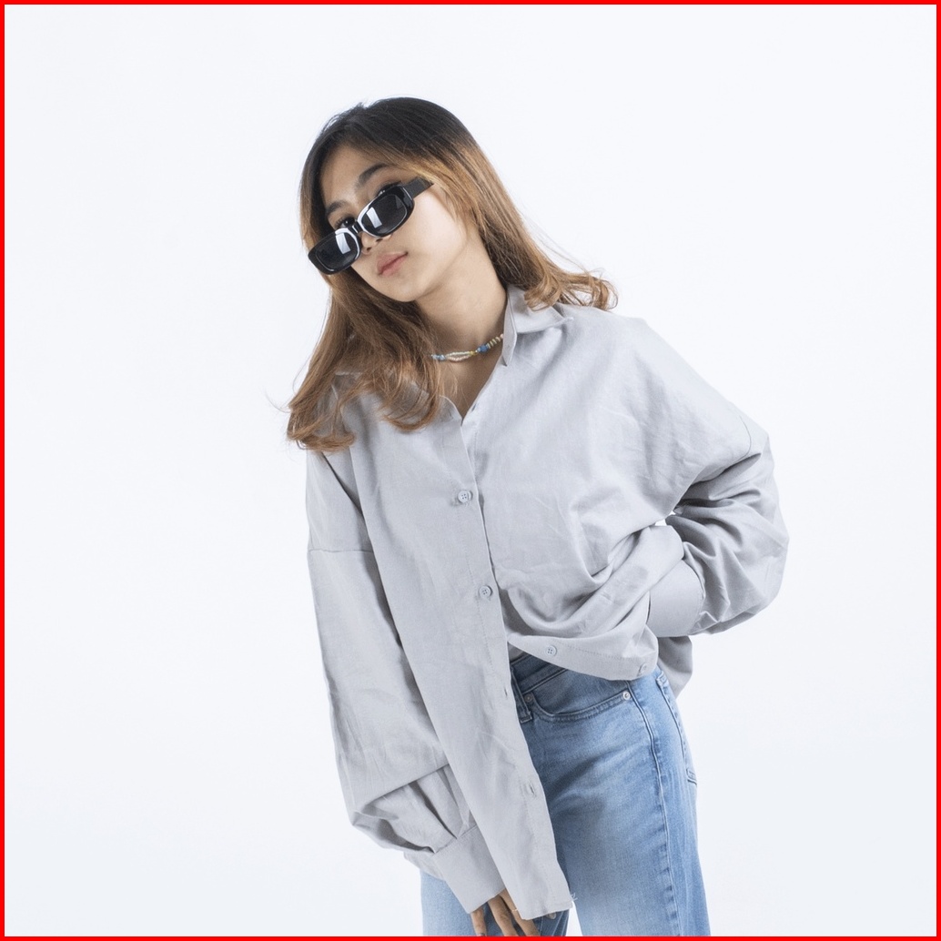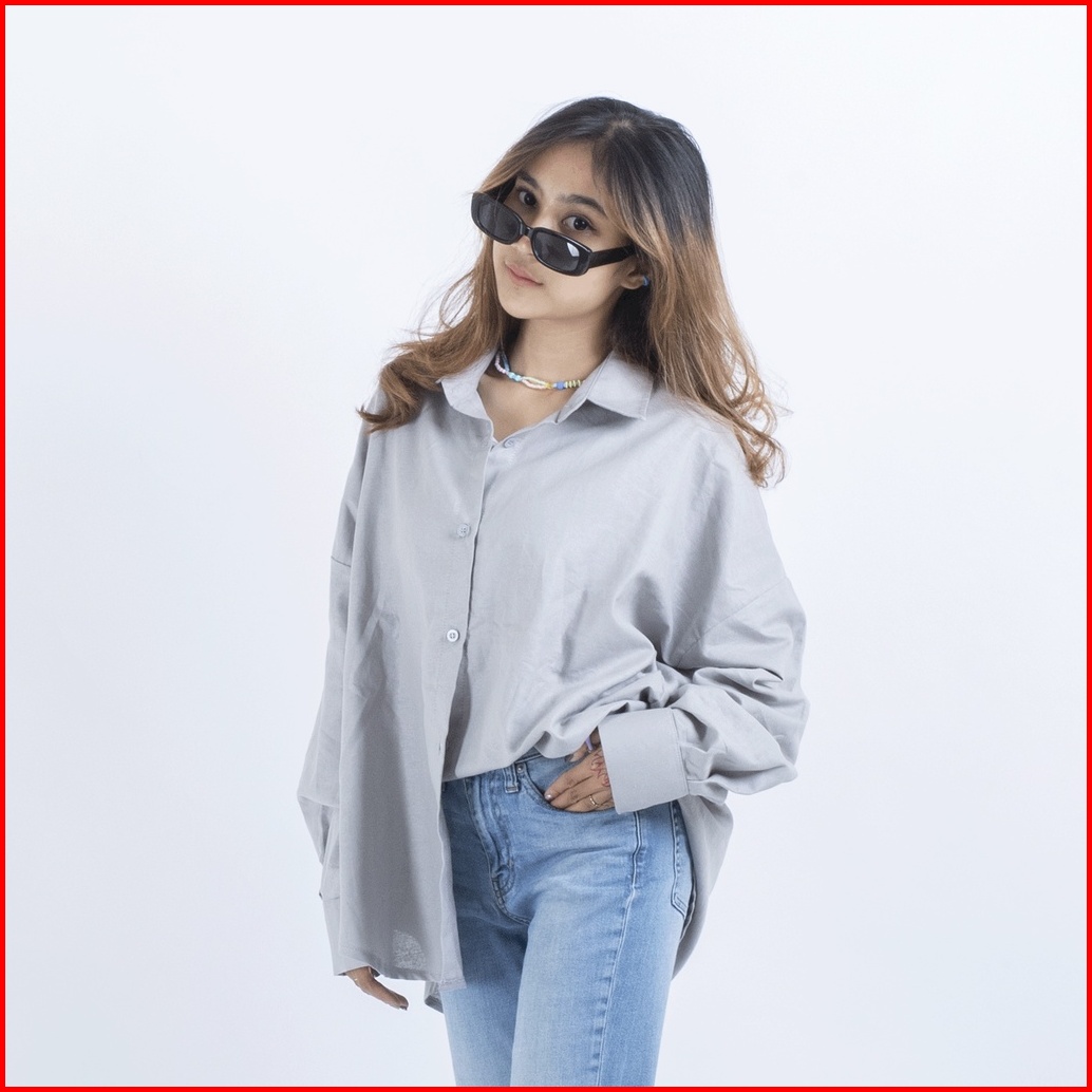 Oakhopes - Kemeja Oversize Linen Wanita - Grey