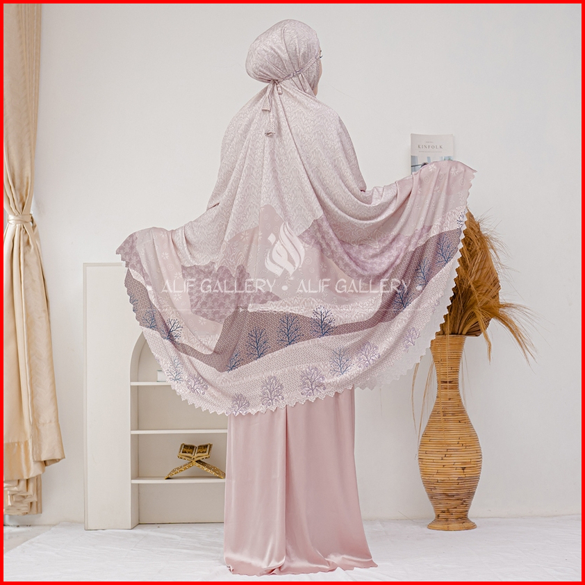 Alif Gallery - Mukena Silk Premium 2in1 Travelling Lasercut Jumbo