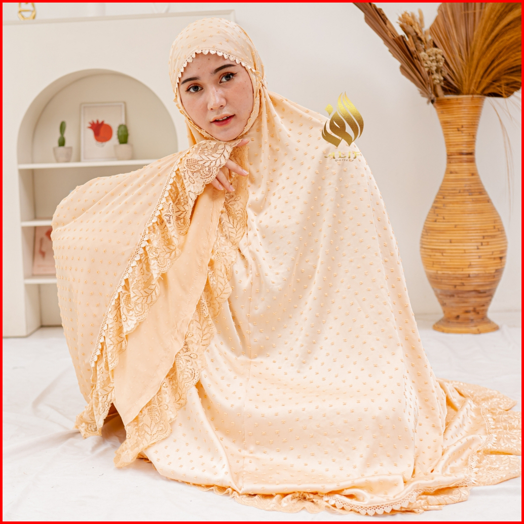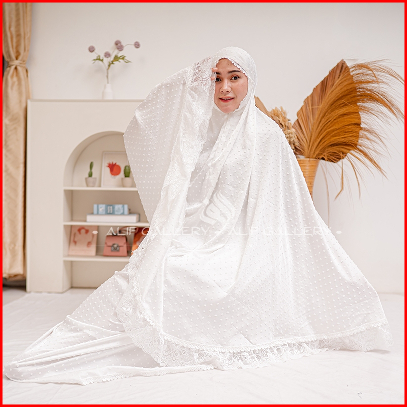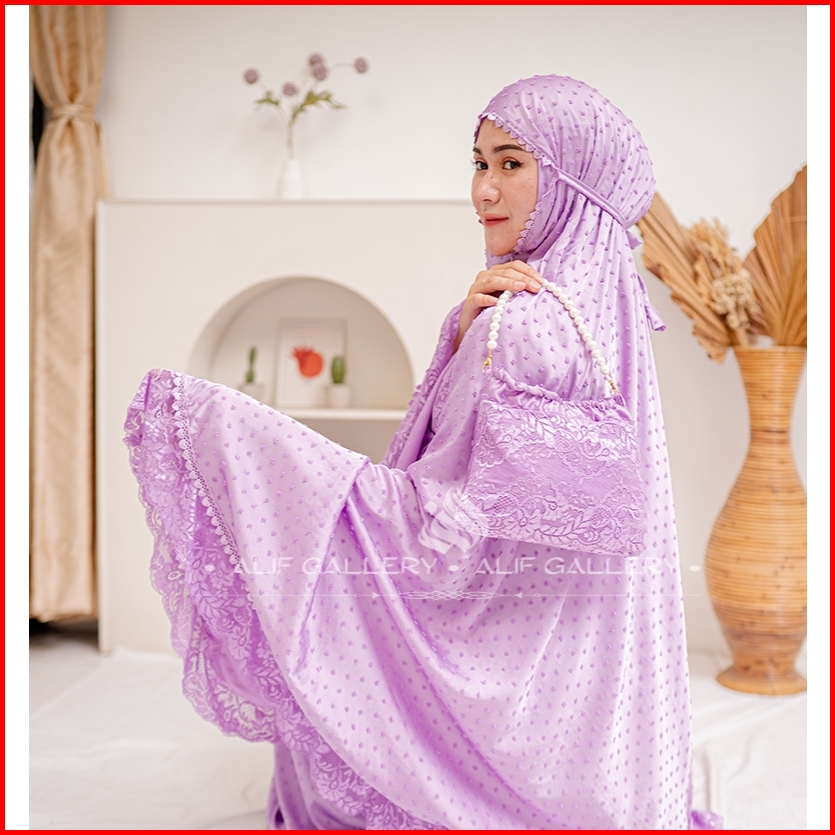 Alif Gallery - Mukena Renda Mewah Jumbo Ori Sutra Armani Silk Uragiri Mewah Premium Tazkiya Series