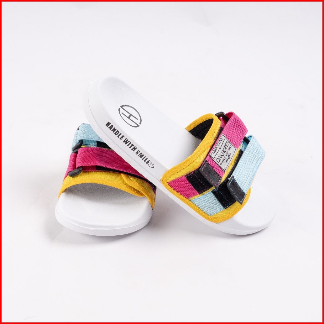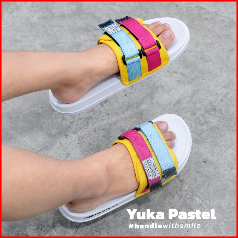 Oakhopes - Yuka White Pastel Sandal Wanita Santai Sendal Slop Slipper Anti Licin