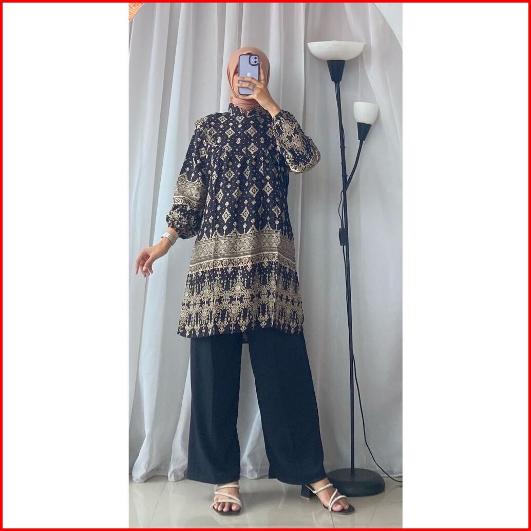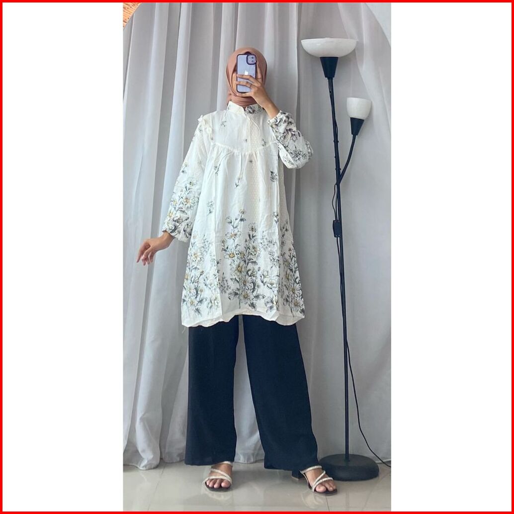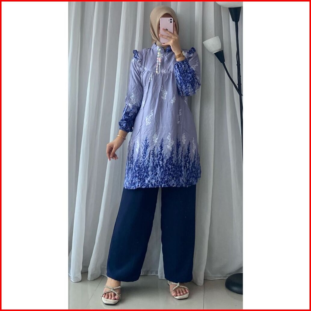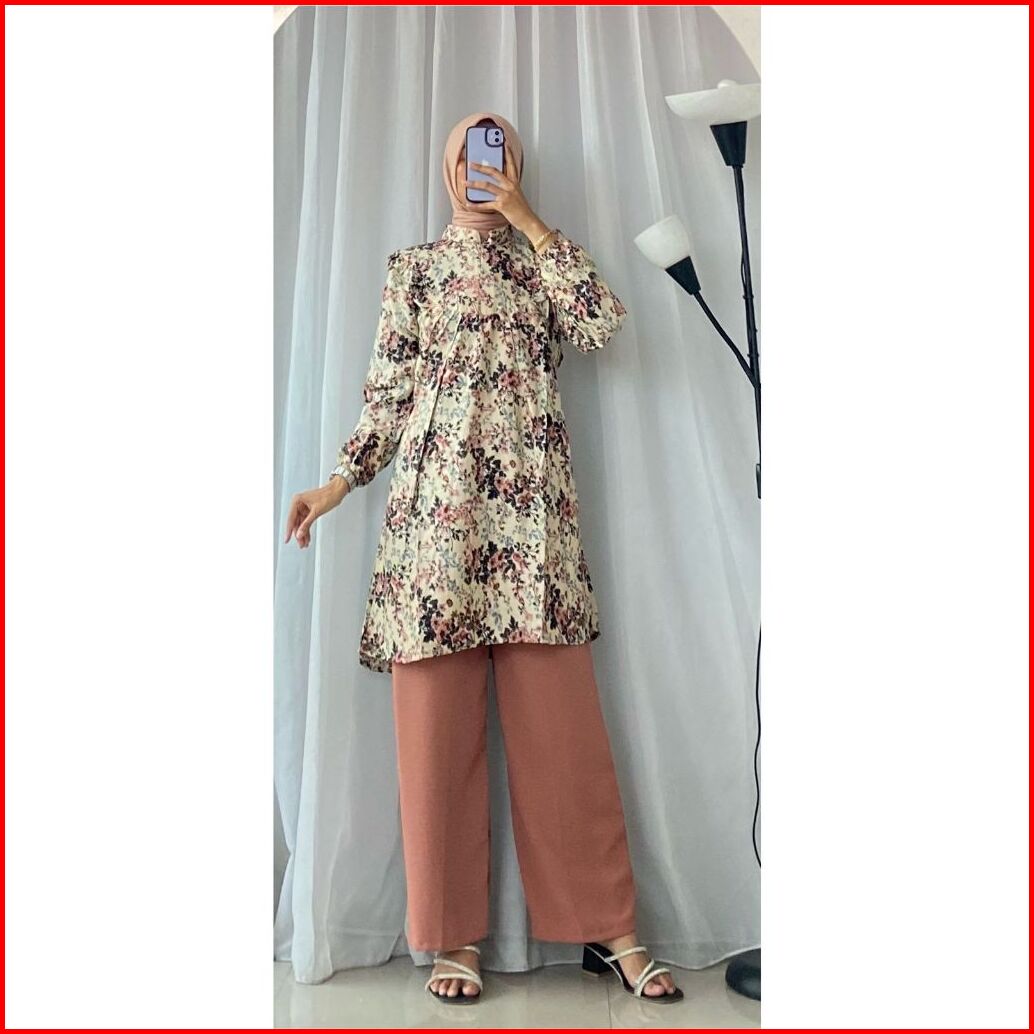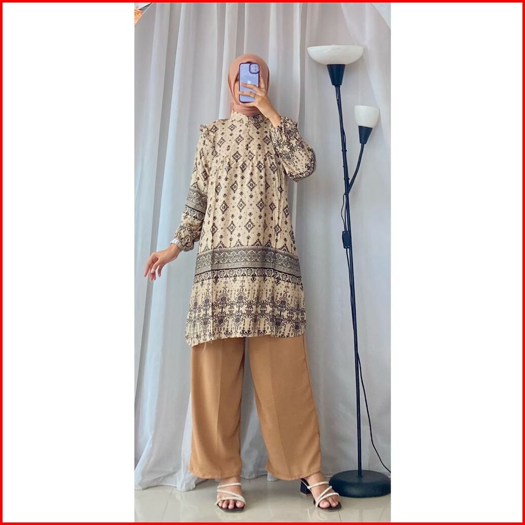 Adela One Set Tunik Babydoll Setelan Tunik Rayon Mix Crinkle Terbaru Inspirasi Outfit Kekinian