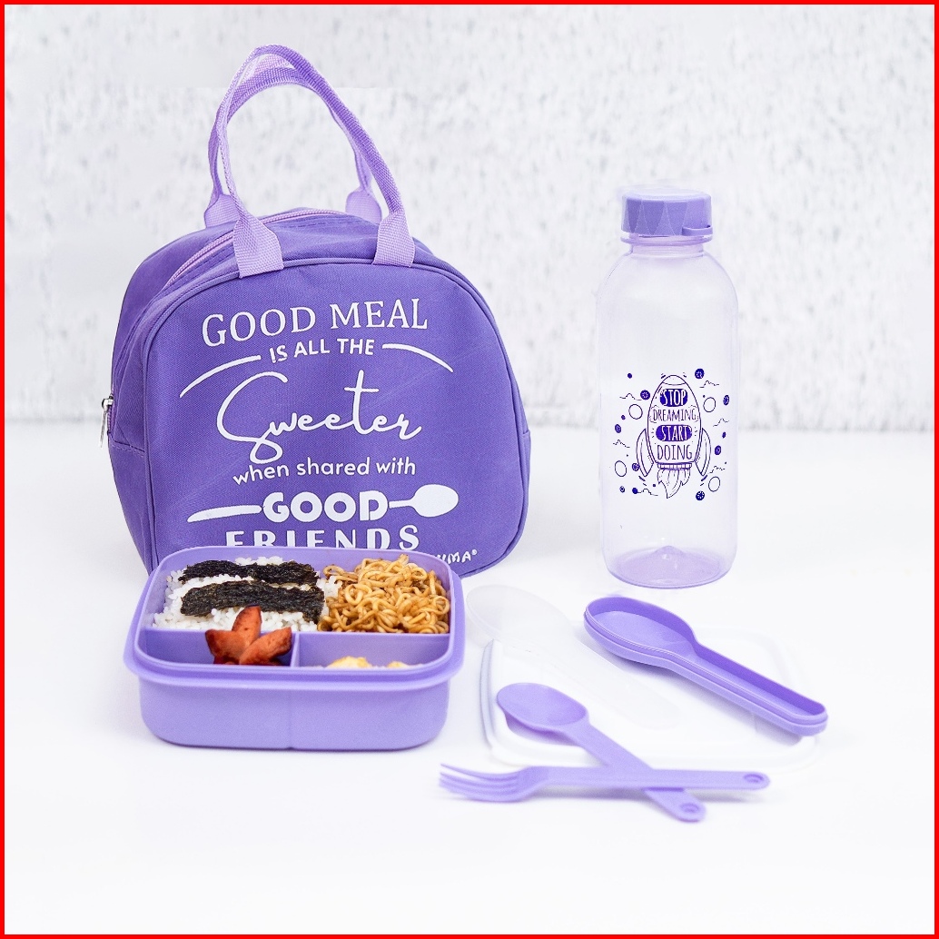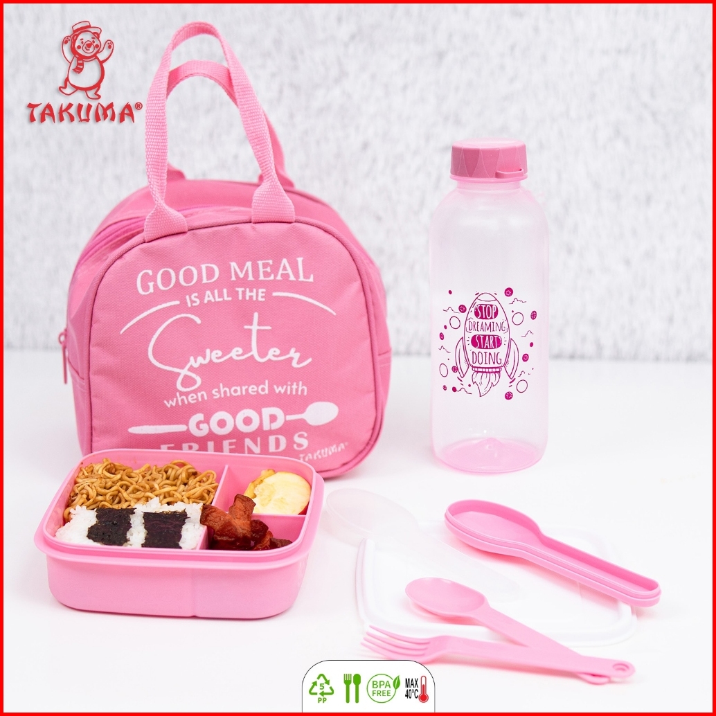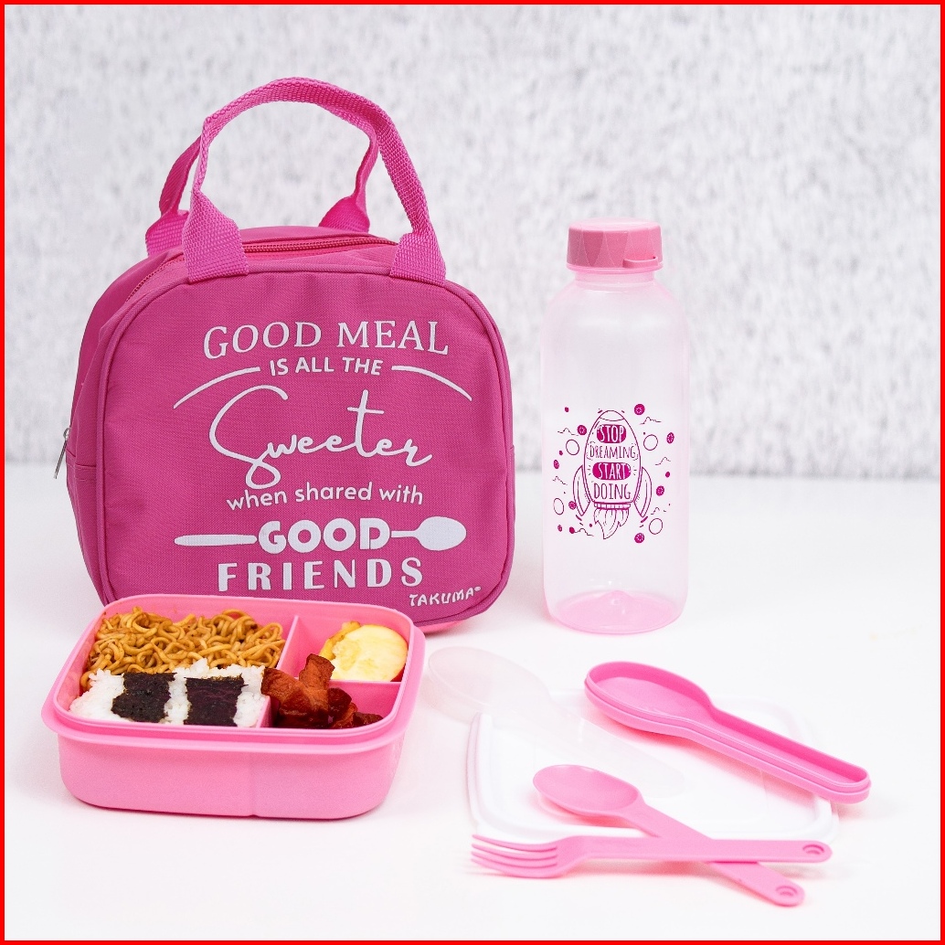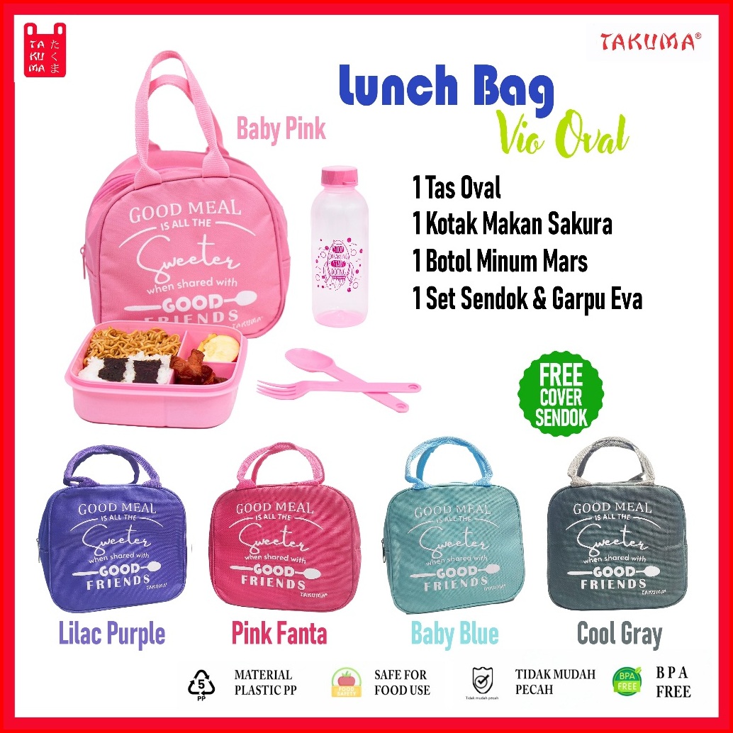 Lunch Bag Vio-oval Takuma 3 In 1 Paket Kotak Makan Sakura Botol Minum Mars Dan Set Sendok Garpu Eva